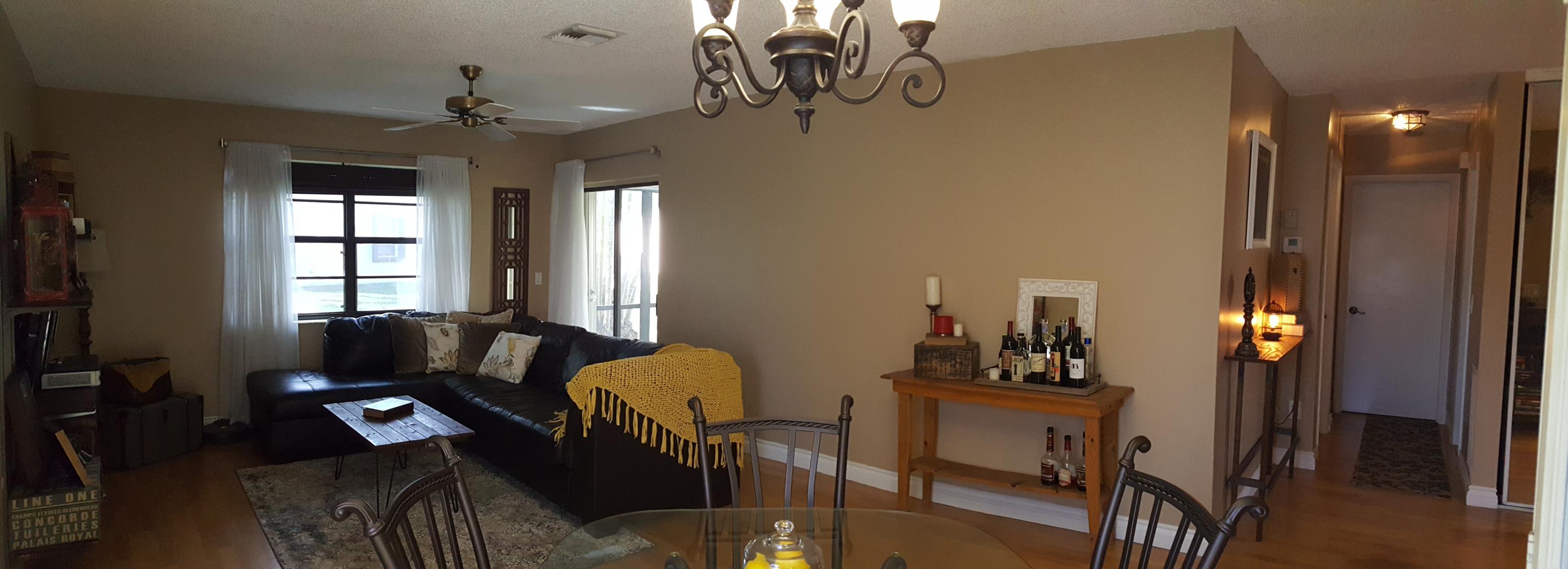 Cozy 2 bedroom 2 bathroom villa on a spacious corner lot. This well cared for home hosts an open, shared living and dining area with access to a quiet back screened patio. Spacious master bedroom has it's own private bathroom with walk in closet. Second bedroom has a slider opening up to back patio. Kitchen is light and bright with sliders that open to the front screened patio that is great for enjoying some quiet time or entertaining. New roof 2015, brand new accordion shutters on all openings. No Carpet. Move-in Ready! Perfect location for airport, shopping, and dining. HOA fee covers: basic cable, lawn maintenance, pool, common areas, and outdoor pest control.