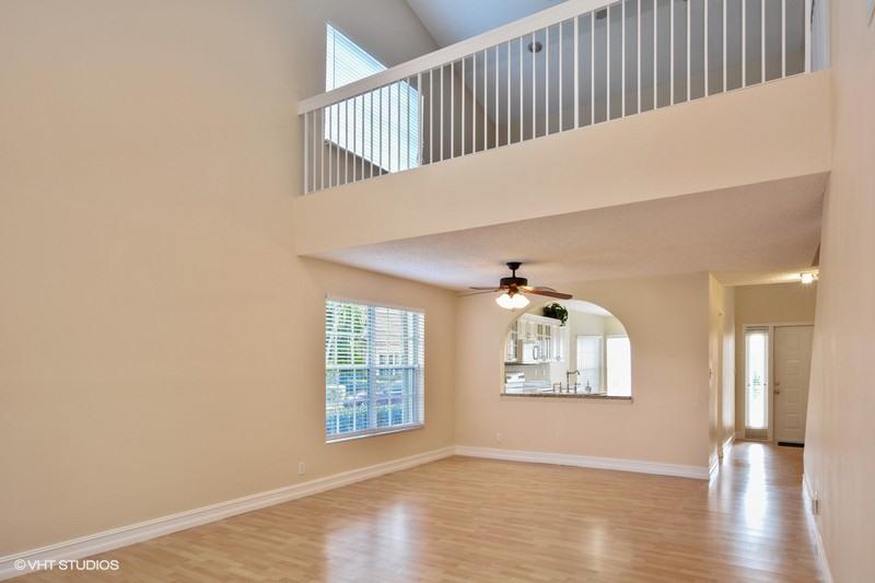 Wonderful immaculate updated 3 bedroom, 2.5 Bathroom corner Townhouse. Fully upgraded kitchen and bathrooms. Large loft area for entertaining, office or convert to 4th bedroom. Master suite on ground floor. Absolutely pristine with bright natural light, large corner side lot. Largest unit in the sub division. 2 upstairs terraces and 1 downstairs enclosed patio. Hurricane shutters, Alarm system. Newly painted.Membership to Country Club available, but not mandatory, at very reasonable rates. Guard gated. Located close to I95 and beaches. Excellent school district. MUST SEE!