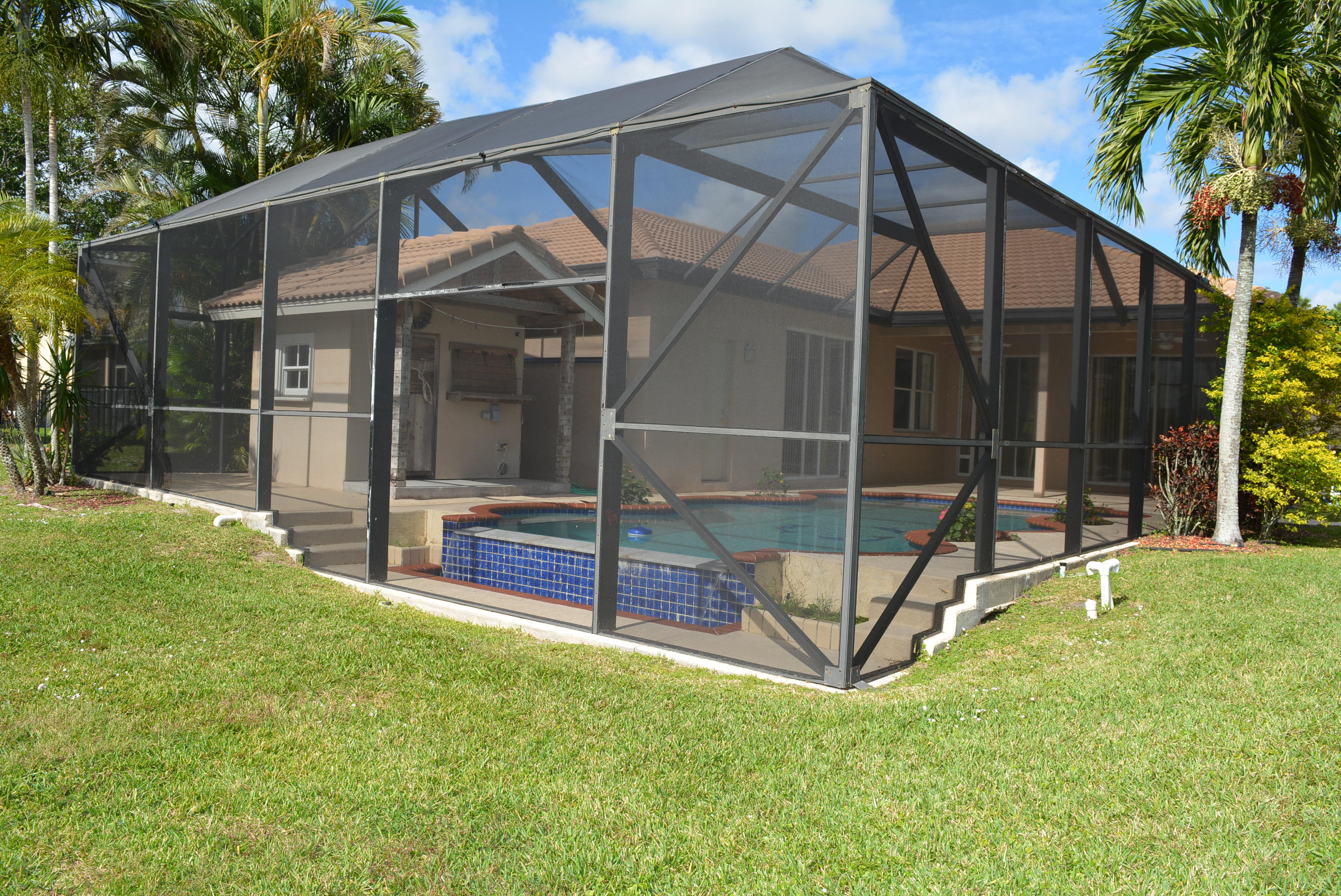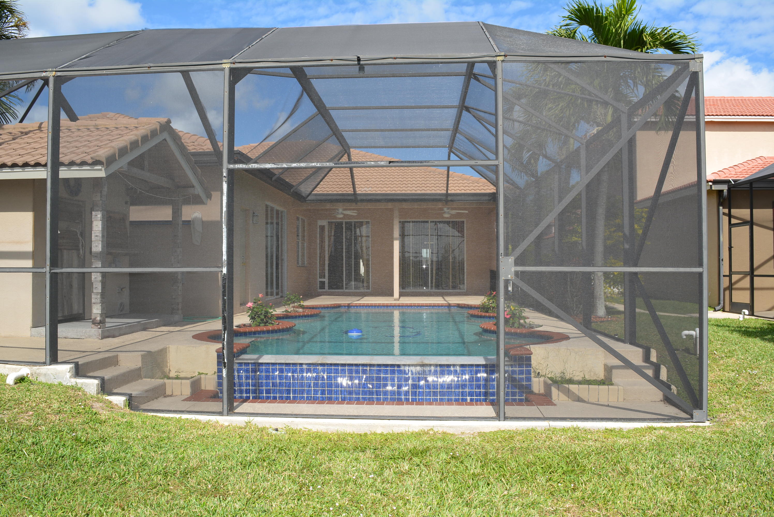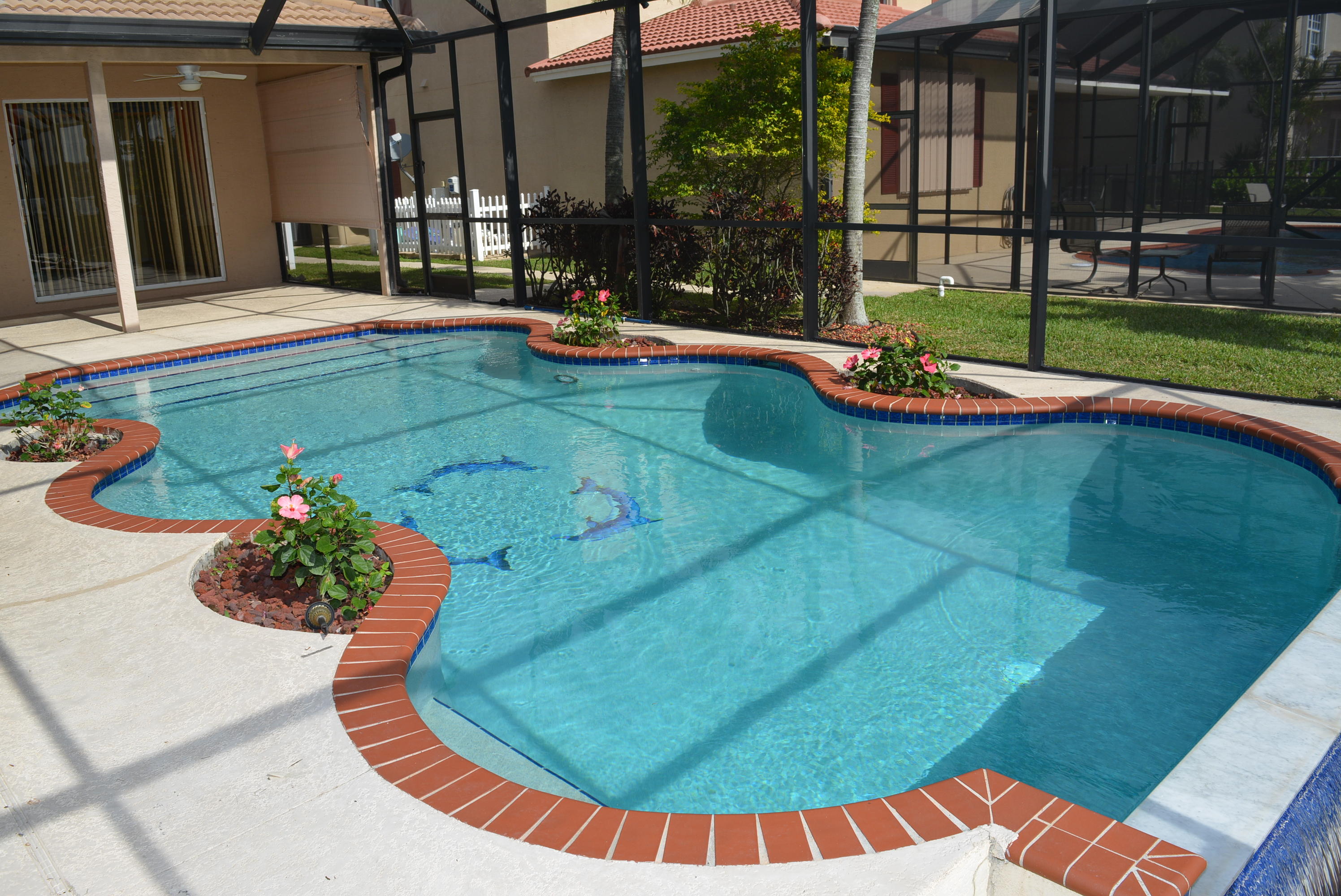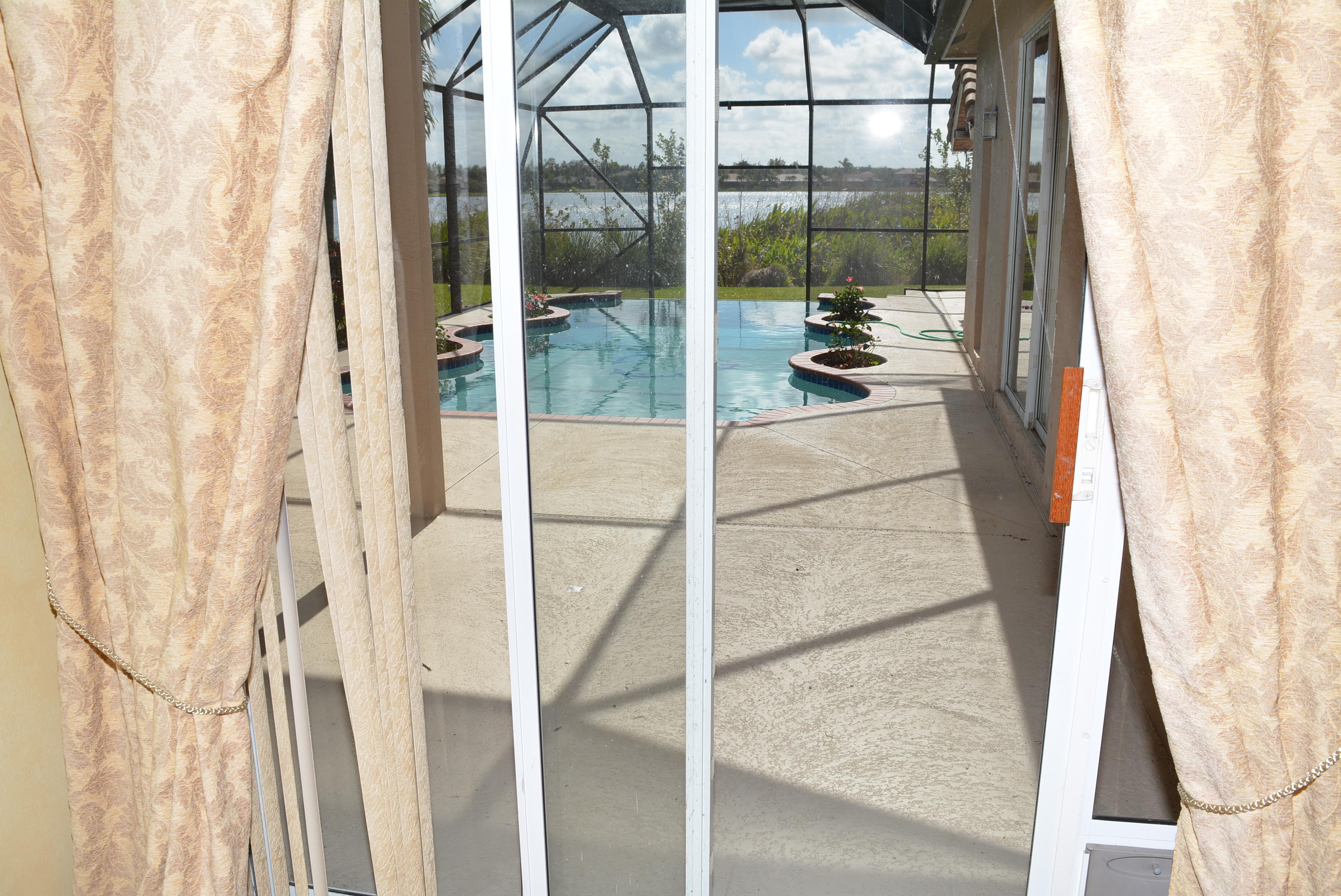 What a way to start your day! In this choice home in an amazing guard gated community. Very modern and open floor plan with four bedrooms, three full bathrooms, and three- way bedroom split plan, enjoy a stunning kitchen, with upgraded abundant wood cabinets, granite counters and black splashes with breakfast area over all looking a screened in pool and lakefront lot that create a portrait of peace. Your new home has 2376 sq ft under air with 4 generous sized bedroom and gorgeous master bathroom with custom double vanities, roman tub and oversized shower. Other features are, tile thru out living area, S tile roof, recessed lights, custom light fixtures, crown molding, custom detached Sauna, extra storage and community pool all centrally located on 441 just North of Forest Hill Blvd