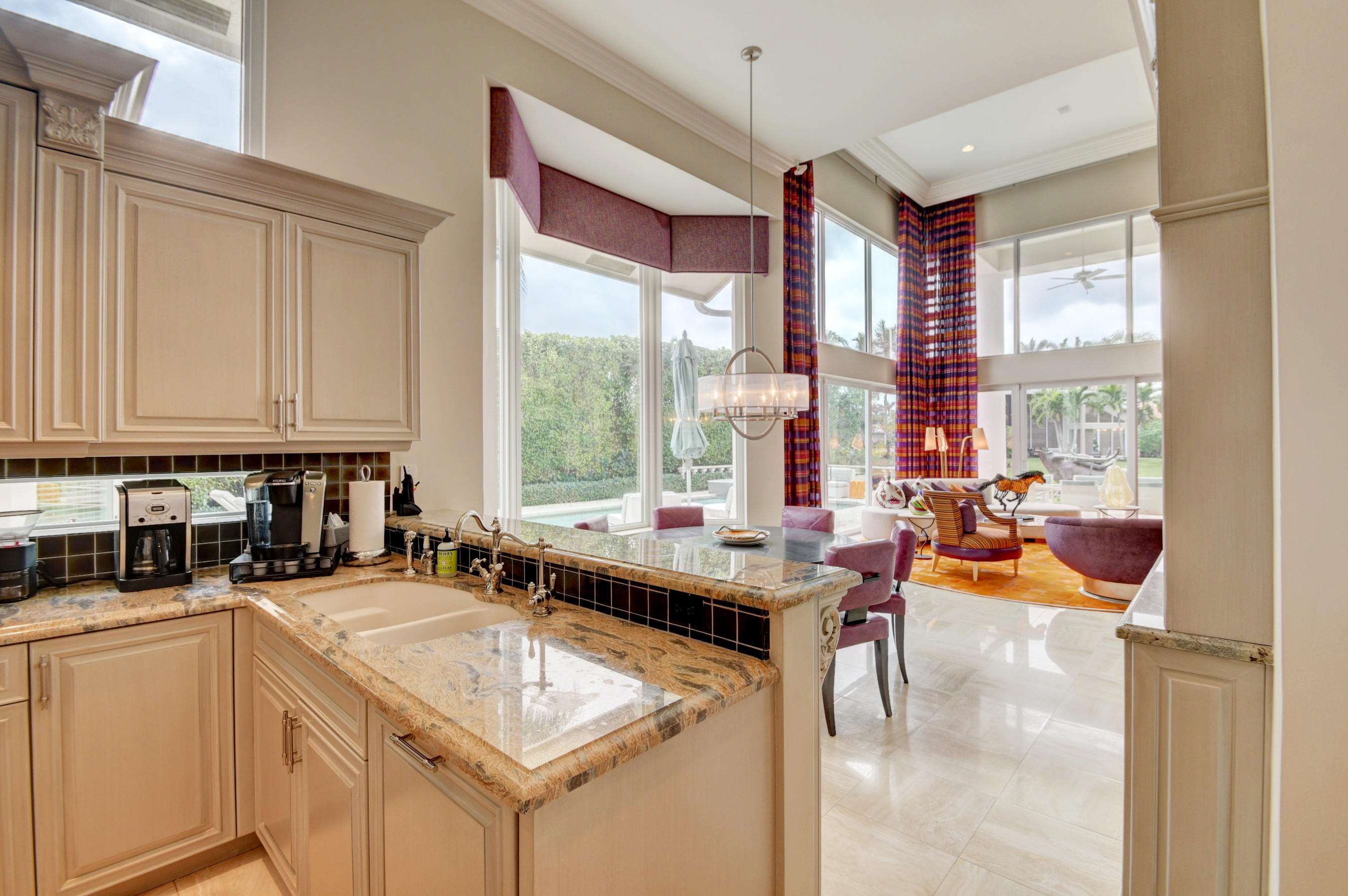 Magnificent one-story home, totally renovated by master builder and designer. This 4 bedroom, 4.5 bath home is situated on a prime lot with long lake & golf course views in St. Andrews Country Club. Impact glass, floor to ceiling windows, volume ceilings, marble floors, open floor plan, high-quality finishes, and custom wood built-ins throughout. Beautiful gourmet kitchen with WOLF dual fuel range and 6-burner gas cooktop, Sub-Zero refrigerator-freezer, Sub-Zero wine refrigerator, and more. Large master suite with onyx countertops in master bath. All guest bedrooms are en-suite. Open and covered patio areas with pool and spa, Summer kitchen, and gorgeous, expansive, lake and golf course views.