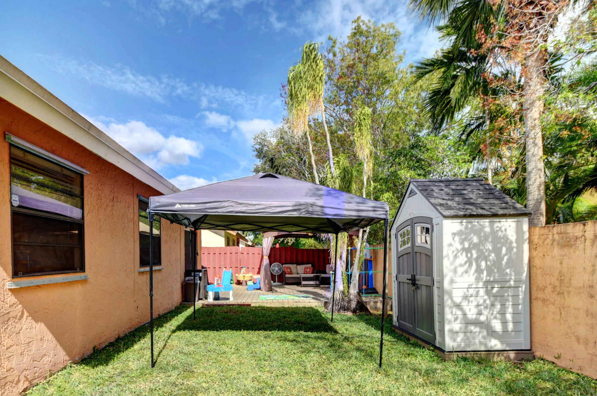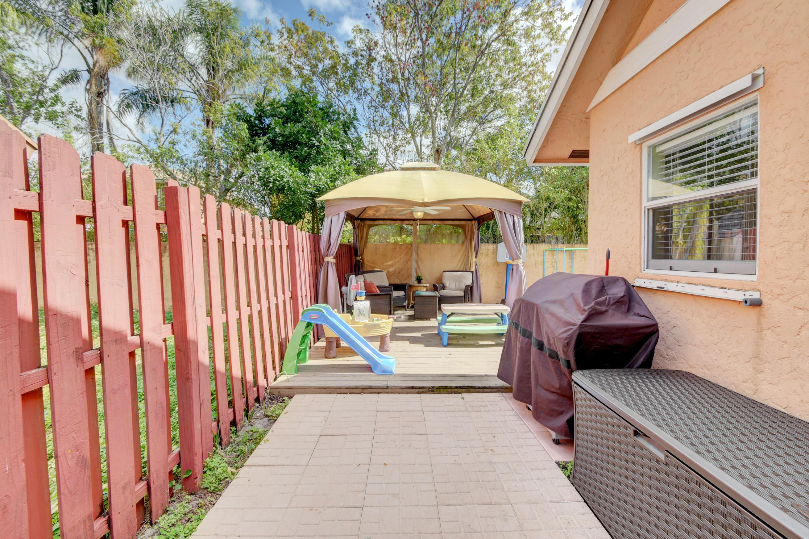 Rarely available single family home in Boca Country Estates. This charming 2/2 residence features vaulted ceilings, crown molding, updated kitchen with breakfast bar, handcrafted wood cabinetry, upscale stainless steel appliances & imported granite counter tops. Both remodeled baths feature newest style 'high' vanities adorn with exquisite double edge granite counter tops, high quality lighting/bath fixtures and under-mount sinks. The spacious master shower has a frameless glass enclosure / river rock shower flooring. This cozy home has a family room perfect for entertainment or a play or guest room. Exterior features include 1 one car garage, storage shed, spacious fenced in yard and an outdoor deck and loggia. HOA amenities = community pool, gym & play ground. Perfect home for all ages.