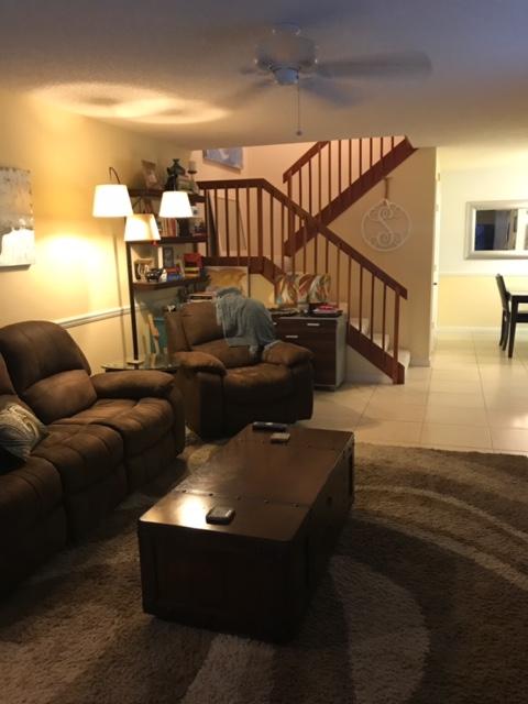 Come see this beautiful townhouse in a quiet neighborhood. This 2 bedroom 2 1/2 bath townhome has upgraded tile in living room and dining room, walk in master bedroom closet with private spacious patio, accordion shutters. Come make this property your home. Community has 24/7 guarded gate with tennis courts and swimming pool with nice walking trails around lake