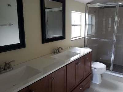 This remodeled 4 bedroom 3 bath ool home has new bathrooms, newer carpet upstairs, newer tile downstairs, new paint inside and newer paint outside, granite counters and a large fenced back yard with your own private pool! This home has 2 master bedrooms, one upstairs and one downstairs. The large bedroom downstairs has a full bath and large walk-in closet with sliding doors leading to the pool. Gated community with all the amenities such as pool, tennis, racquetball, picnic area, playground and 24 hour manned gate.