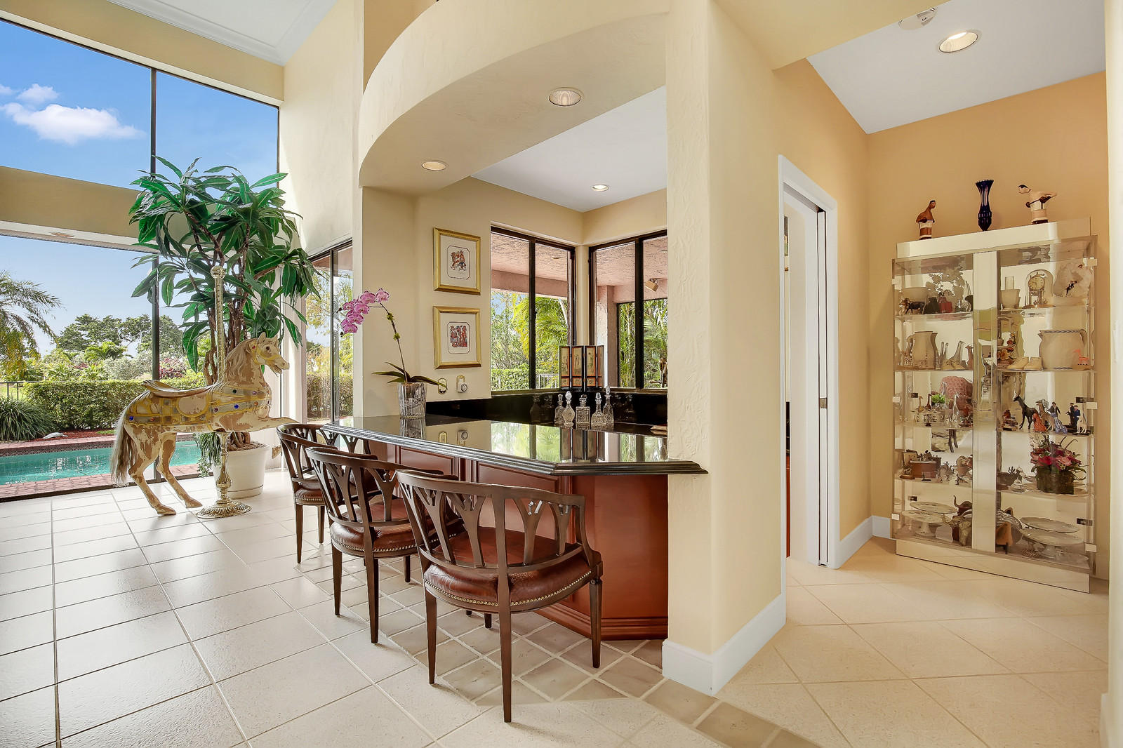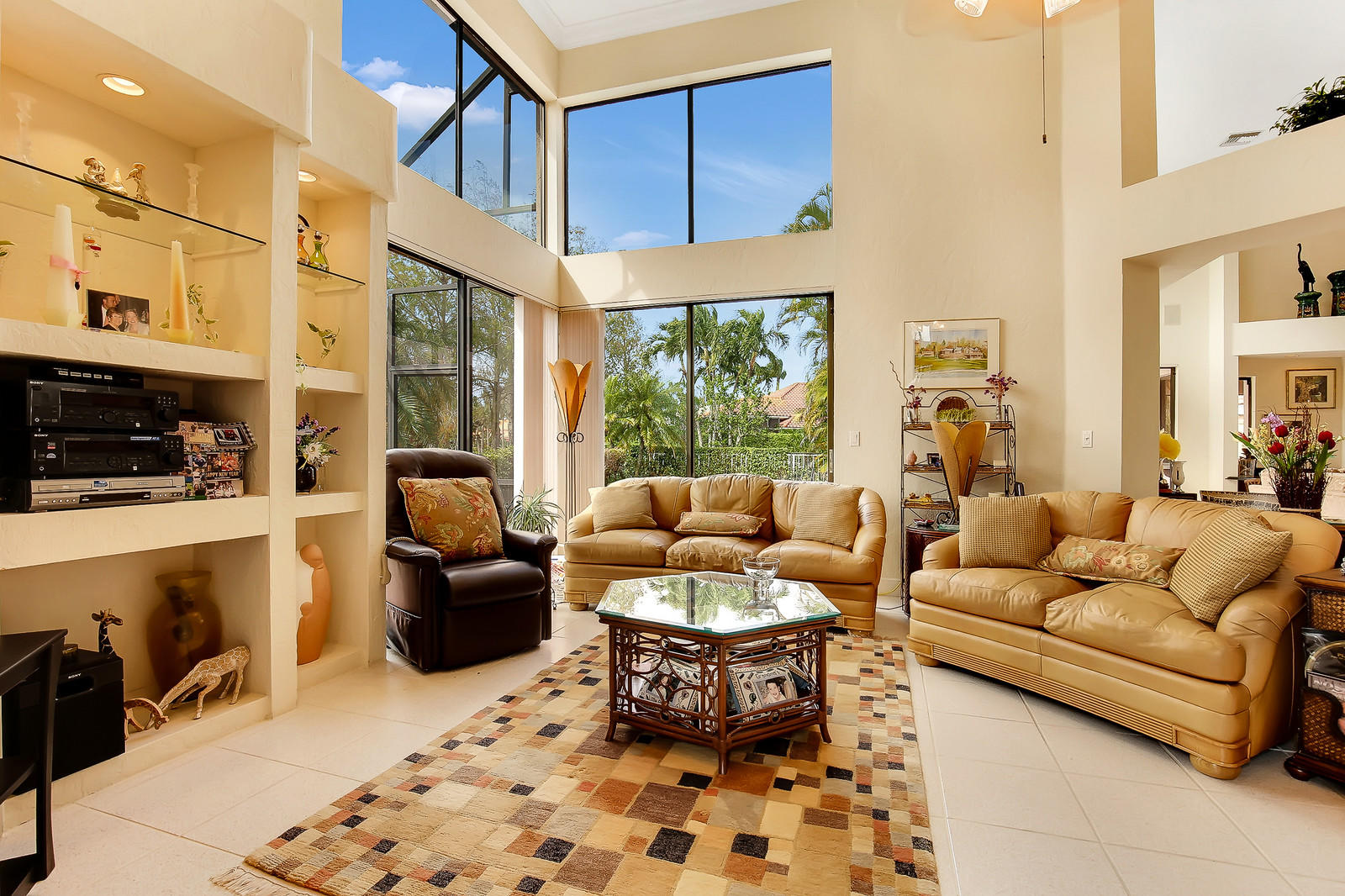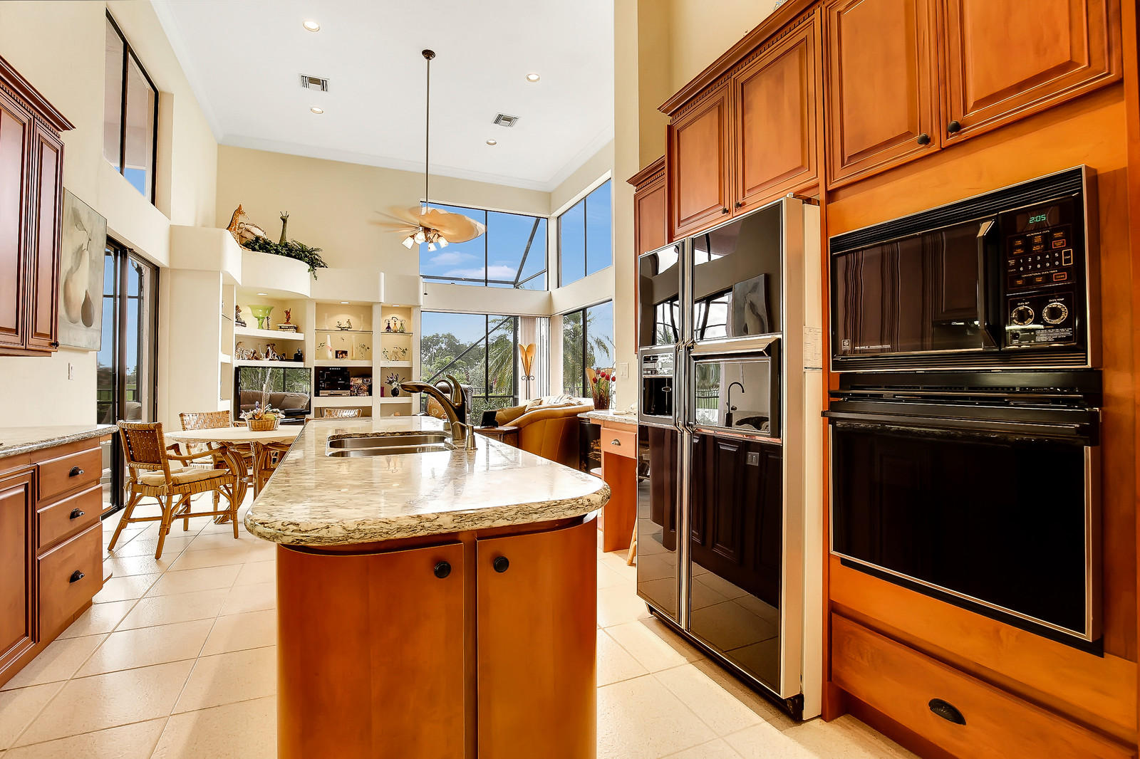 ''SCORE A HOLE-IN-ONE''! Fabulous Golf Club home features soaring 16' ceilings and a wonderful spacious layout, perfect for entertaining! Open living room, built-in wet bar, elegant formal dining room with custom mirror, and separate family room. Granite kitchen with custom cabinetry, center isle, and breakfast area. Split bedroom layout features large master bedroom suite with separate her/hers granite baths, Jacuzzi tub, separate shower. Two additional bedrooms with ensuite baths. Spectacular backyard oasis facing the 9th fairway with heated gunite pool. Laundry room, great closets, 2.5-car garage. BRAND NEW A/C (2018). Stonebridge is a boutique country club community with 398 homes. Seconds to shopping, dining, parks, library. A must see! Membership and annual dues required.