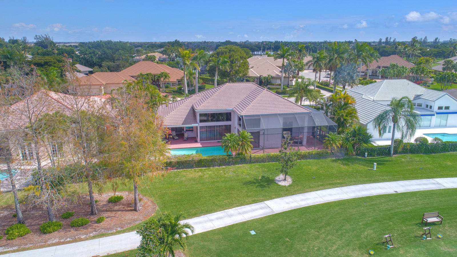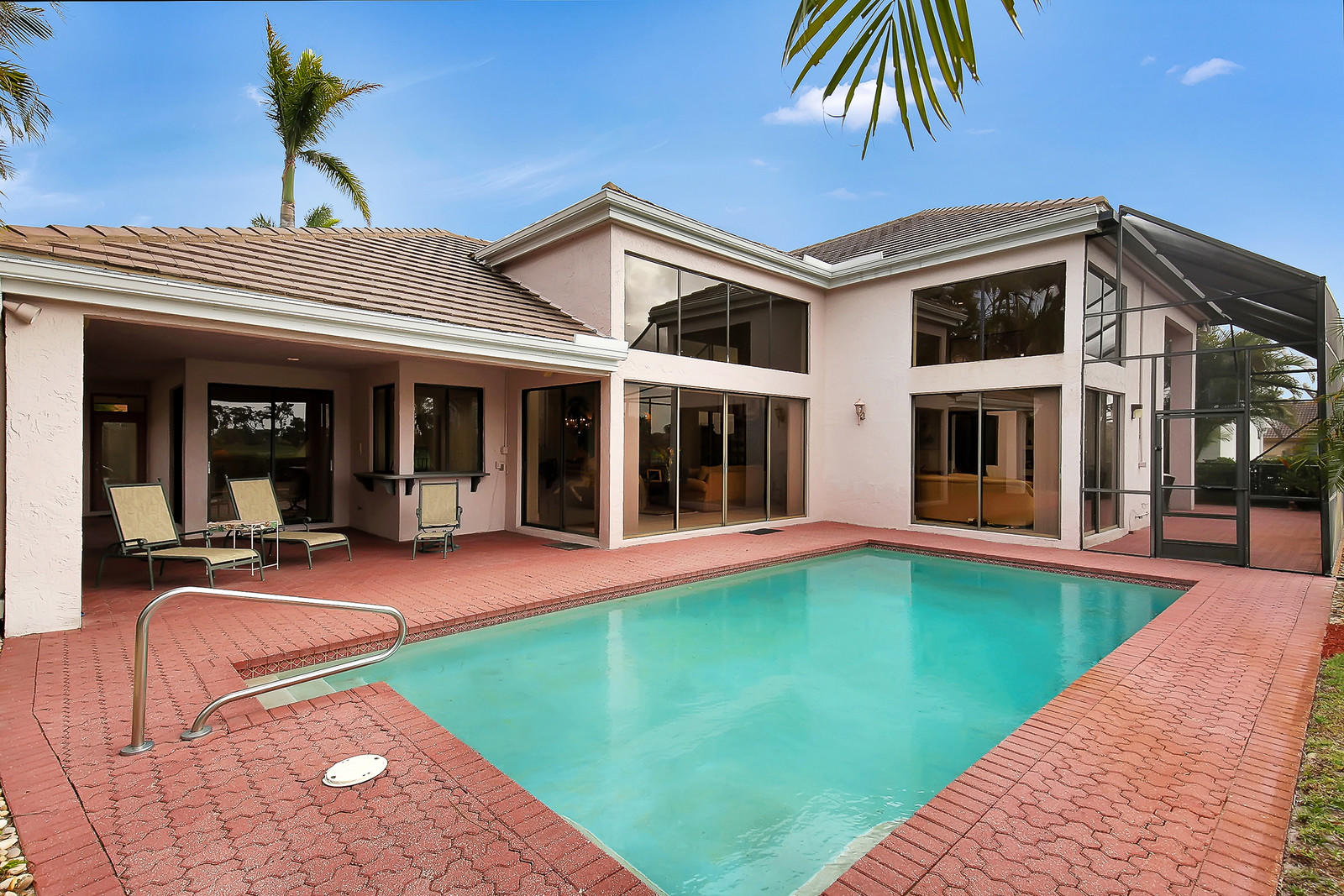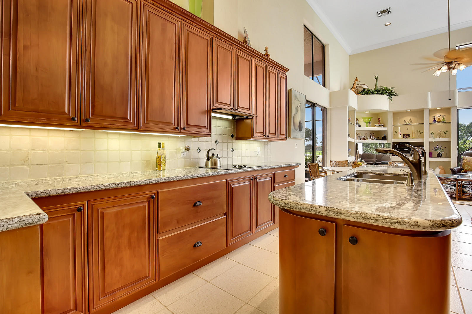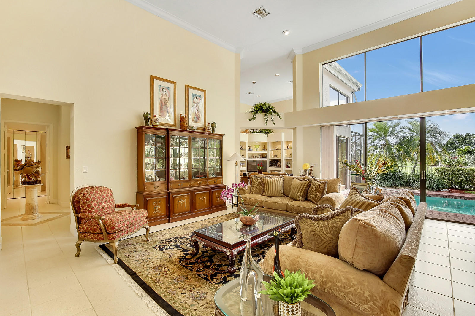 ''SCORE A HOLE-IN-ONE''! Fabulous Golf Club home features soaring 16' ceilings and a wonderful spacious layout, perfect for entertaining! Open living room, built-in wet bar, elegant formal dining room with custom mirror, and separate family room. Granite kitchen with custom cabinetry, center isle, and breakfast area. Split bedroom layout features large master bedroom suite with separate her/hers granite baths, Jacuzzi tub, separate shower. Two additional bedrooms with ensuite baths. Spectacular backyard oasis facing the 9th fairway with heated gunite pool. Laundry room, great closets, 2.5-car garage. BRAND NEW A/C (2018). Stonebridge is a boutique country club community with 398 homes. Seconds to shopping, dining, parks, library. A must see! Membership and annual dues required.