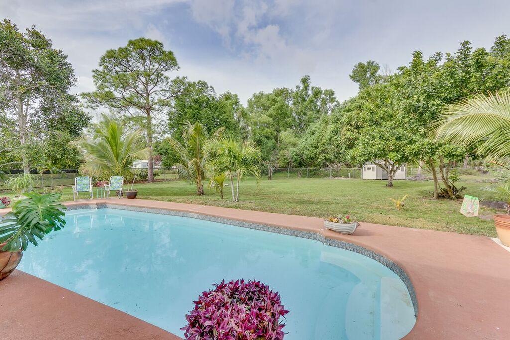 BEAUTIFUL HOUSE WITH POOL AND SPA, FULLY FENCED BACKYARD ON 1.29 ACRES OF LAND WAITING FOR YOU! IF YOU LOVE HORSES AND COUNTRY STYLE LIFE - WITH TOTAL PRIVACY, THIS MIGHT BE JUST THE PERFECT HOME FOR YOU, YOU COULD PARK YOUR R/V, TRUCKS, BOATS WITHOUT ANYONE'S PERMISSION (NO HOMEOWNER'S ASSOCIATION) 4 BEDROOM, 2 FULL BATH, OPEN KITCHEN, LARGE LIVING ROOM, VERY TASTEFULLY DECORATED & PAINTED WITH NEWER WINDOW COVERINGS AND MODERN LIGHTING FIXTURES, UPGRADED KITCHEN WITH GRANITE COUNTER TOPS AND DECORATIVE BACK-SPLASH AND A LARGE PANTRY, BOTH SHOWERS ARE TASTEFULLY UPGRADED, MASTER BEDROOM WITH LARGE WALK-IN CLOSET, NEWER APPLIANCES, WATER HEATER, BRAND NEW REFRIGERATOR, BRAND NEW WATER FILTERATION SYSTEM, NEWER STORAGE SHED (10"x12') AND MANY EXOTIC FRUIT TREES,(JACK FRUIT, SEAPLUMS, MANGOE