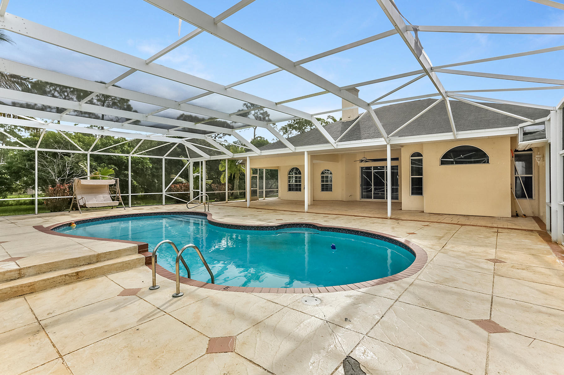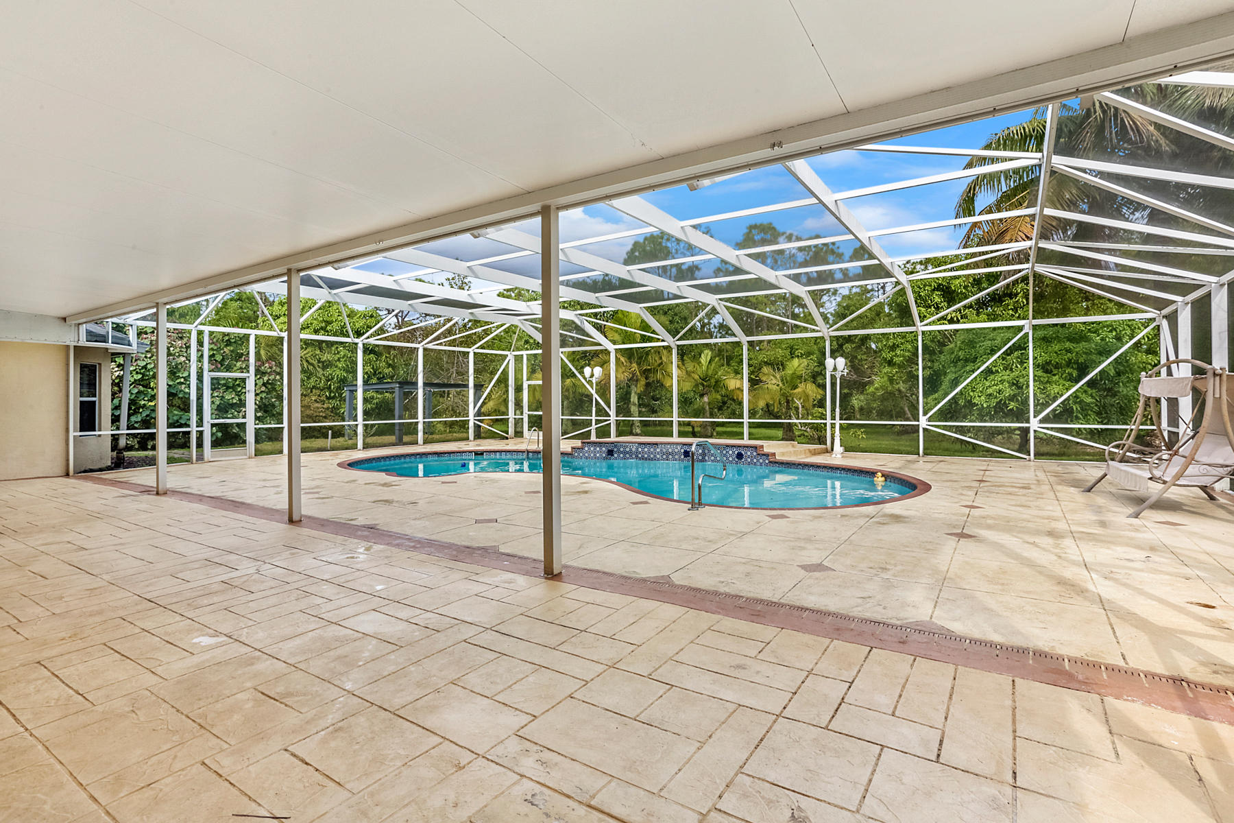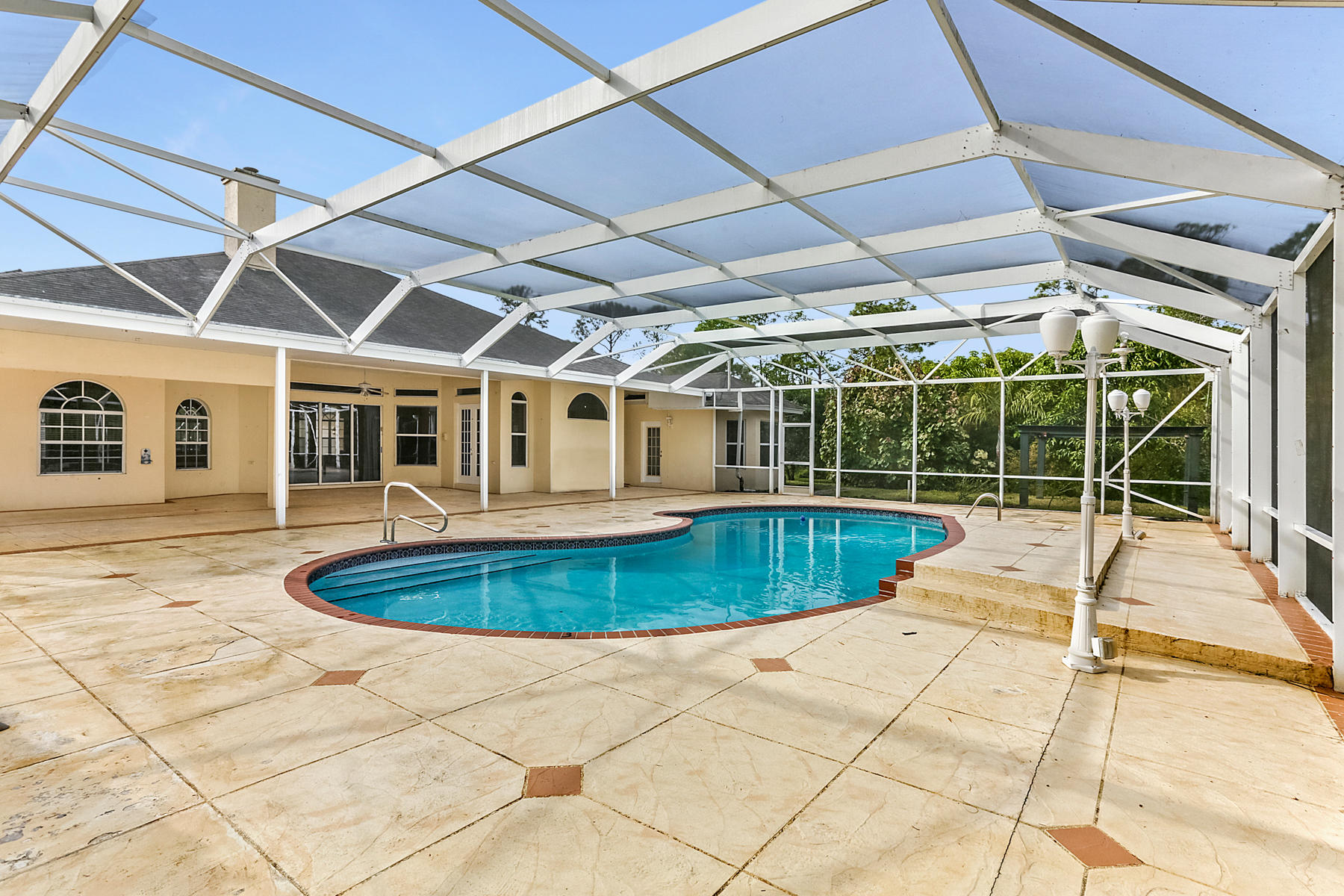 Expansive, pool home in West Palm Beach with NO HOA situated on over 2 acres! The grand entryway and double front doors welcome you into the foyer where you will be wowed by soaring ceilings and spacious living areas with gorgeous tile and wood flooring throughout. Enjoy the beautiful fireplace and stone accent wall in the living room which overlooks the lovely patio and pool. This open, split bedroom plan offers 4 bedrooms plus an office/den and 3.5 baths. All of the bedrooms are spacious and the master suite boasts dual, walk-in closets, tray ceilings and a luxurious master bathroom with Jacuzzi tub. The inviting kitchen is upgraded with newer stainless steel appliances, beautiful granite counters, convenient snack bar and a large pantry. This home has tons of windows and natural light.