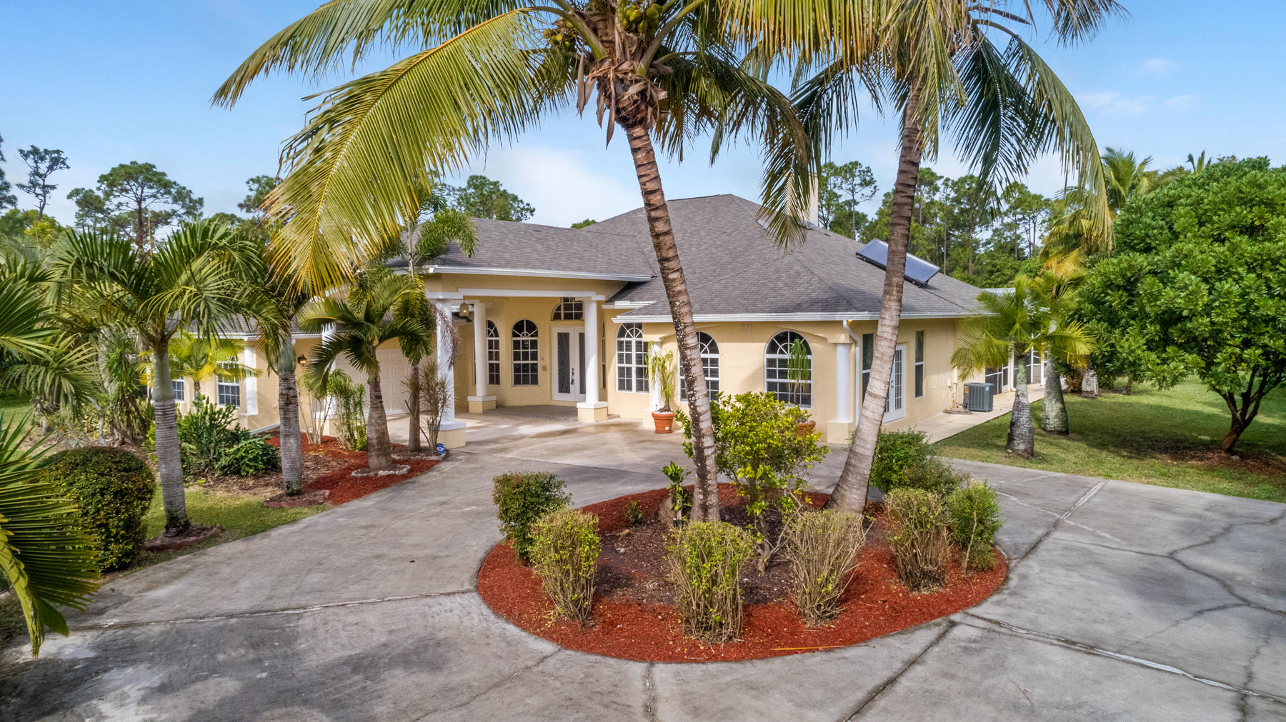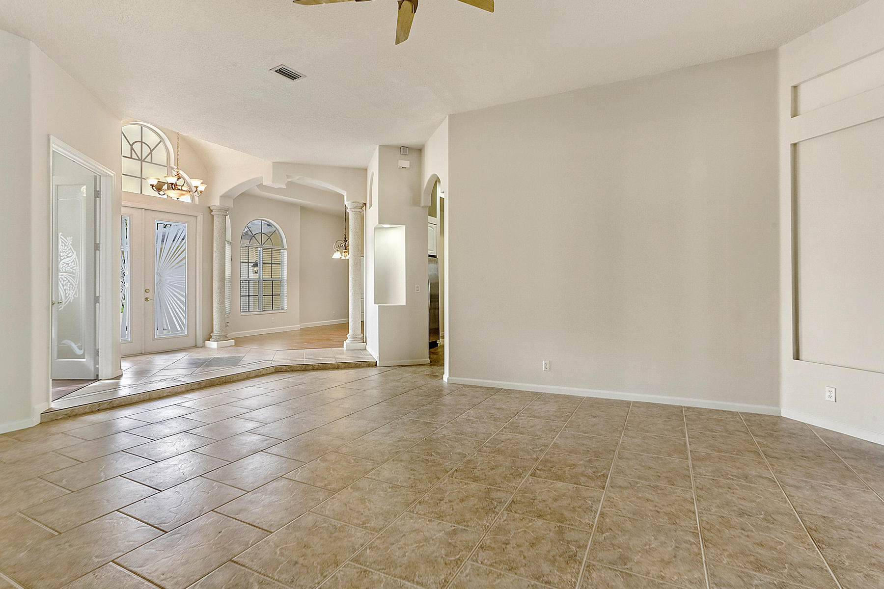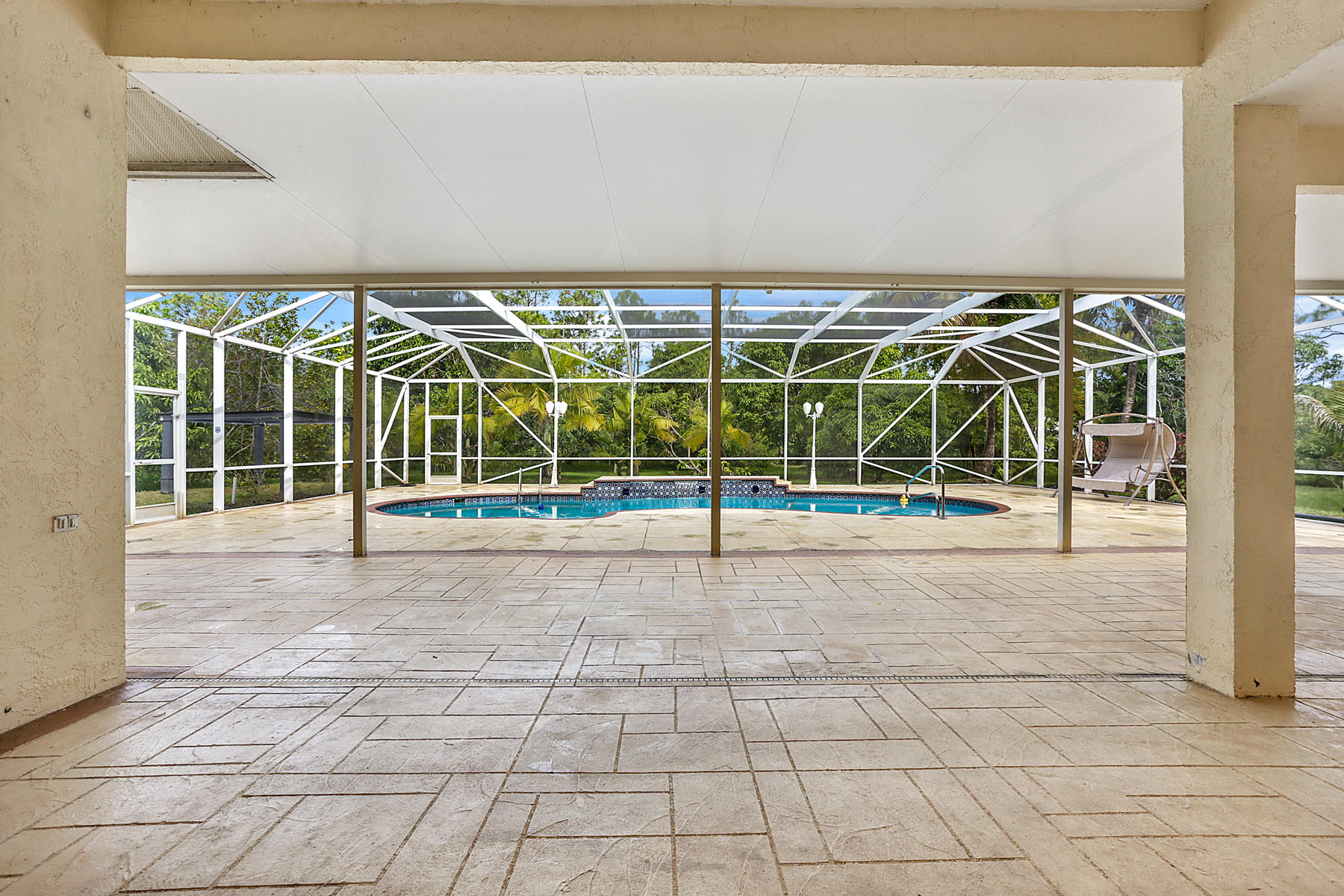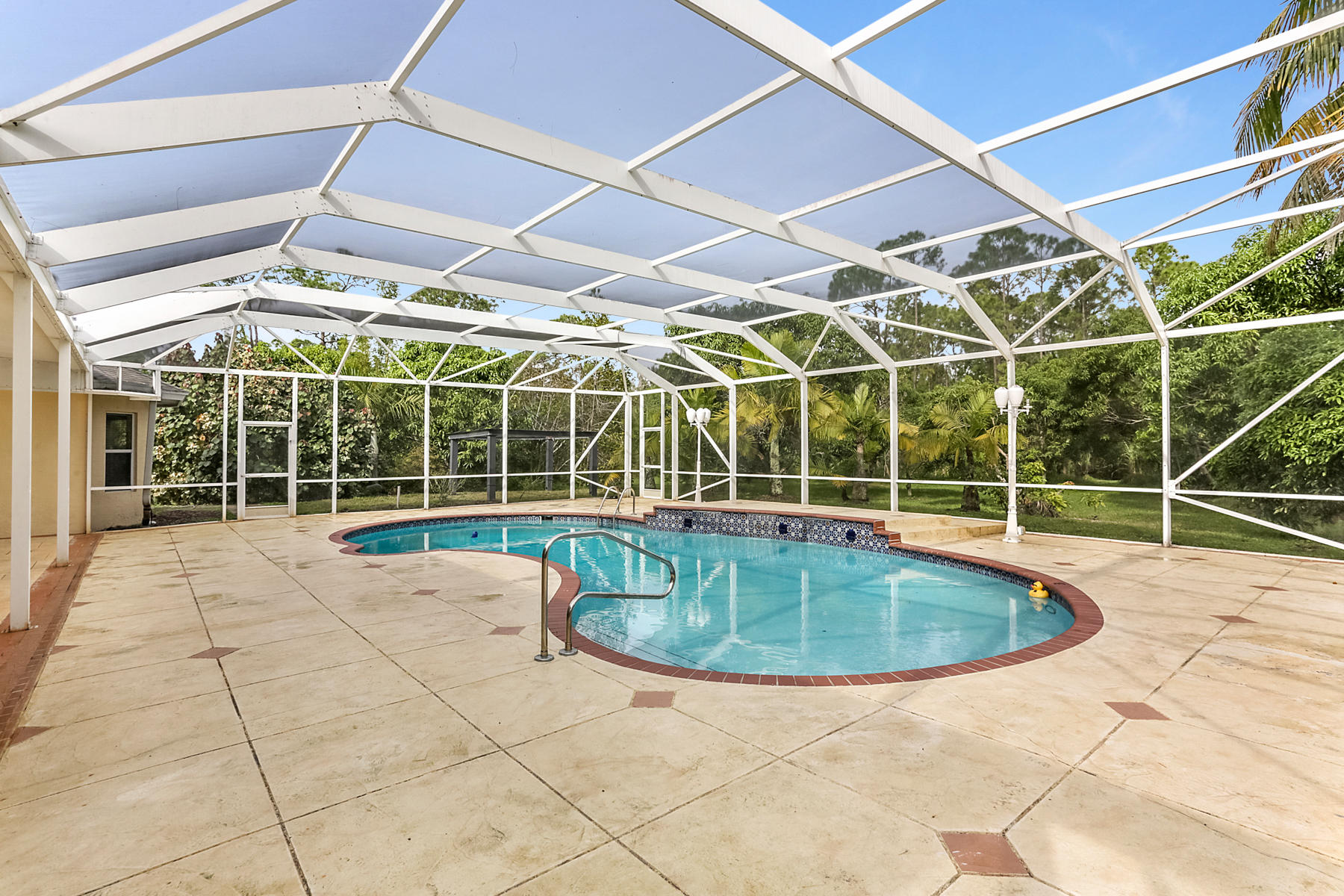 Expansive, pool home in West Palm Beach with NO HOA situated on over 2 acres! The grand entryway and double front doors welcome you into the foyer where you will be wowed by soaring ceilings and spacious living areas with gorgeous tile and wood flooring throughout. Enjoy the beautiful fireplace and stone accent wall in the living room which overlooks the lovely patio and pool. This open, split bedroom plan offers 4 bedrooms plus an office/den and 3.5 baths. All of the bedrooms are spacious and the master suite boasts dual, walk-in closets, tray ceilings and a luxurious master bathroom with Jacuzzi tub. The inviting kitchen is upgraded with newer stainless steel appliances, beautiful granite counters, convenient snack bar and a large pantry. This home has tons of windows and natural light.