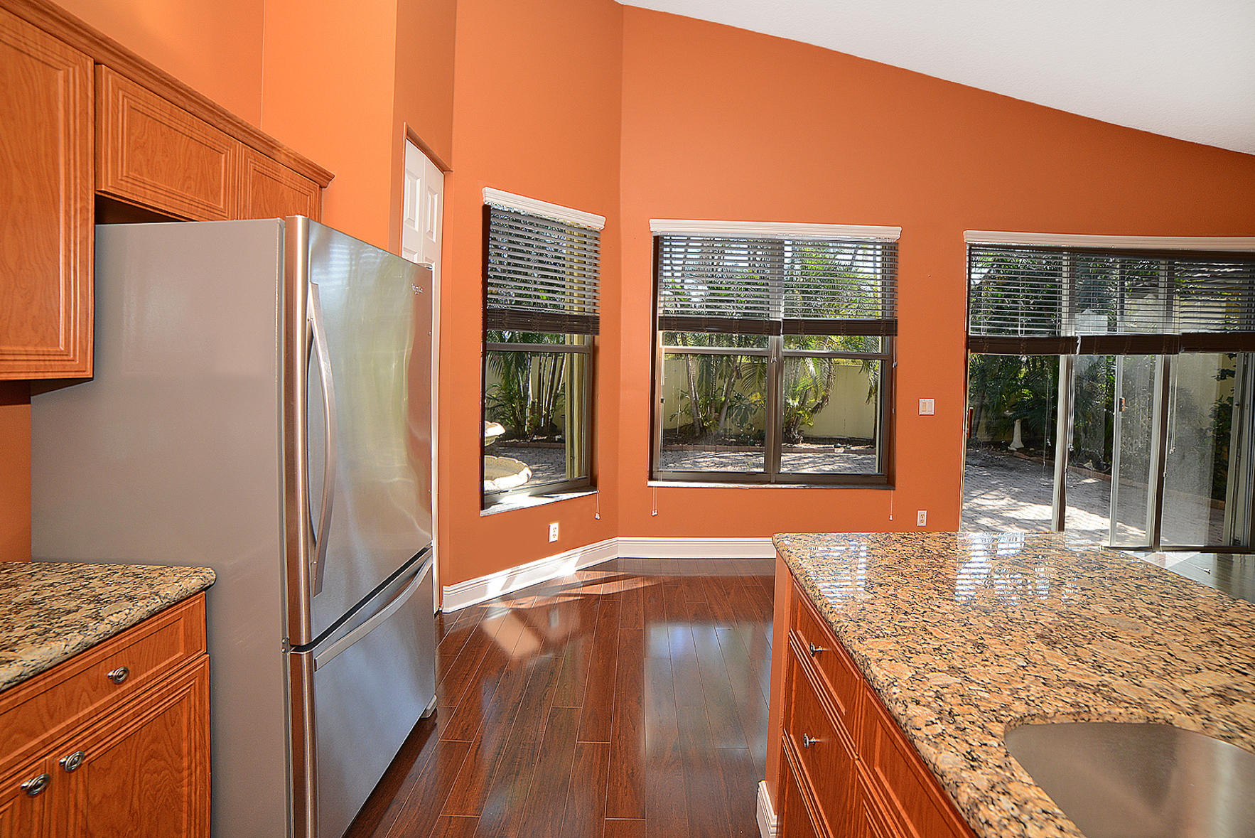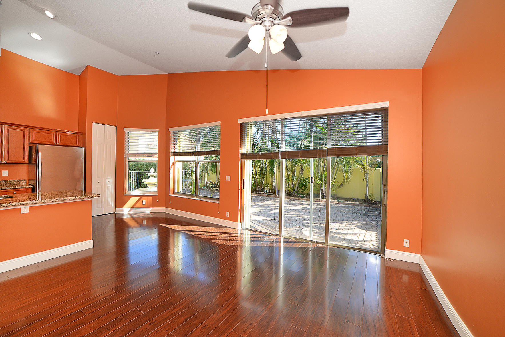 Fabulous home situated in a small gated neighborhood in E. Boca Raton. 3/2 plus a 14x10 den with a 2 car garage less than 2 miles from the beach and close to both downtown Boca Raton and Delray Beach. This is a split plan with many upgrades including an updated kitchen with granite counter tops, Whirlpool stainless steal appliances,new wooden laminated flooring throughout except the bathrooms, new A/C 2016 and freshly painted interior. The outdoor space is easily accessible from the family room to your patio retreat. This home is in move in condition waiting calls for your private showing! Low maintenance. HOA covers guard gate, lawn mowing, sprinklers, and outdoor spraying. Buyer is to verify all information . Information is deemed to be reliable , but is not guaranteed.