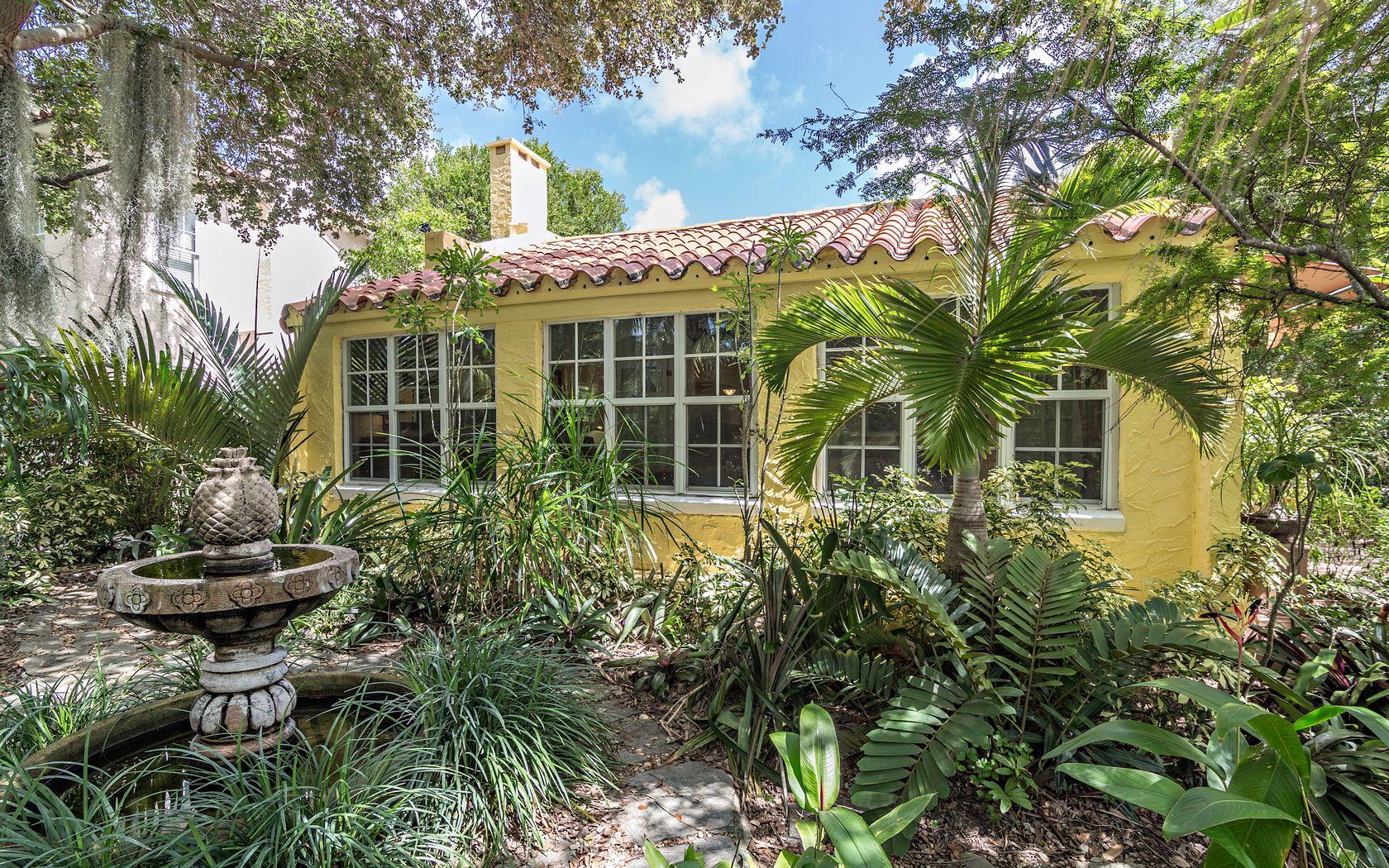 THIS IS THE ULTIMATE IN FLORIDA CHARM! This marvelous 2 bedroom, 2 bath home has all the architectural delights of a 1924 Mediterranean home with wonderful vaulted ceilings and spacious rooms. As you enter this special and delightful property, the center fountain with lush landscaping has the ambience of old world character, and embellishes the true radiance of this residence. A wonderful vaulted and beamed ceiling welcomes you the moment you enter the aFloridaa room and continues to the spacious living room with hardwood floors, arches to the dining room and graced with the light from the adjacent and abundant windows of the entry room. The windows and exterior French doors are impact, but some of the original windows have been retained to continue the historic energy. More...