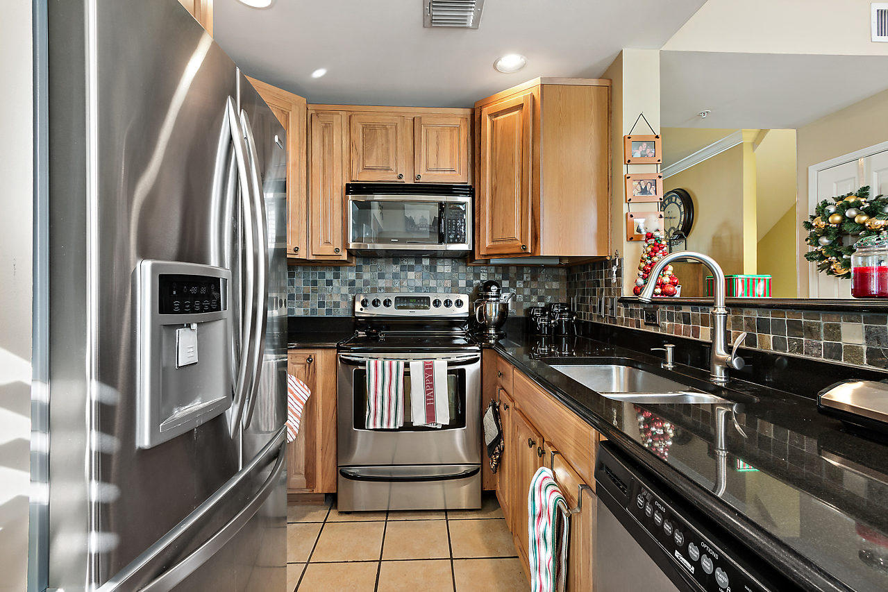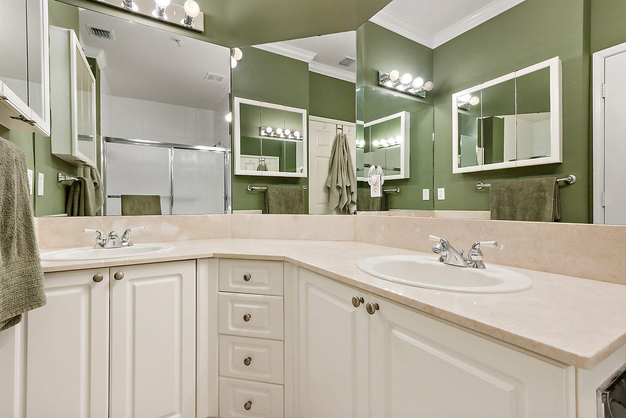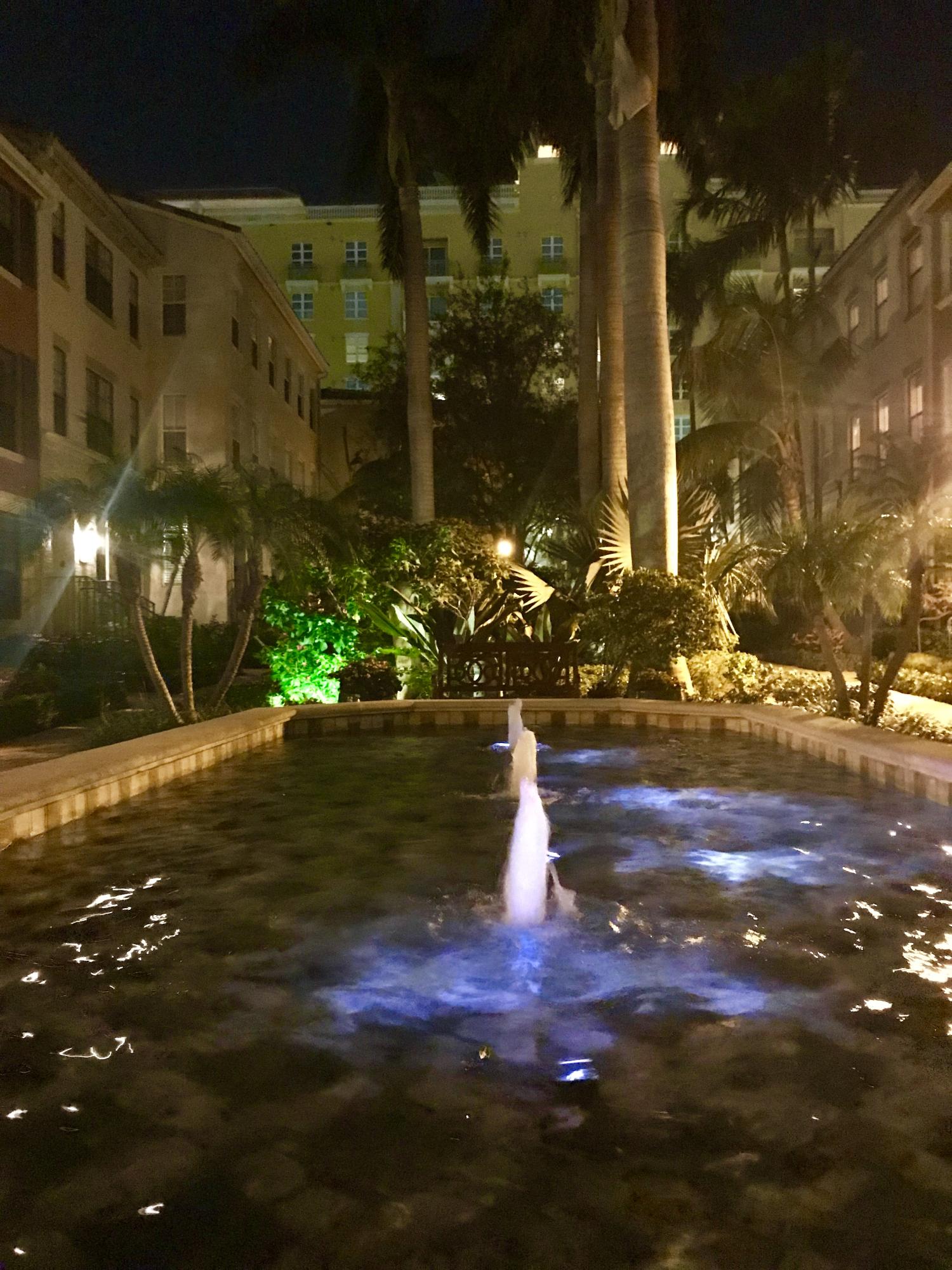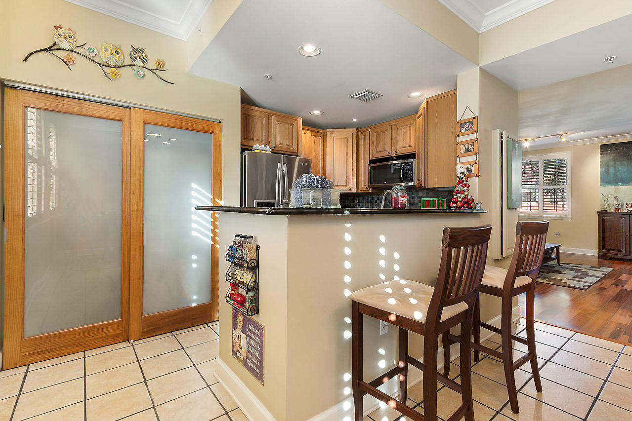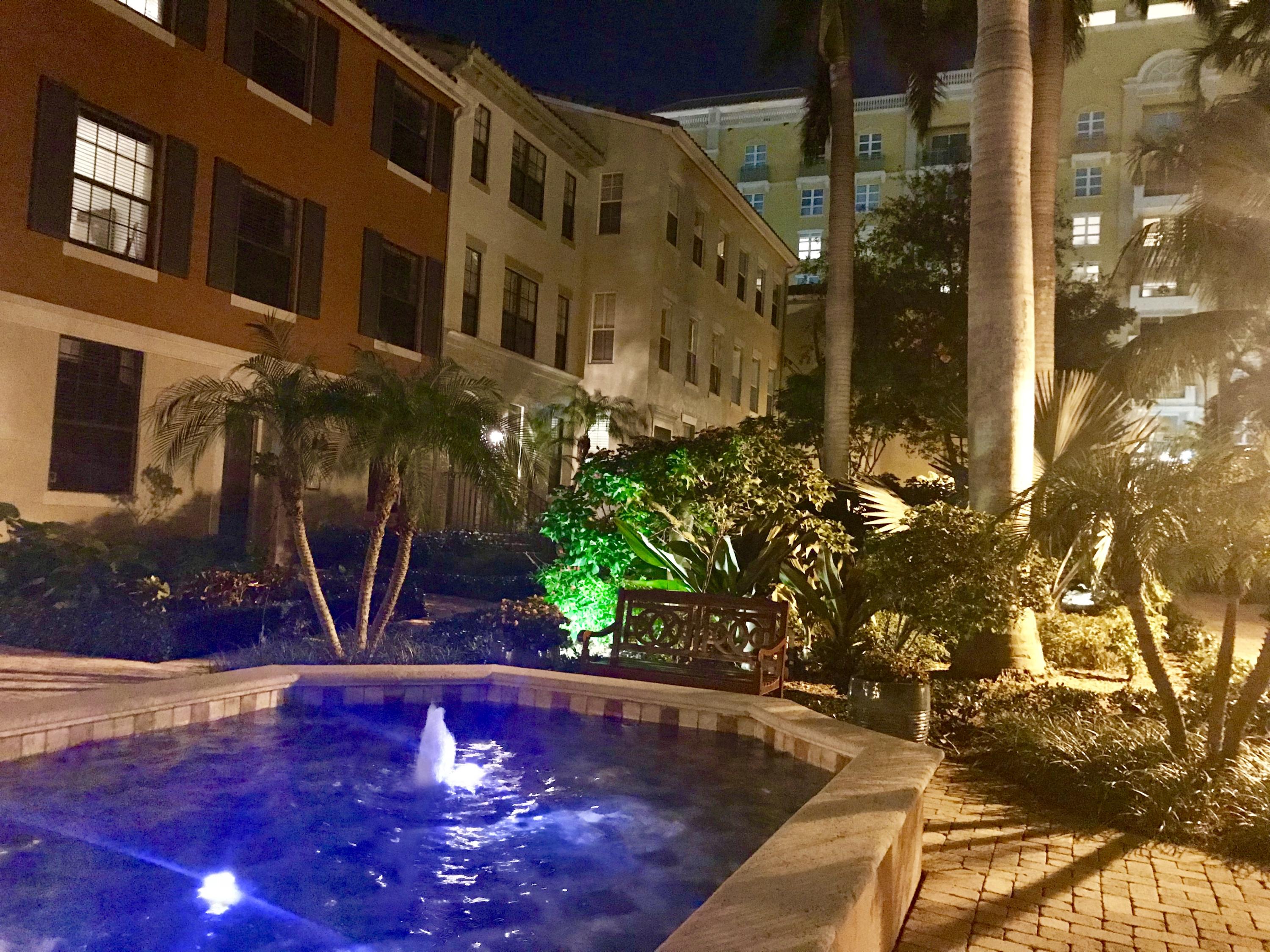 THE VERY BEST LOCATION in all CityPlace Residences! Located in the prestigious section of townhome residences in a private gated courtyard with beautiful landscaping,fountain & pool access. Conveniently located 1/2 blk to Publix, 2 blks to the New Brightline high speed train & a Free Trolley ride to Clematis, Flagler Dr,Northwood & outlet malls. This townhome has been upgraded with travertine marble in the first floor entryway, den/bedroom & 1/2 bath. The stairs to 2nd floor & living room have Brazilian Tiger Wood flooring. The dining area has chair railing & a tray ceiling. Custom kitchen pantry & stackable front load washer/dryer with opaque glass & wood doors. Great color palette. The unique floor plan has an en suite bath both master & guest bedroom . Custom built book case in master.