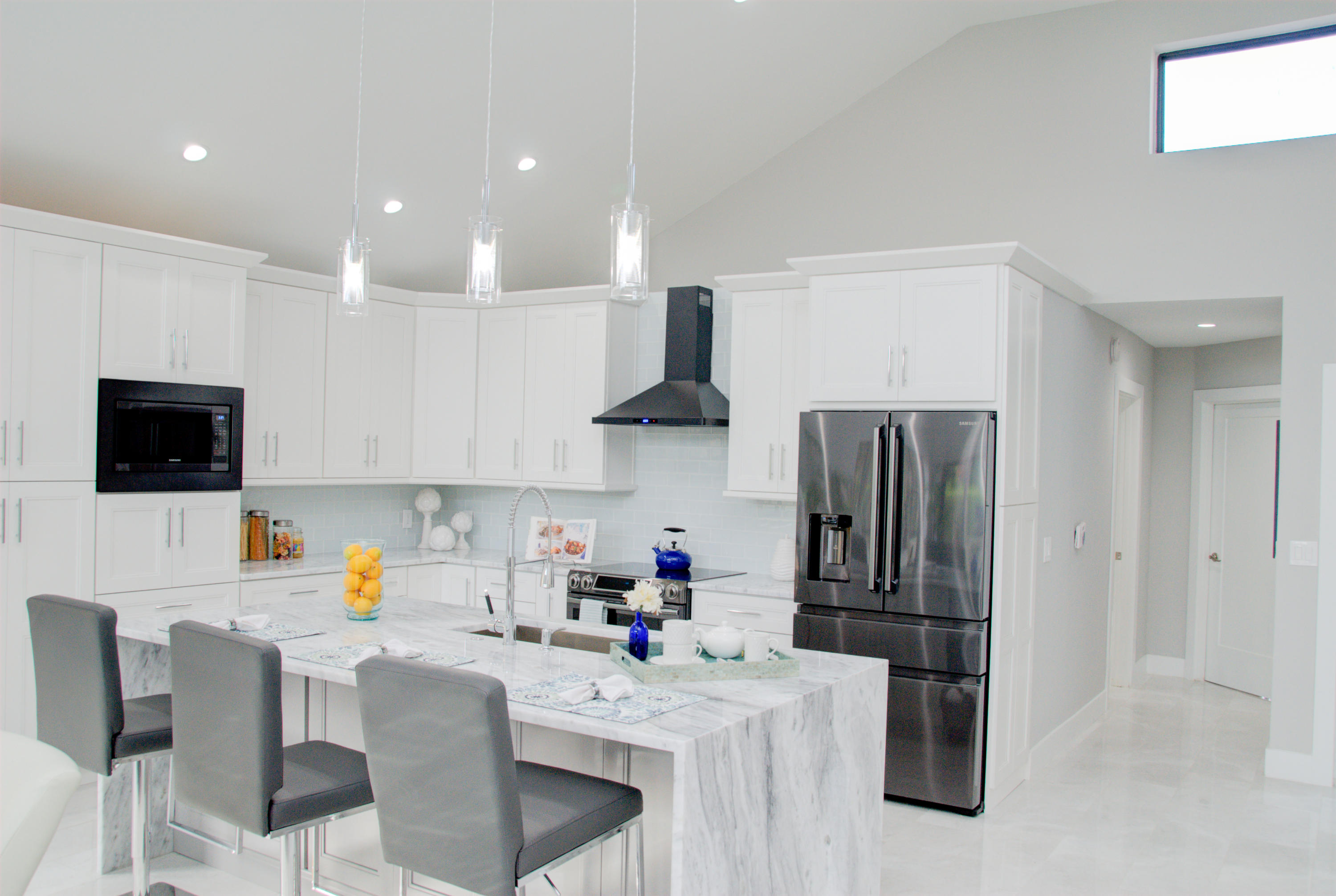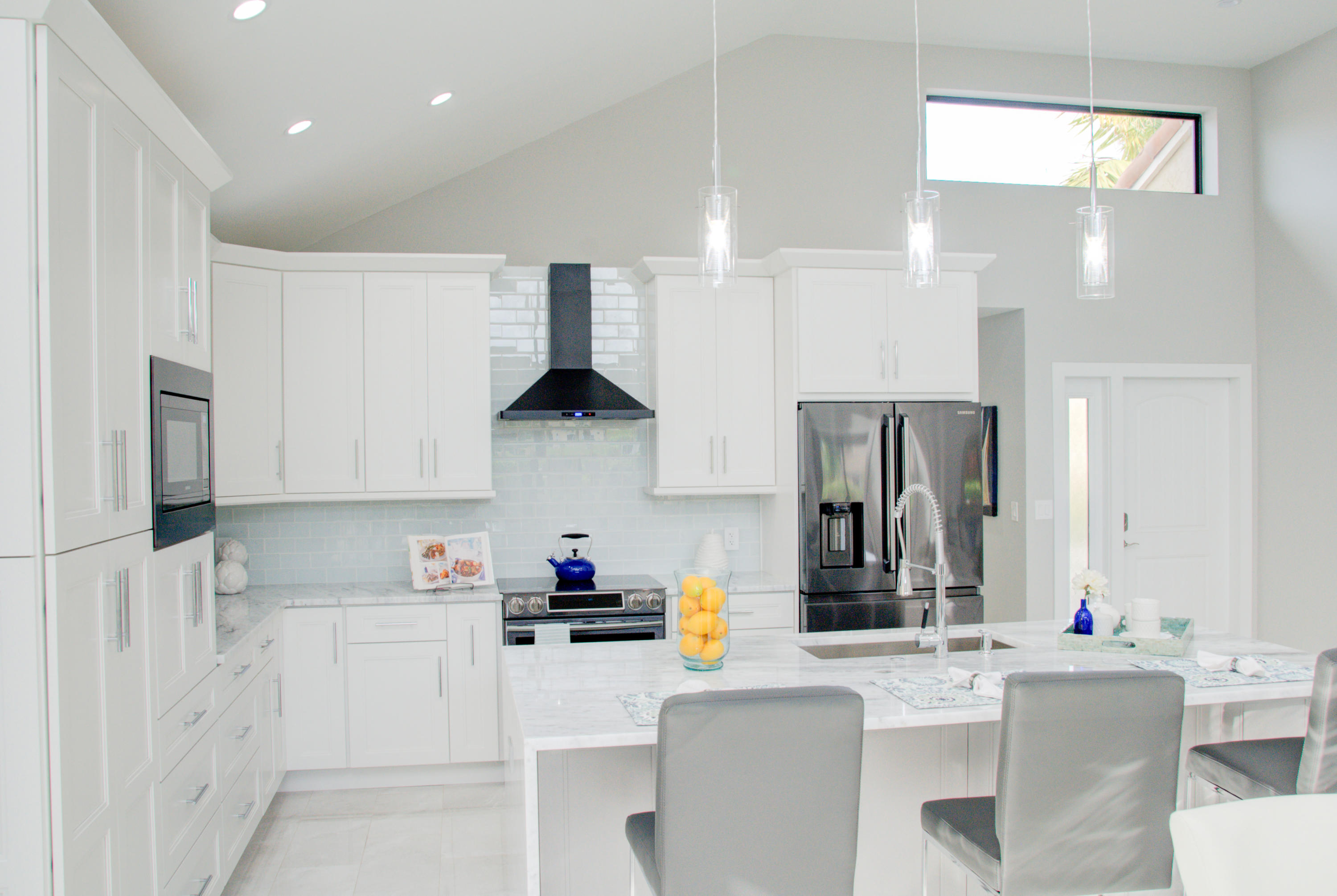 This homes has been totally remodeled. Open floor plan home features all new impact windows and doors, porcelain plank floors, stunning kitchen with 8' x 4' island and all wood white kitchen cabinets with soft closing doors and draws, stunning countertops, large pantry, Black stainless steel appliances, All new bathrooms (3). Master bath features stand alone tub and designer finishes. LED lighting throughout home. A MUST SEE!