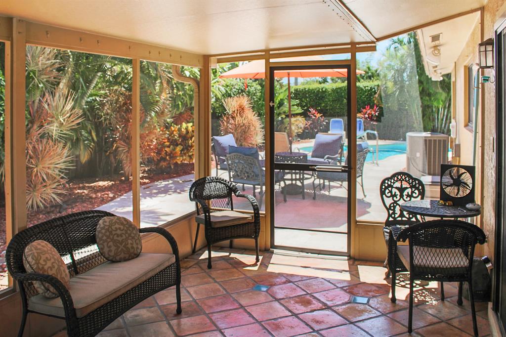 Prime Boca Raton east location is a real plus for this 4 bedroom pool home. The home is located on a corner lot with a private fenced yard with lush landscaping and a thriving avocado tree. This is your own piece of Florida paradise. The oversized pool and spacious patio offers all room to entertain and have a great time swimming, enjoying year round sun and BBQ's. There is a covered and screened patio too.The home has a a great layout with an open design and upgraded features including Saturnia Marble, updated master bath, 1 year new a/c, built in closets and granite in the kitchen. Storm preparation will be a breeze with impact windows. The home has been pre-wired for audio visual, is cable ready and has a room that is perfect for a home office. Be the lucky buyer for this pool home.