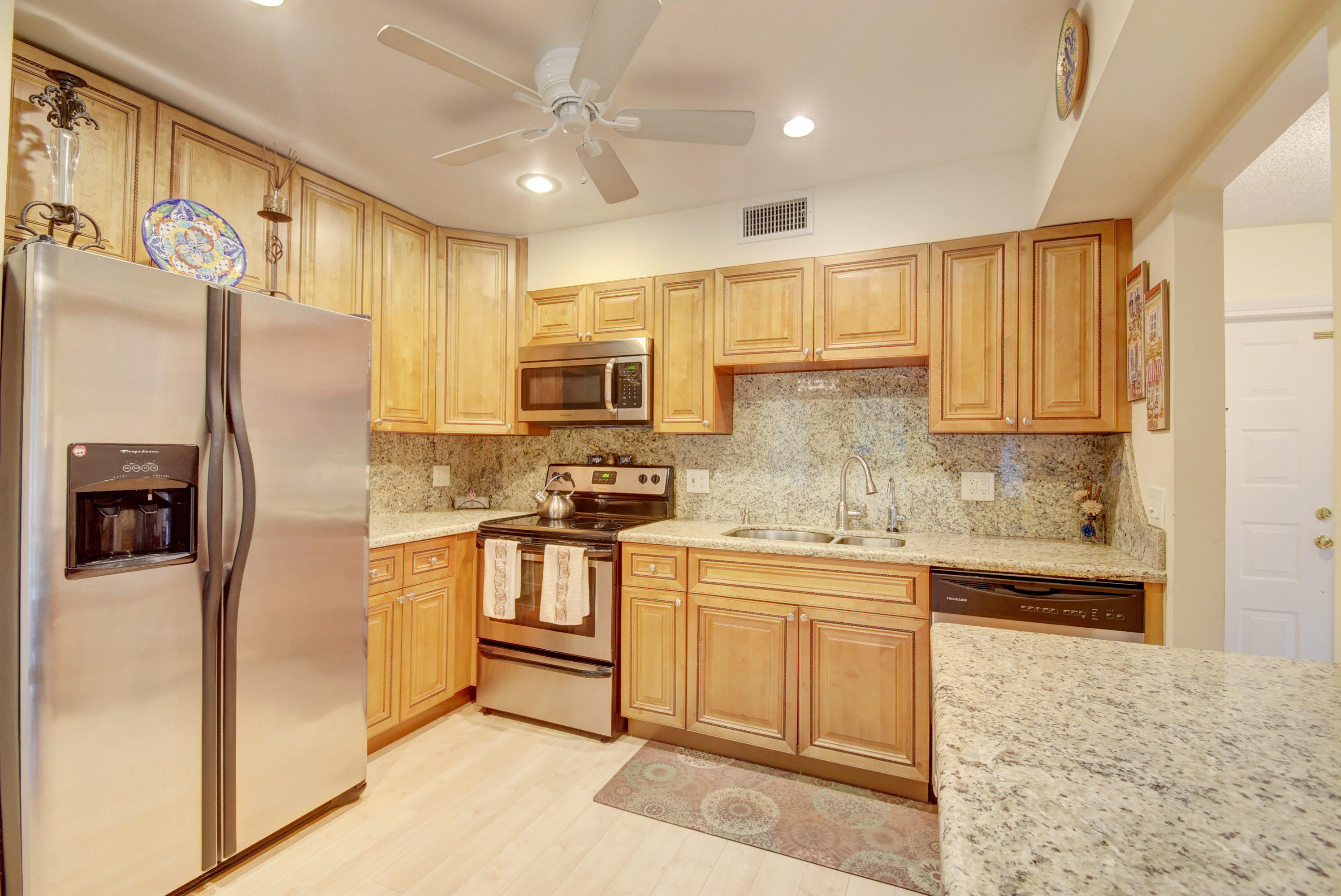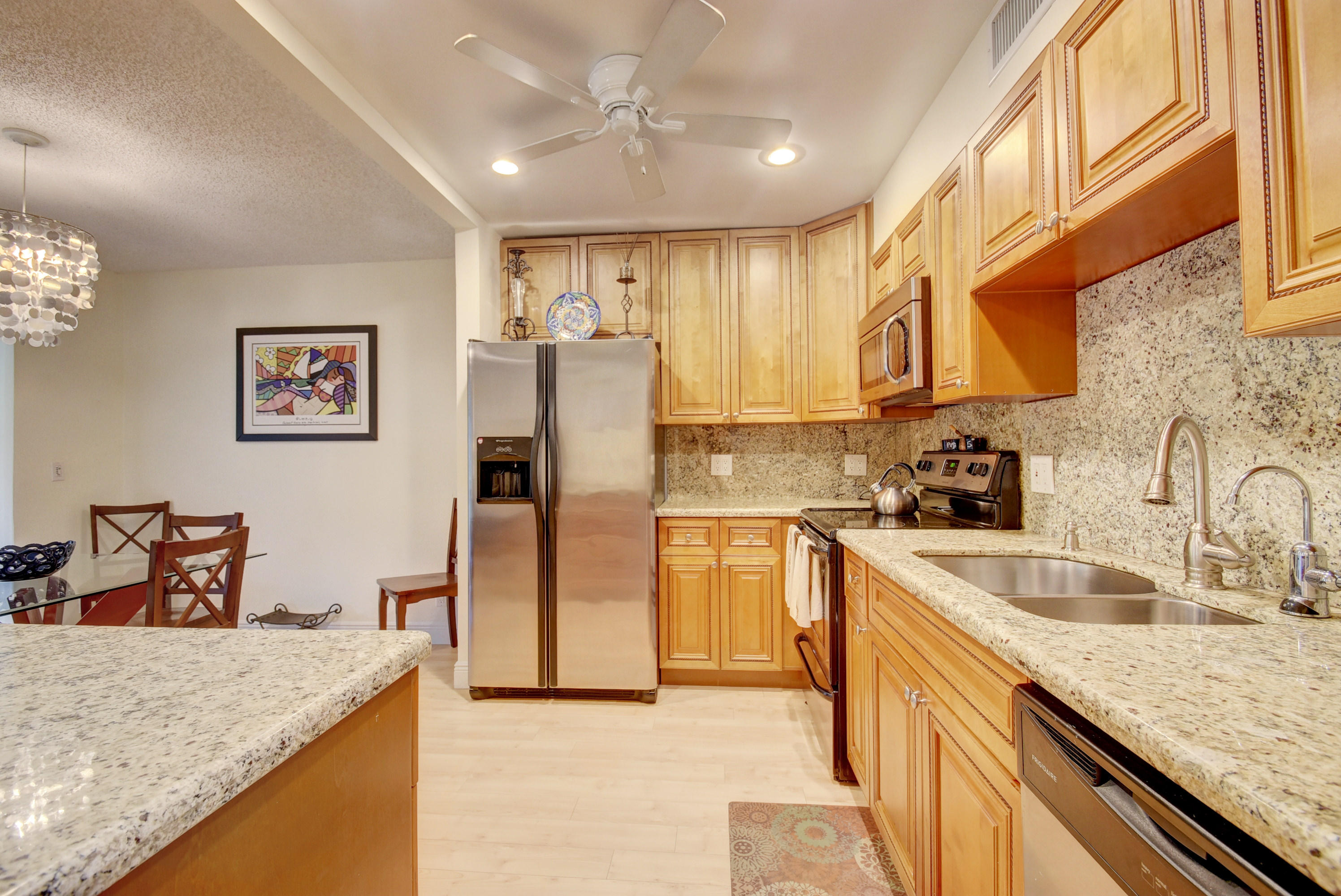Beautifully renovated 2/2 with bamboo laminate wood floors, granite counter tops and stainless steel appliances. Both bathrooms have been updated as well. Washer and dryer in the unit.