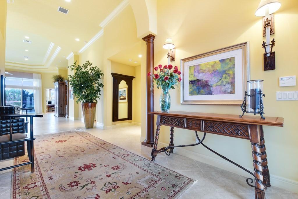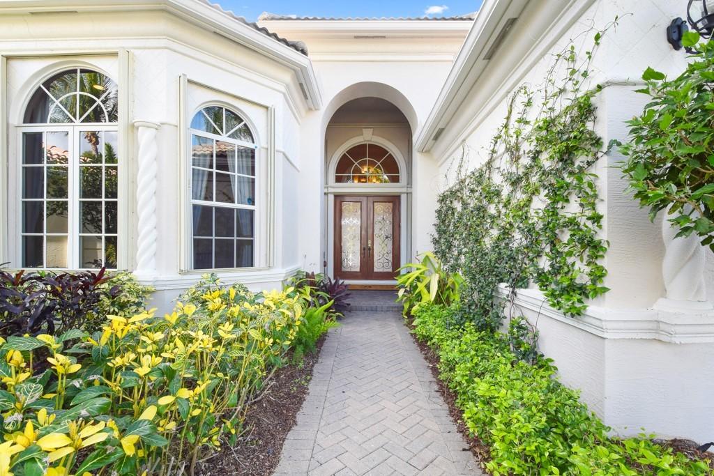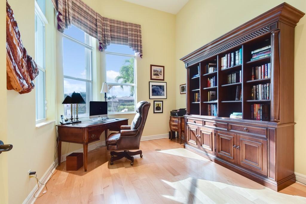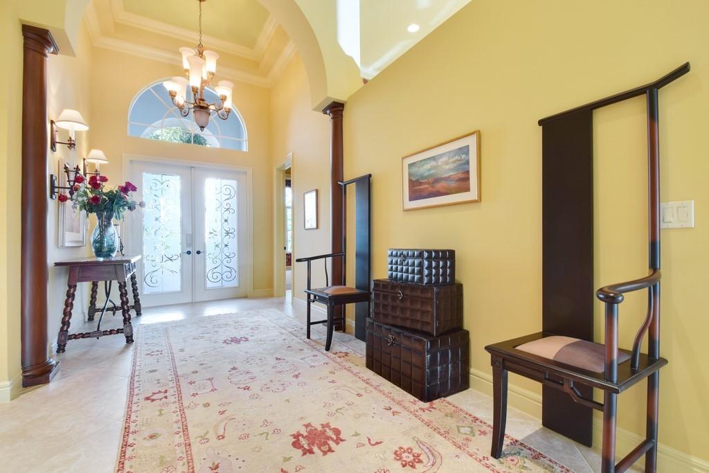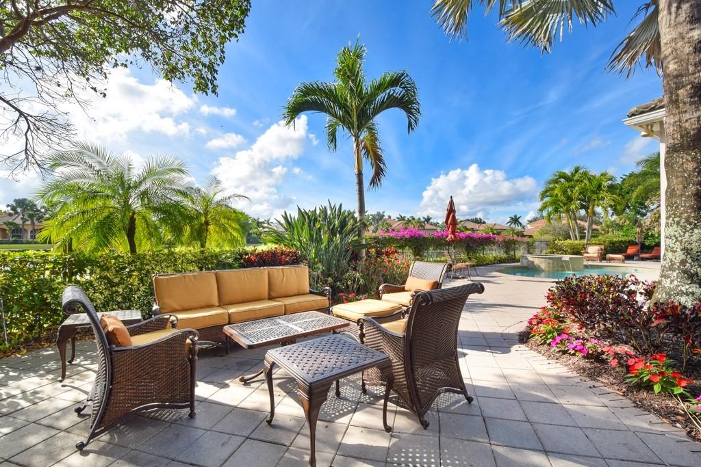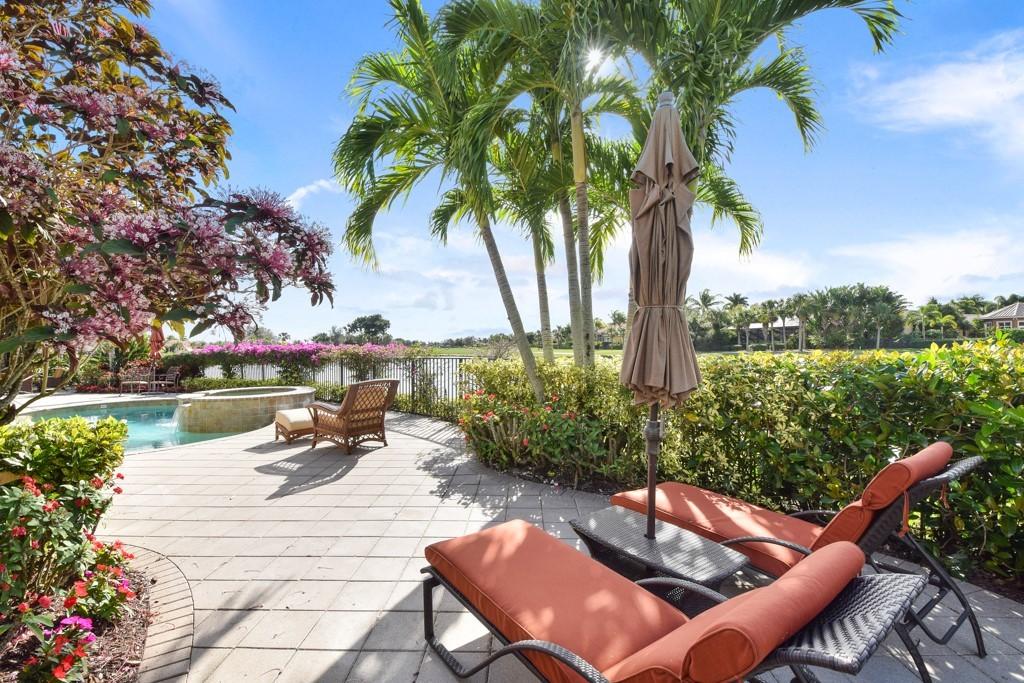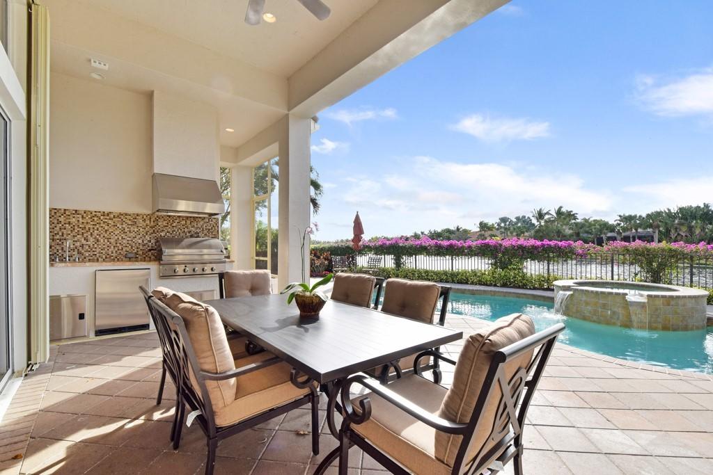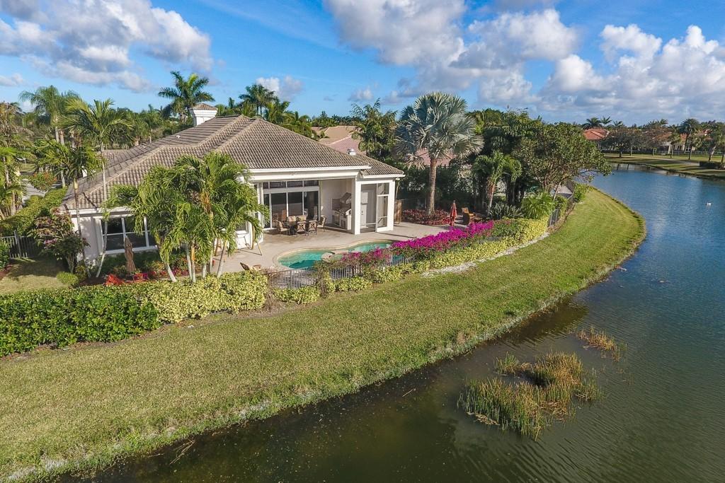 There are so many reasons to say ''WOW'' as you visit this customized and expanded Great room ''Aruba'' model. This one owner home has 4BR/3 1/2 BA+ Den+ and outdoor shower next to cabana bath. With 120 ft of water frontage and golf views and a lush bougainvilla hedge,it is situated on a large pie shaped lot. There are accordian shutters a phantom screen + electric screens in back,two year old AC's, newer water heater,expanded master bedroom, incredible master closet, DCS summer kitchen with grill, sink,fridge+lake irrigation,Jandy pool system, customized kitchen,wine cooler, pull out shelves in kitchen, double ovens,wood floors in den and master. Den faces the lake and golf course with spectacular sunsets.This stunning home is light , bright and decorator done waiting for the new owner.
