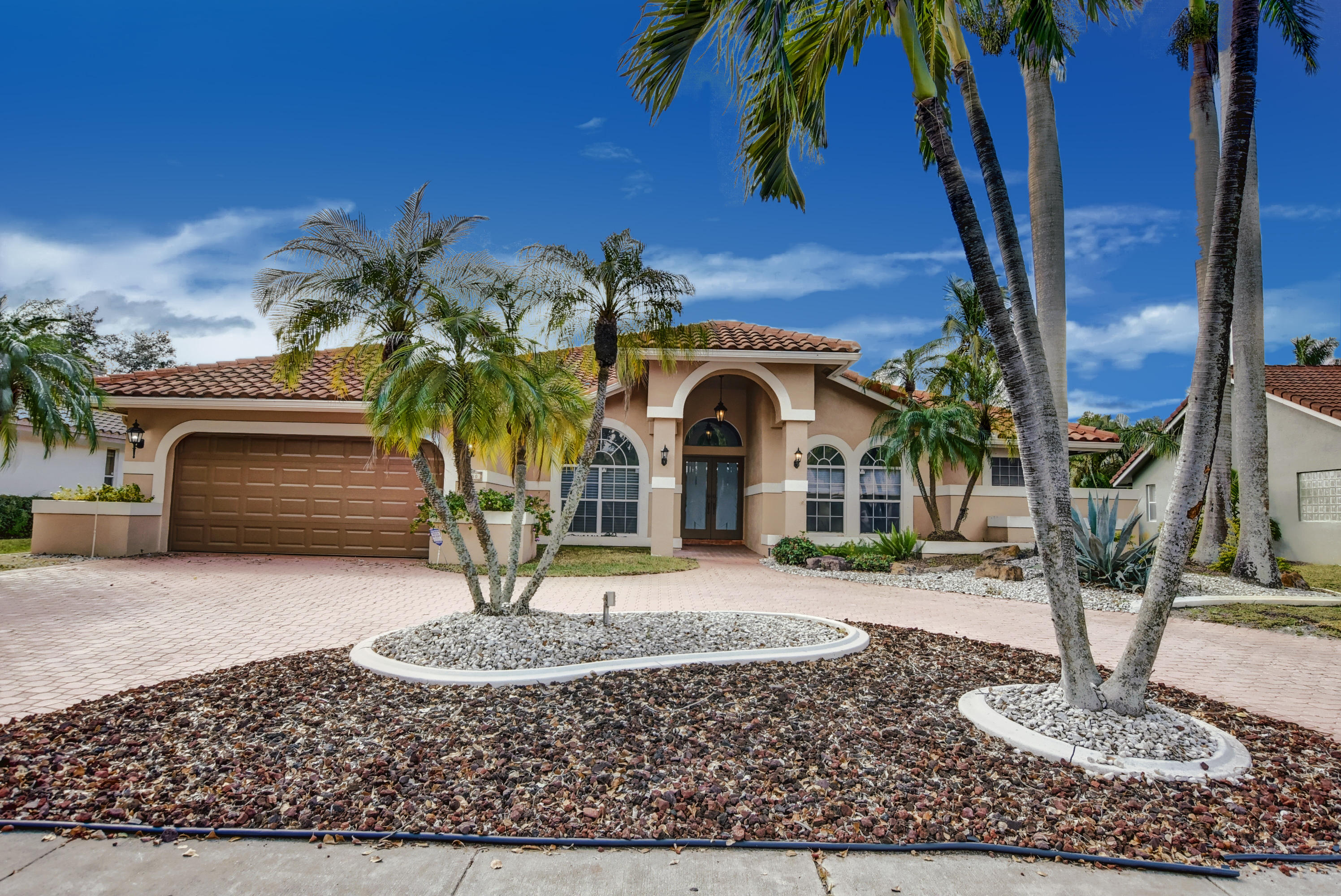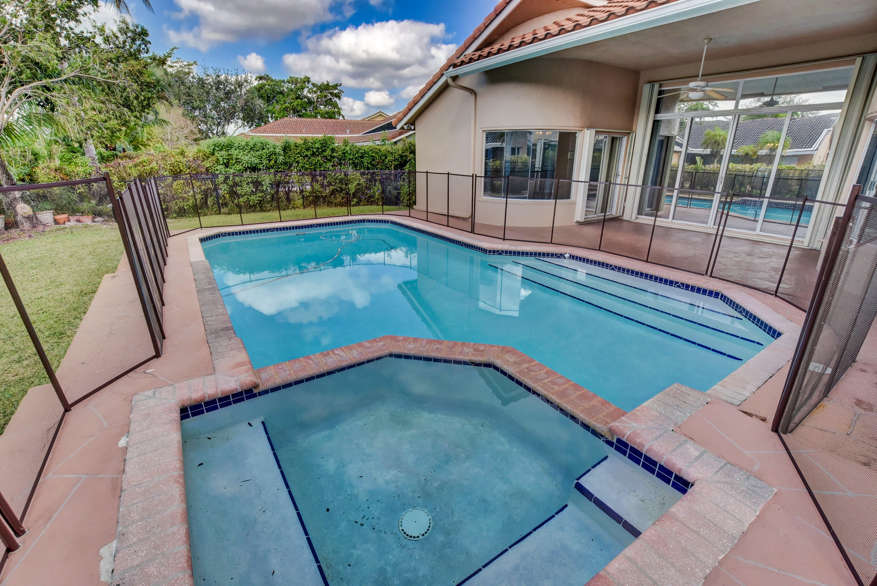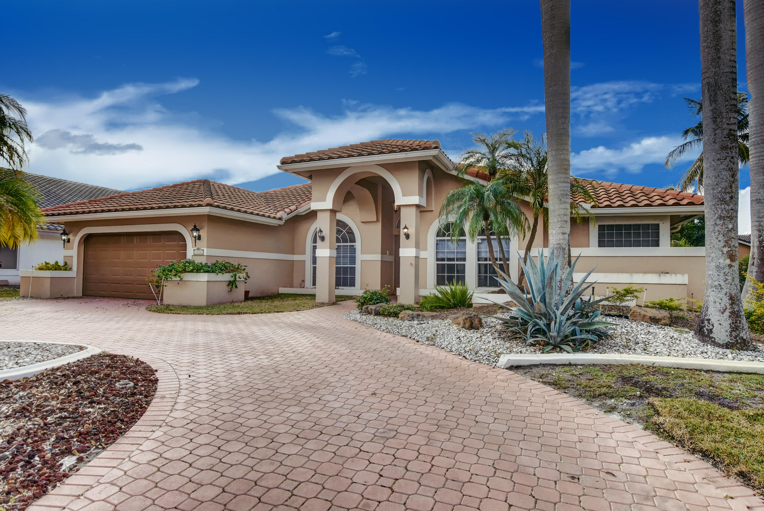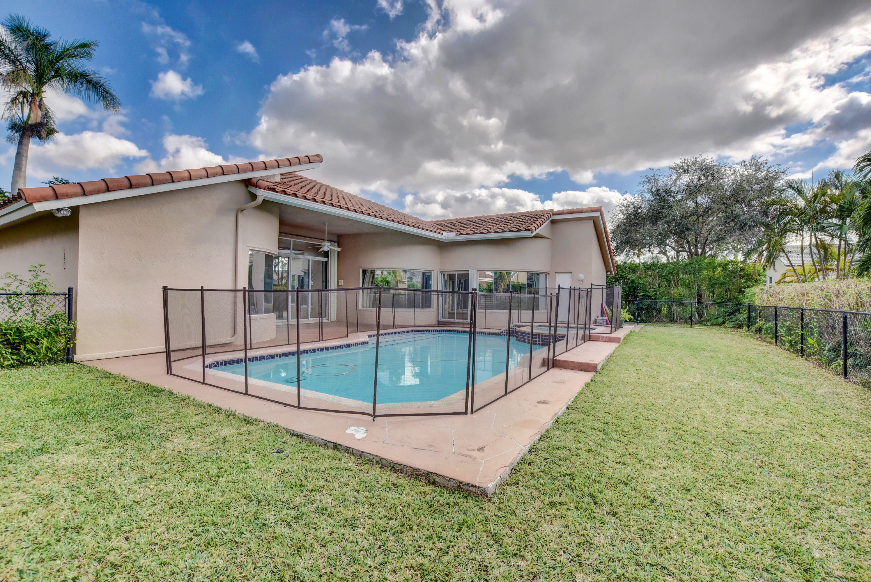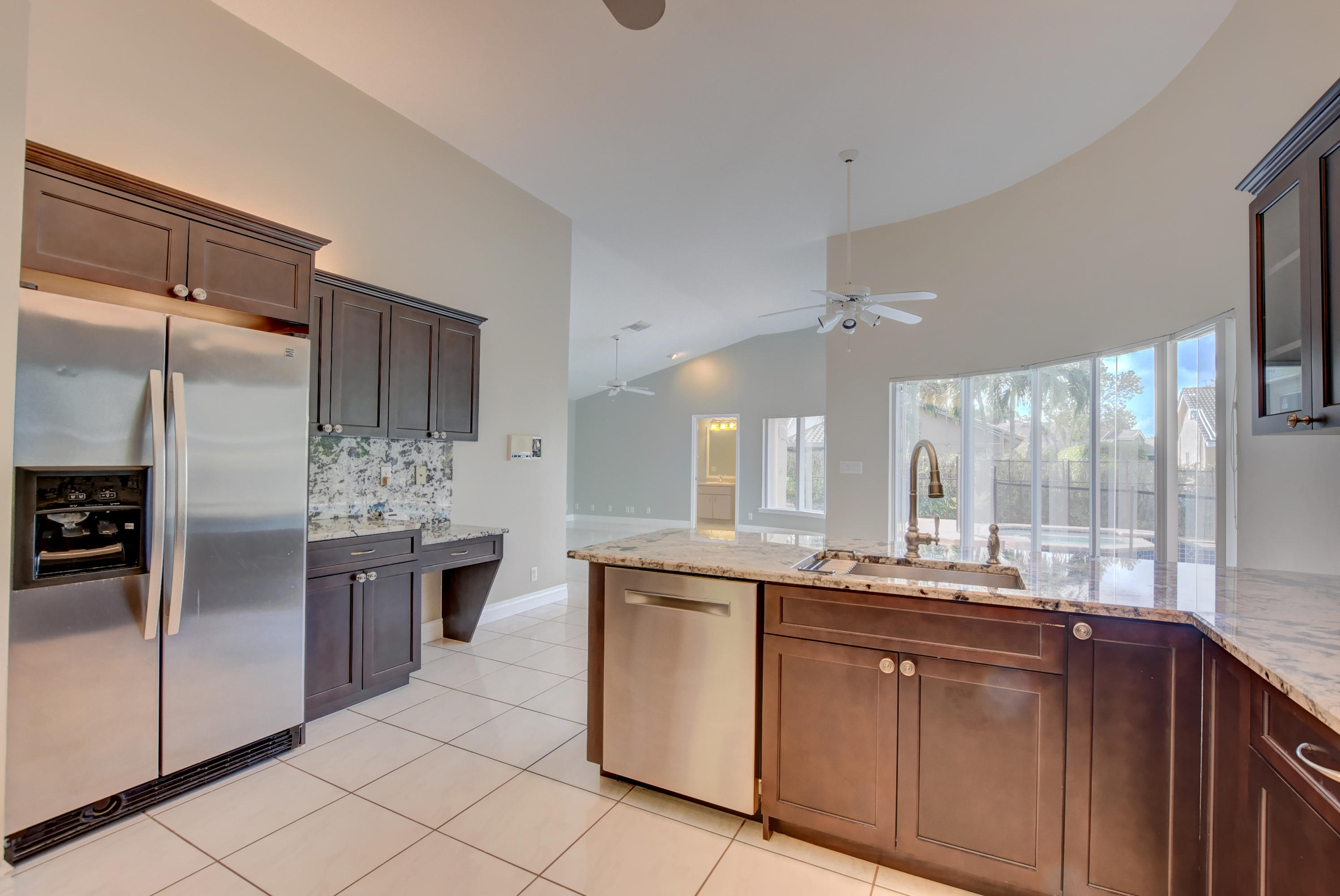 Immaculate 4 bedroom home with a pool on a quiet tree lined street with a very low HOA. A large circular driveway brings you a grand covered entrance into this beautiful open concept floor plan. The tall ceilings and large windows create a light and spacious feel. There is plenty of living space. This is a split floor plan with the large master suite to the right of the home which includes sliding glass doors leading you to the pool area. The kitchen has been completely renovated with stainless steel appliances including a wine fridge and granite counter tops, there is an eat in kitchen and living room that have access to a cabana bathroom which conveniently open directly to the backyard. Close to school, two parks, shops and restaurants, this is not to be missed!