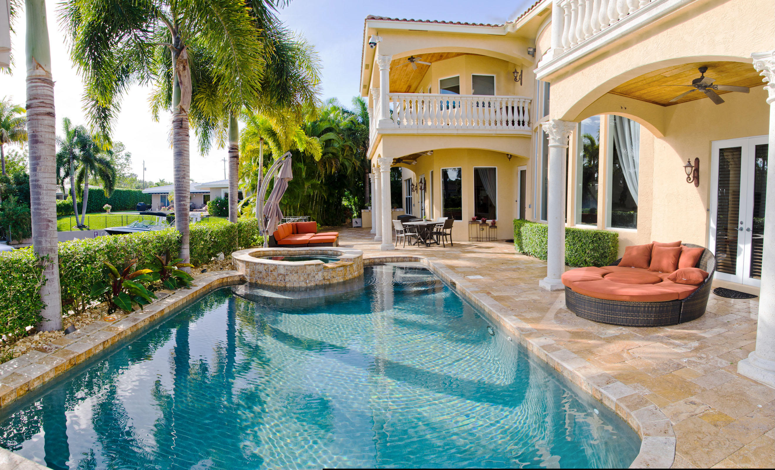 Spectacular Deep Water Estate in sought after Boca Harbour. This amazing estate features 6 Bedrooms/6.5 Bathrooms all protected by Hurricane Impact Glass. Southern exposure, resort style pool & spa, beautiful fireplace and a convenient elevator. Ocean access with no fixed bridges from your private boat lift makes this estate a boaters dream.