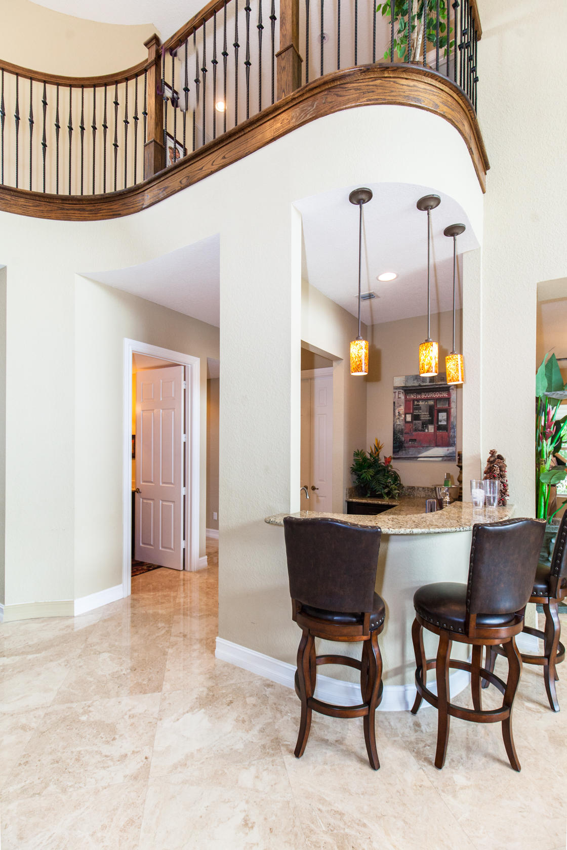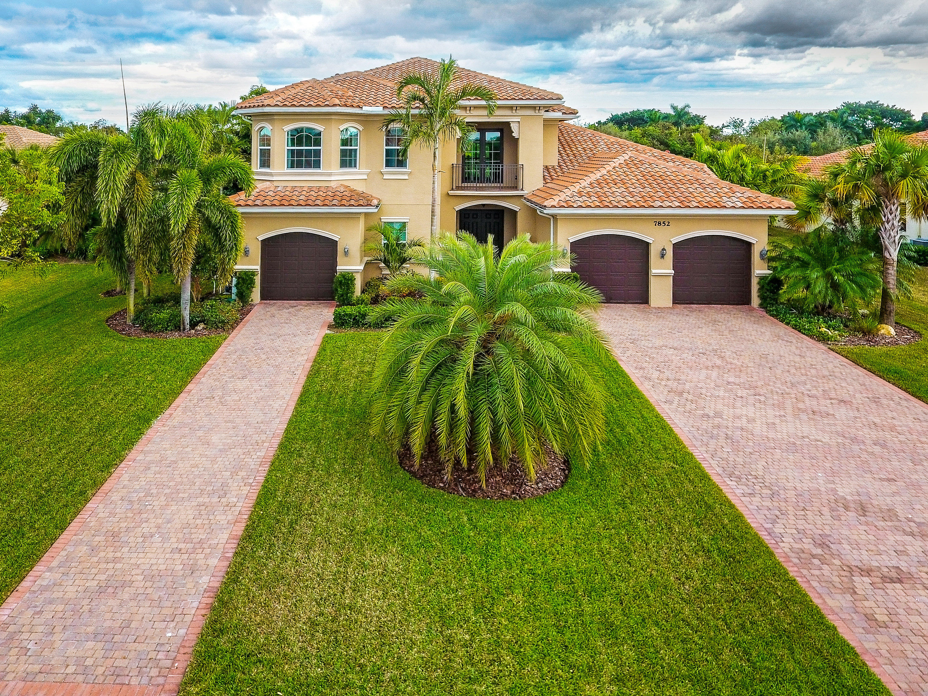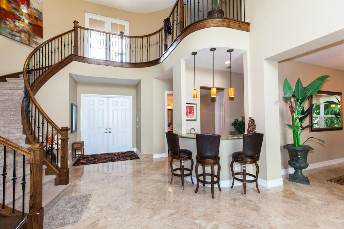 WOW! Magnificent upgraded Estate home that is perfect for entertaining. 4 bedrooms + den/office. Glimmering marble floors, built in wet bar & towering ceilings adorn the great room. Highly upgraded kitchen features double ovens, under & over counter lighting, soft close drawers, stainless steel appliances and custom pantry doors. Majestic winding staircase features a wrought iron and wood railing leading to a huge 2nd floor media/family room with 2nd floor covered porch. Over $125,000 in upgrades including a custom $50,000+ resort styled heated, salt pool with Euro tile patio. 2 paver brick driveways leading to spacious 3 car garage. All hurricane impact windows and doors. Luxurious master bathroom features double vanities separate tub & glass enclosed shower. Two spacious walk in closets