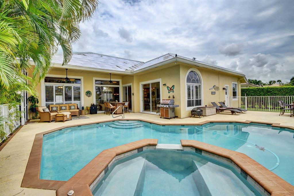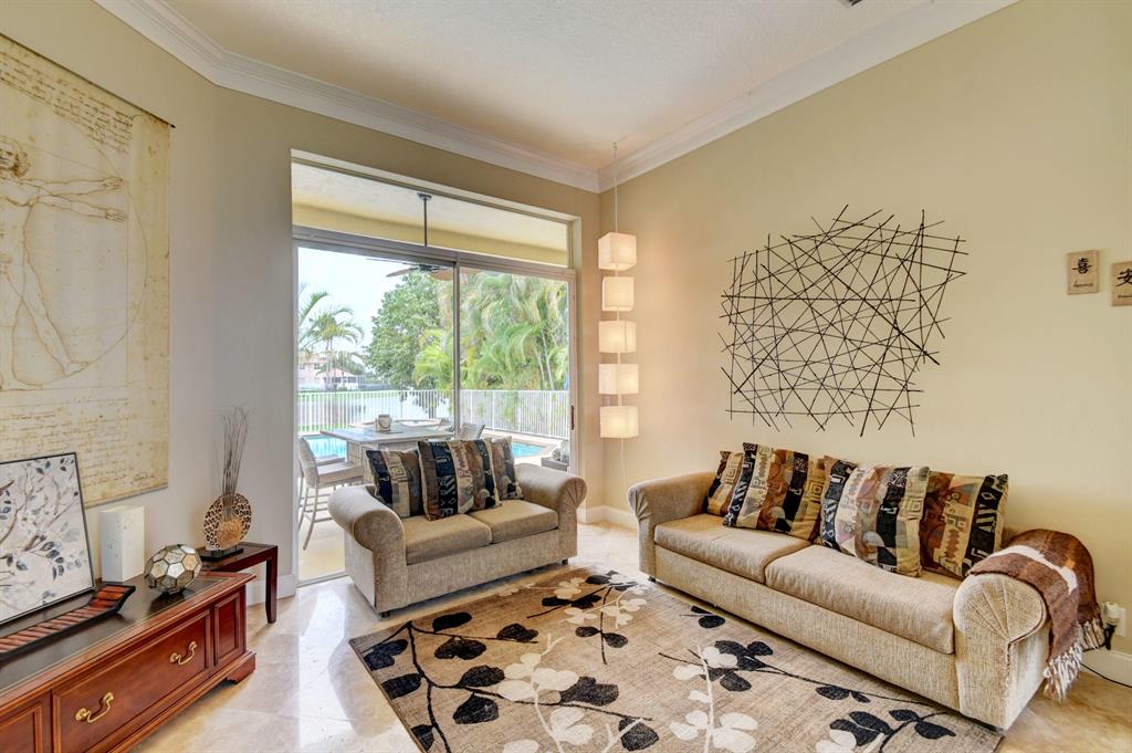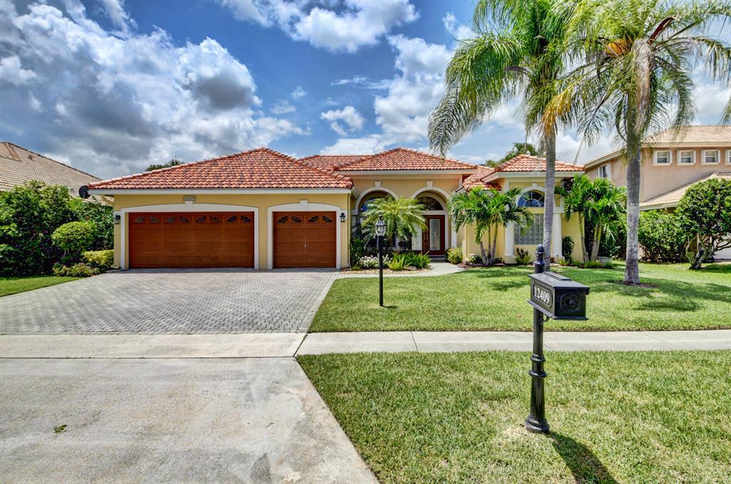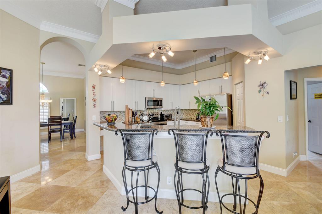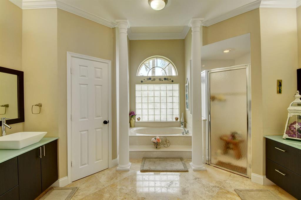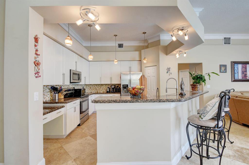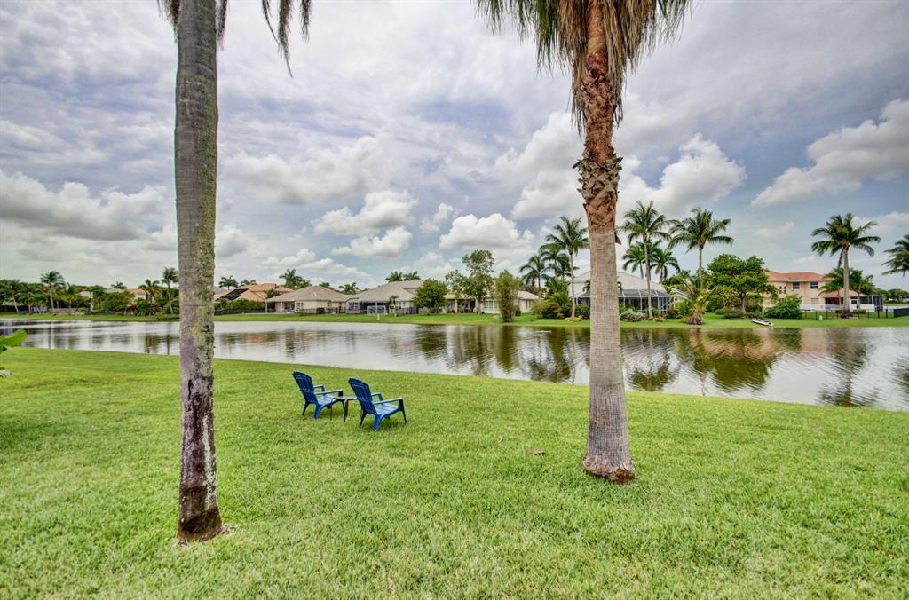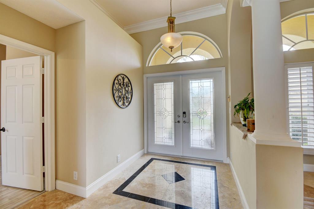 LAKE FRONT! 4/3 home w/ 3 way split floor plan & 3 car garage. BRAND NEW ROOF &HURRICANE RATED FRONT DOOR JUST INSTALLED FOR NEW OWNER! Travertine marble floors & crown molding throughout living areas. White modern kitchen cabinets w/SS appliances(approx. 3 yrs new),granite counter tops &breakfast bar. Master bedroom suite has plantation shutters, light laminate flooring, 2 walk in closets, renovated vanities, roman tub, separate shower&water closet. Guest baths are renovated. Laundry Rm-new LG W/D&sink. Eco Bee controller for A/C. New A/C fan. Electronic front door combo lock. Beautiful pool/patio area w/covered patio. Variable speed pool pump saves electricity. Gated community close to ''A''rated schools. SELLER TO PAY $5500 TOWARDS BUYER'S CLOSING COSTS