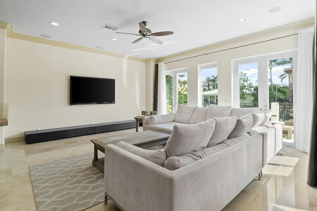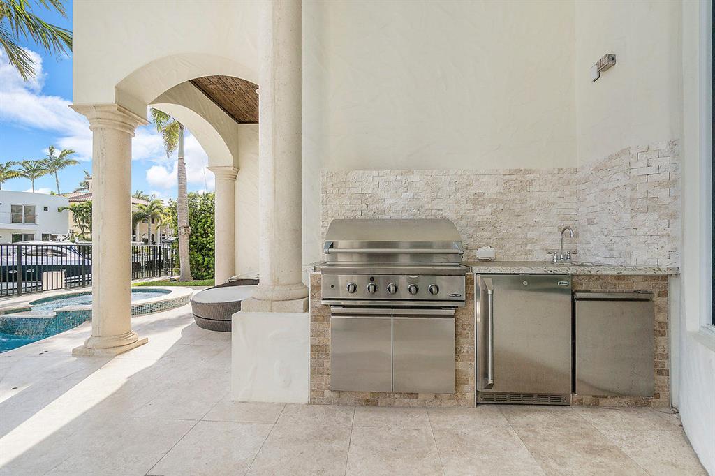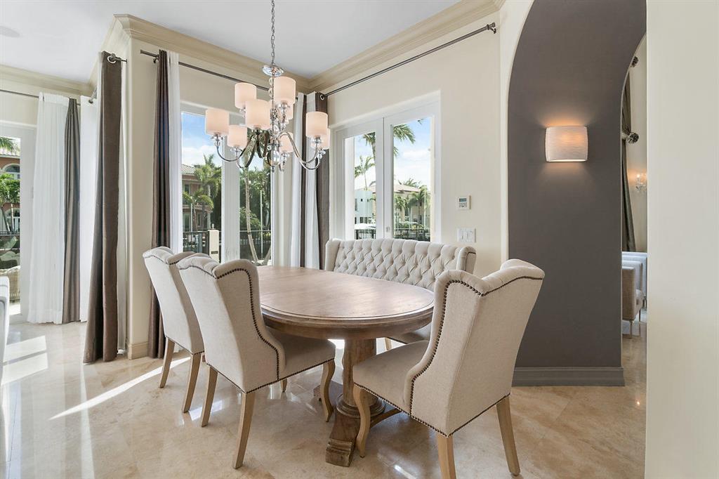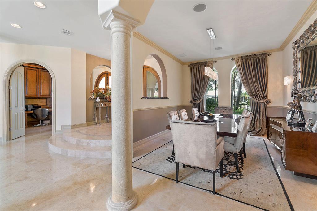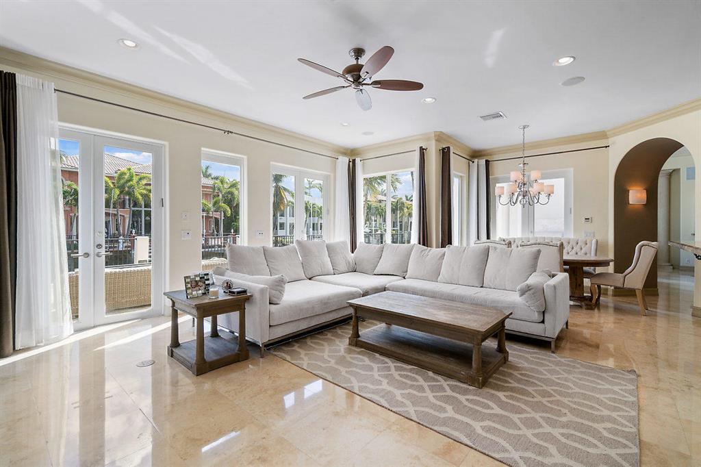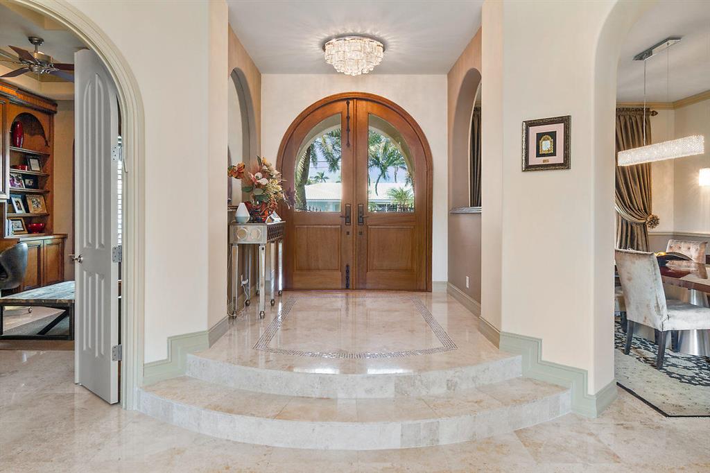 Enjoy Boca Style Waterfront Living in this Magnificent Turnkey Home.If you've always dreamed of living the Boca Raton lifestyle and wanted to combine your passions for boating and entertaining, this home is perfect for you. With over 5100 SF of living space, this 5-BR/6.5-BA dream home has it all. From the moment you walk through the arched entryway and step onto the gleaming marble floor of the foyer, you know you're experiencing luxury. The beautiful marble pillars on either side of the entry to the living room are but a hint of the elegance that is evident in every room of this home. The living room provides soaring views of the upper balcony and through the gorgeous large glass doors you can see the covered patio and glimmering waters of the pool.
