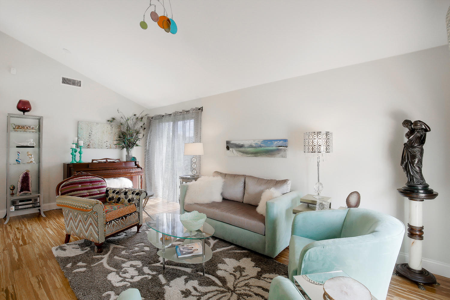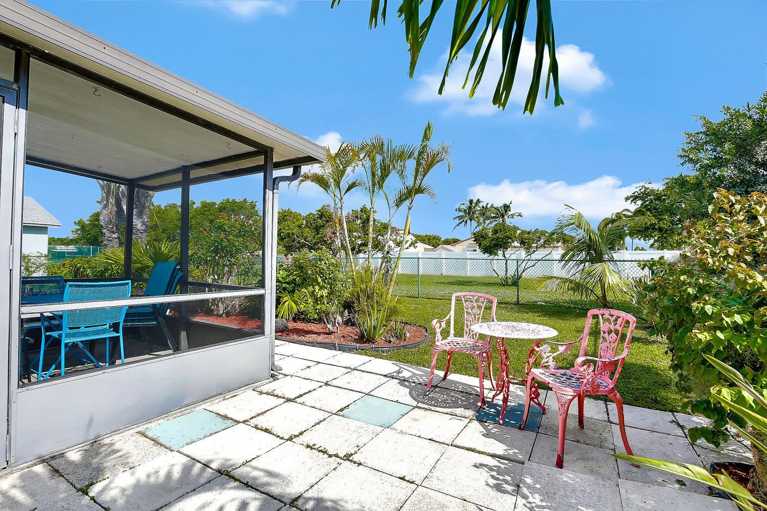 Lots of glamour is packed into this adorable, remodeled home on a private, beautifully landscaped, fenced lot! The open kitchen has wood cabinets with Lazy Susans, pantry, quartzite counters, luminous glass backslpash, large undermount sink, stainless steel appliances including a slide-in convection oven, microwave & French door refrigerator. Sparkling pendant lights grace the breakfast bar. Bamboo & laminate flooring throughout. NO POPCORN CEILINGS in living areas! 2nd bathroom has soaking tub/shower combo with gorgeously funky faucet & rainshower,full tile to ceiling, glass vessel sink & pretty wood vanity. Master Suite has two spacious linear closets,updated bathroom w/wood vanity, granite counter, floor to ceiling tile, crown molding + rainshower. Clear hurricane panels. Pool & Tennis