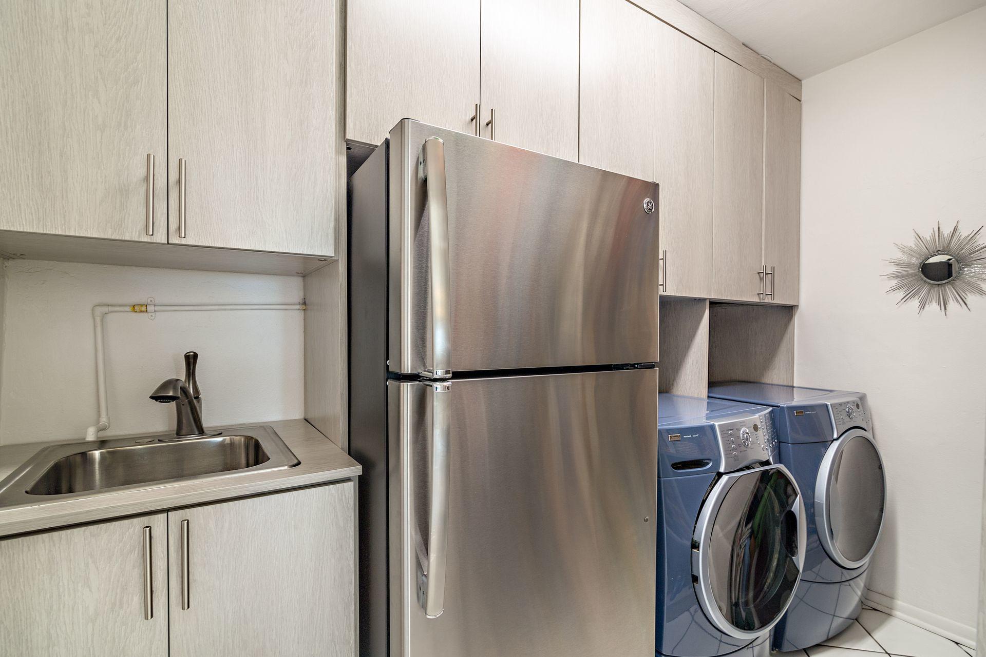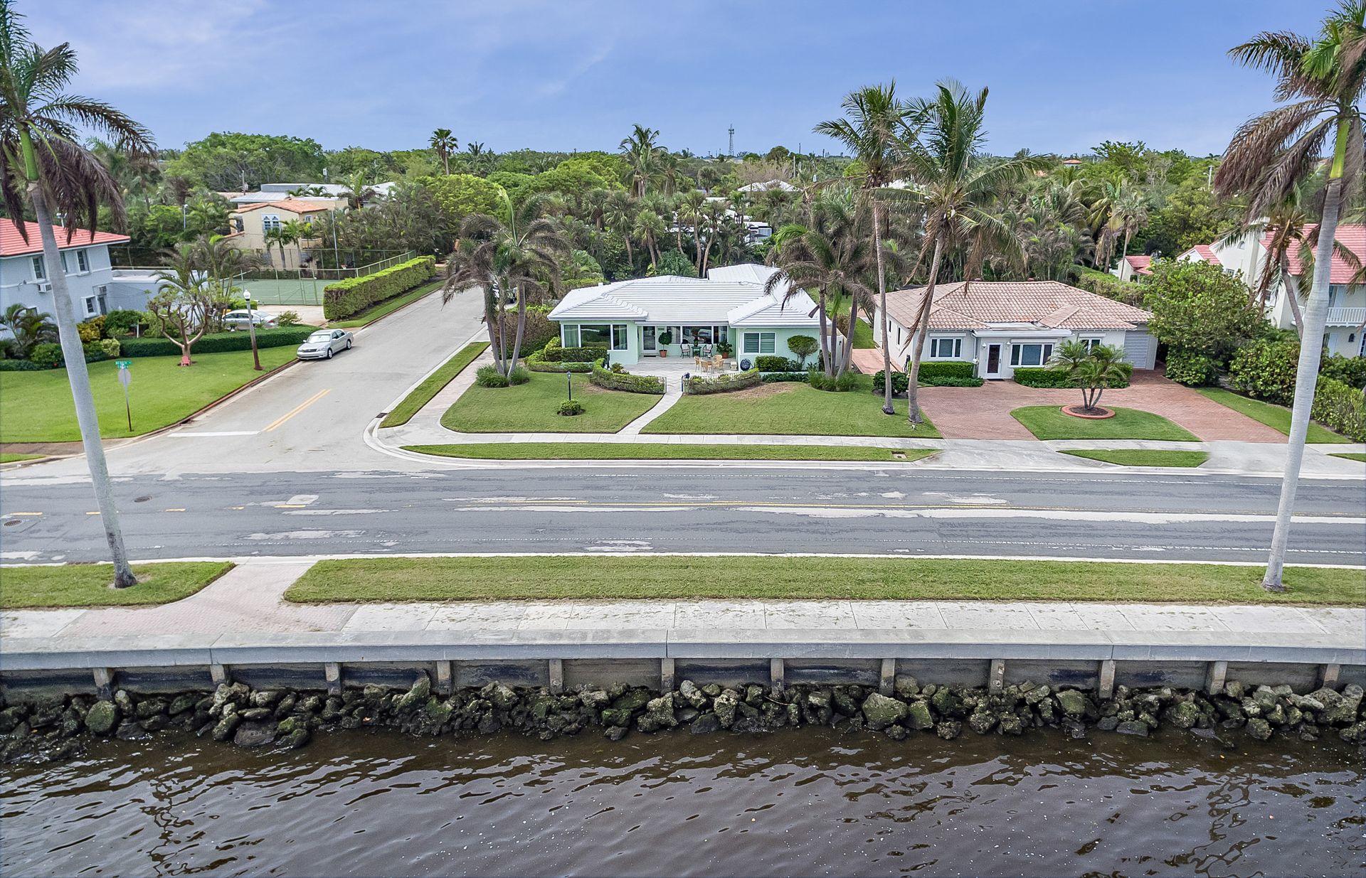 Panoramic Intracoastal water views from this immaculate 2BR/2BTH Bermuda style pool home with garage, situated on an oversized corner lot. True Florida living featuring fantastic updates & great spaces, perfect for entertaining. Inviting front patio, unparalleled water views, impact windows & doors. Spacious open floor plan with large living & dining rooms, great kitchen equipped with two sinks & chef's gas range! Fantastic utility pantry with 2nd refrigerator, washer & gas dryer. Exquisite master suite with exceptional closet space & custom California cabinetry. Beautiful master bath with double vanity & walk-in shower. Private guest bedroom with stunning ensuite bath & walk-in closet. Private covered patio overlooking pool & the estate sized back yard with mature tropical landscaping!