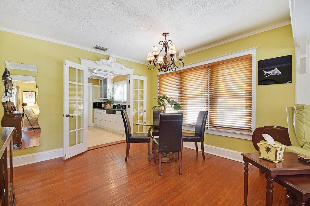Charming, super cute 2 bed 1 bath craftsman style home with den and laundry room! Original hardwood floors. 8 inch moldings. Granite countertops in kitchen and baths. Double paned windows (w hurricane shutters). Spacious feel with high ceilings. New AC in 2016. Incredible backyard oasis with recessed hot tub, upper and lower deck, in-ground garden bed and fire pit! Located along Antique Row near City Place, Grandview Market, Brightline and all that West Palm has to offer! Just a short bike ride to the intracoastal! Awesome opportunity for residential or investment purposes.
