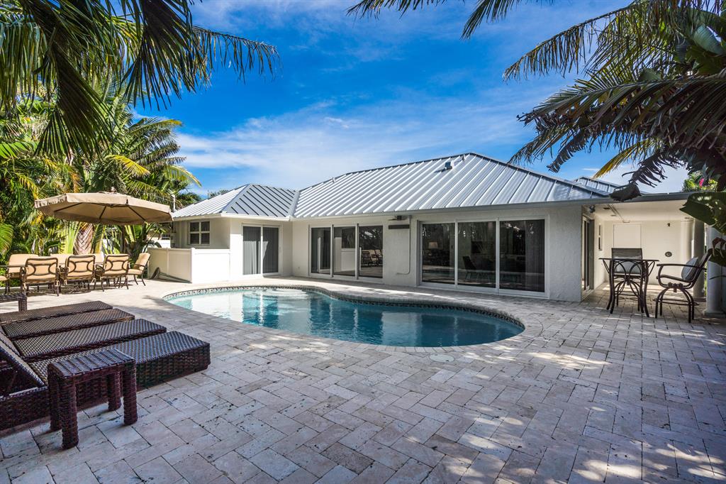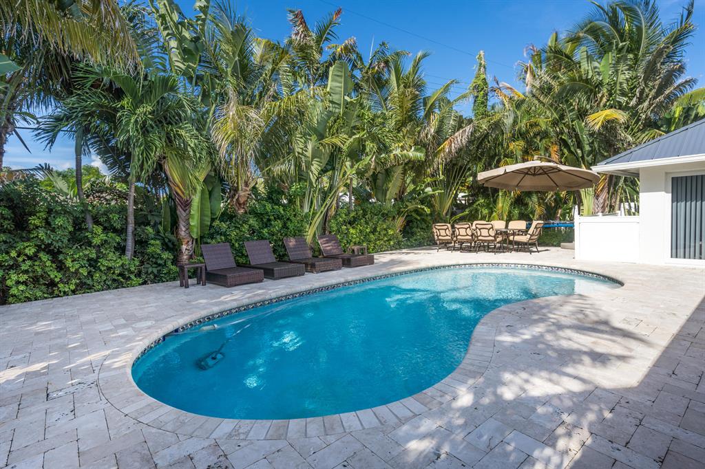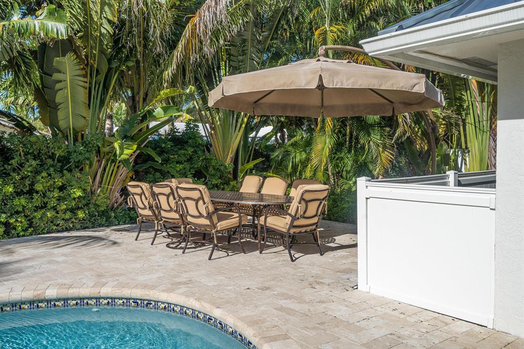 This exquisite, custom-built, updated Traditional style home features a spacious outdoor patio, 30-foot teardrop pool and private backyard with lush tropical landscape. On the interior you will find high-ceilings, 3 bedrooms, 3 bathrooms, a huge gourmet kitchen, boasting a gorgeous quartz countertop and a myriad of upgraded appliances. This home is perfect for entertaining and enjoying life's simple pleasures.. And as an added benefit, this home also includes deeded beach access, and is located just steps from the Ocean!