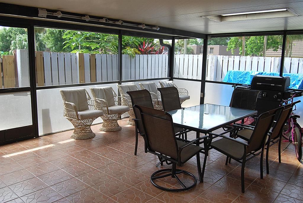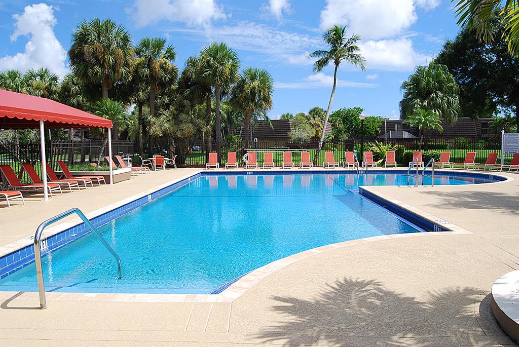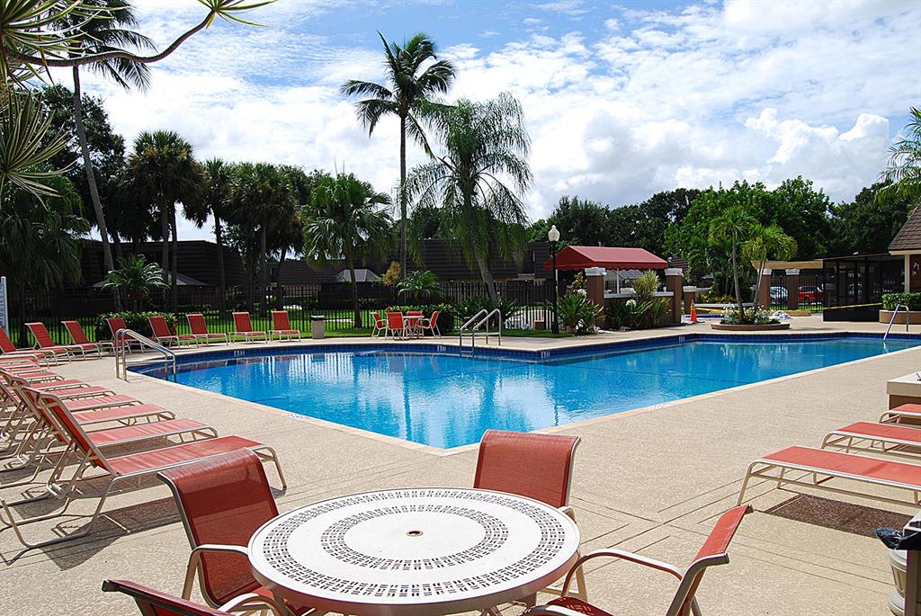 Nice, well maintained corner unit across from pool.Screened patio with hard roof and tile. 2 master baths. Tile throughout.Stainless Appliances. Close to I-95 shopping, airport, CityPlace and new Ballpark of The Palm Beaches.Maintencance feee includes water, trash, landscaping, exterior maintenance including roof, pool and clubhouse. 2 assigned parking spots.