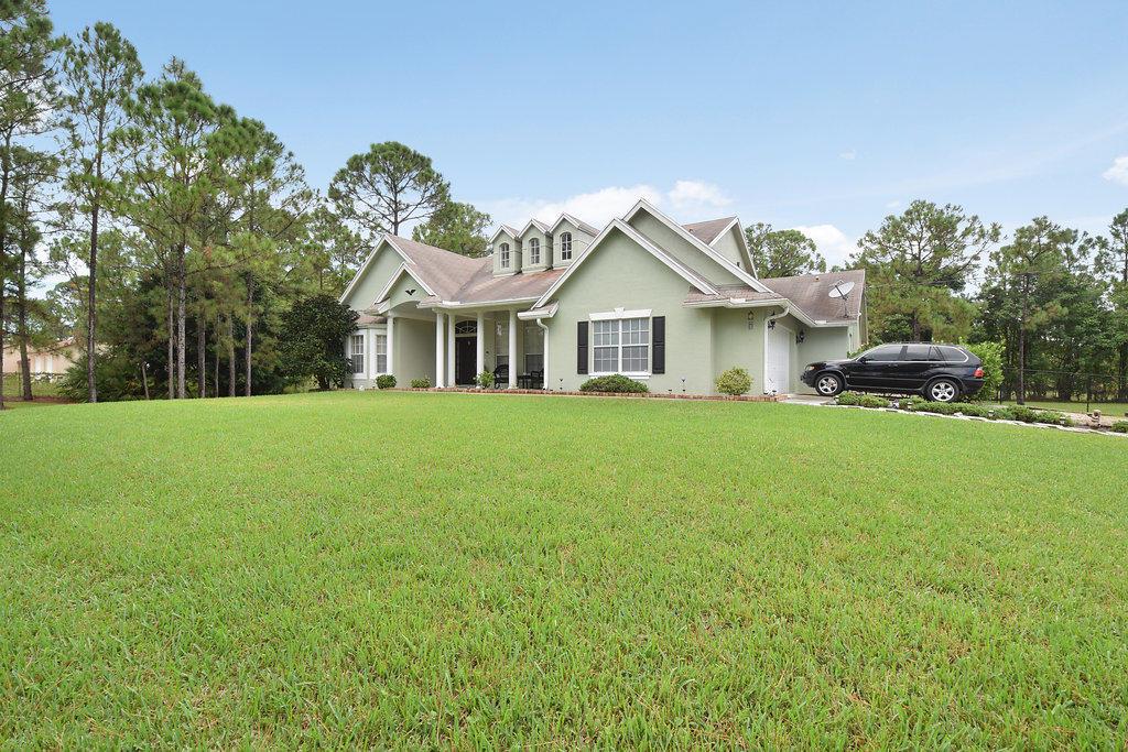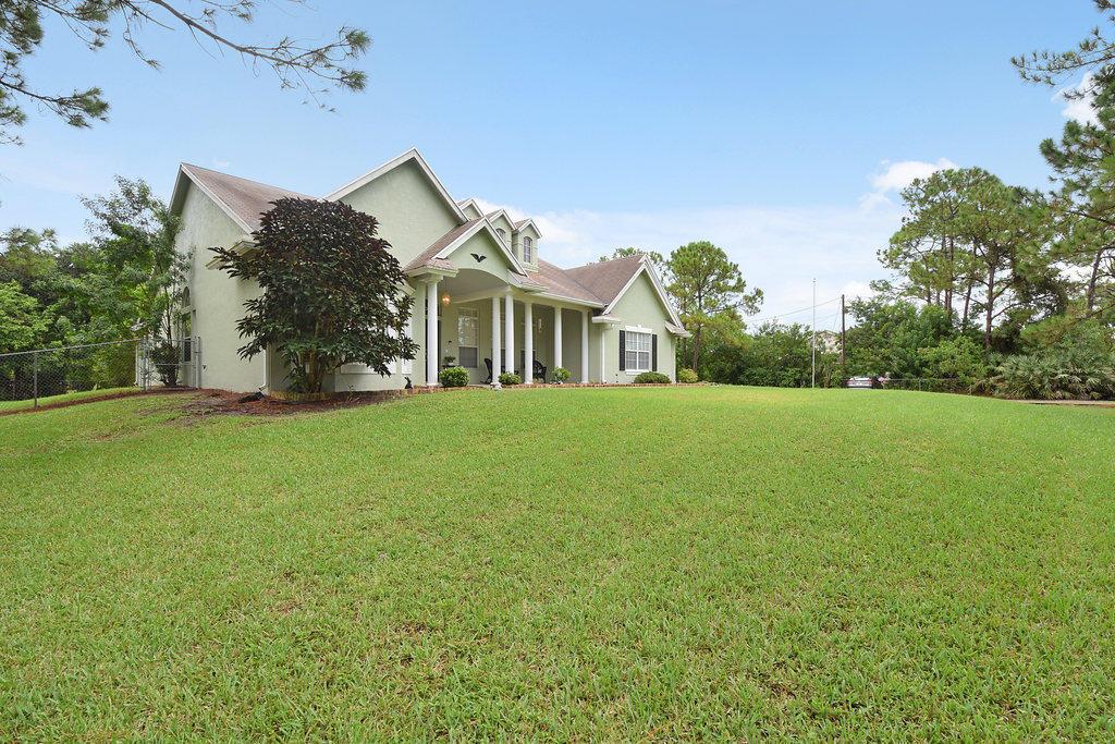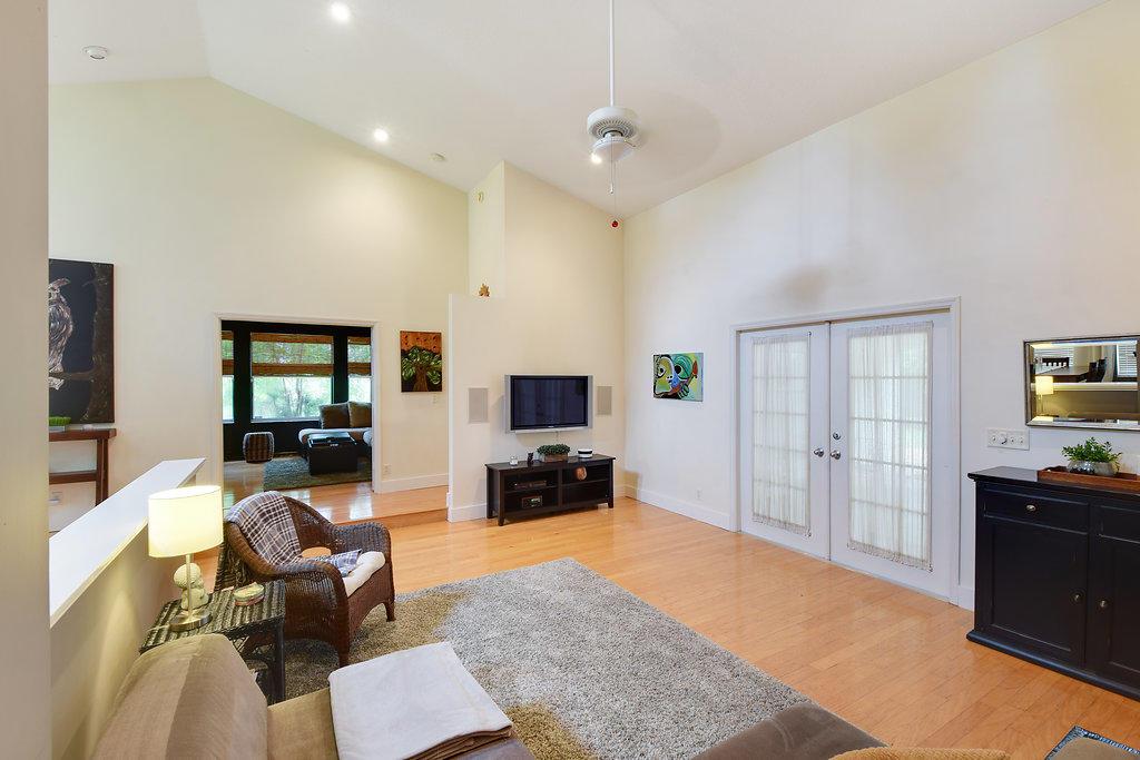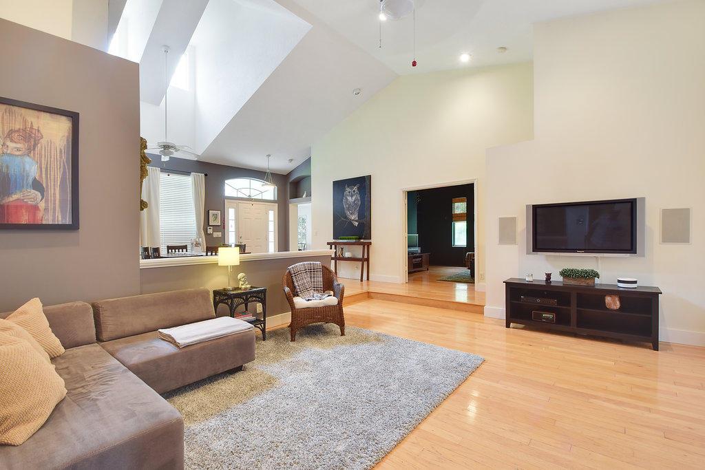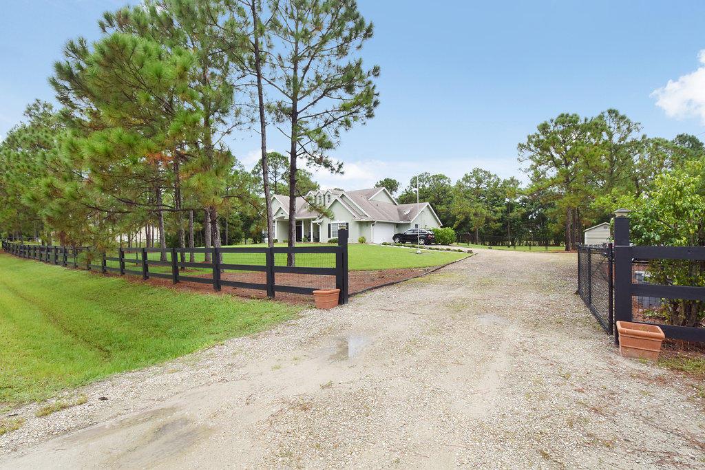 Secluded home on a perfectly manicured 1.3 acre lot. Fully fenced property with separation between the front & back yards. 4 bedroom + a den with desirable open floor plan. High vaulted ceilings and sky lights give a bright and spacious ambiance. Genuine oak wood floors throughout. Enclosed patio with slate tiles offer expansive views of your private green escape. Newer A/C, well for irrigation, and fully equipped with Kinetico water purification and softener system. Excellent home for family & entertainment!