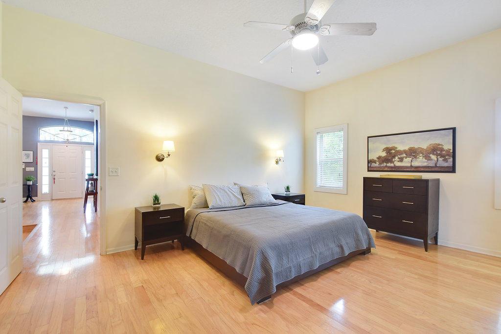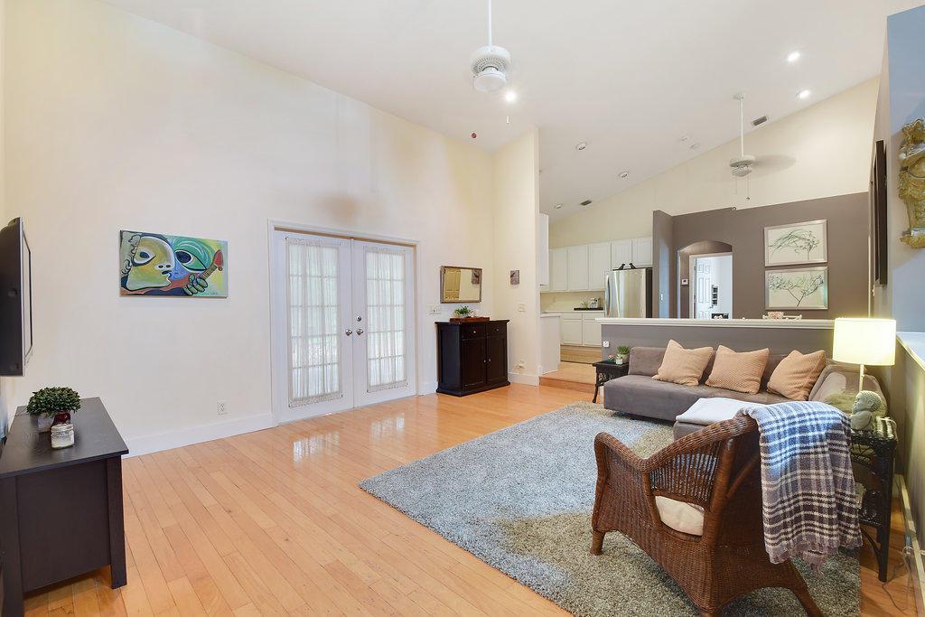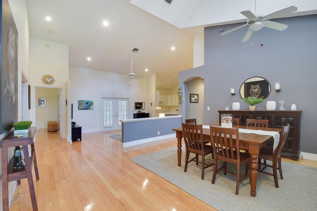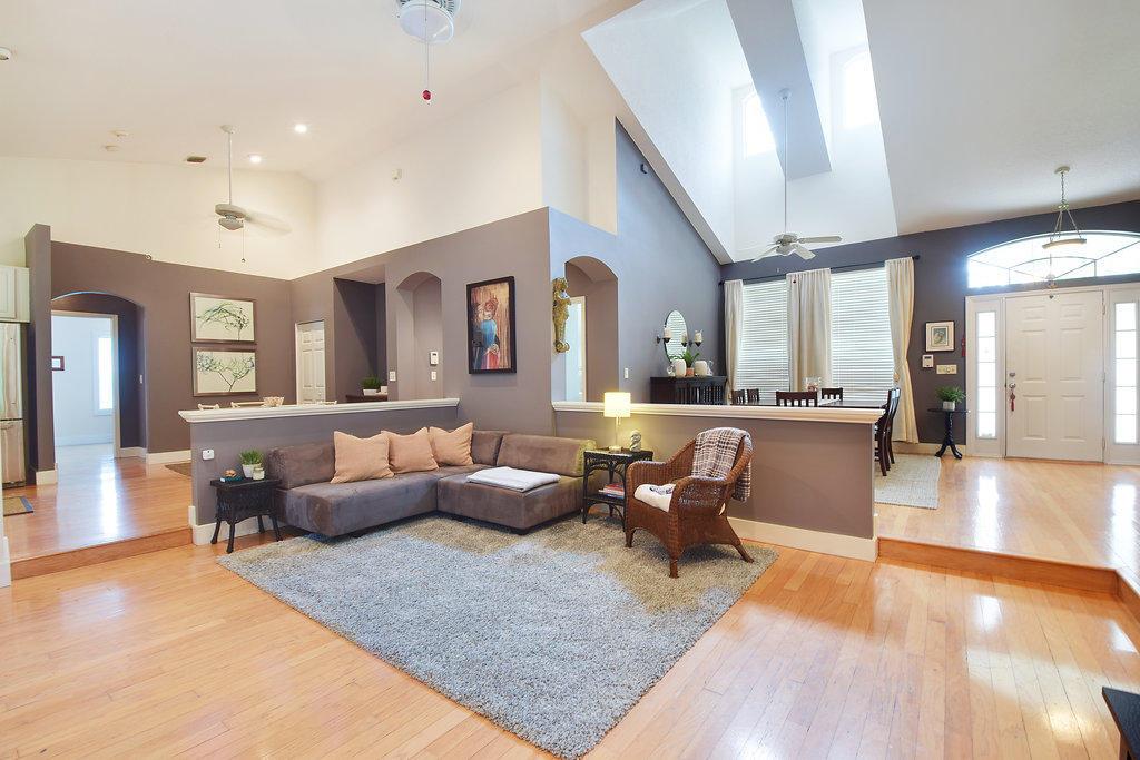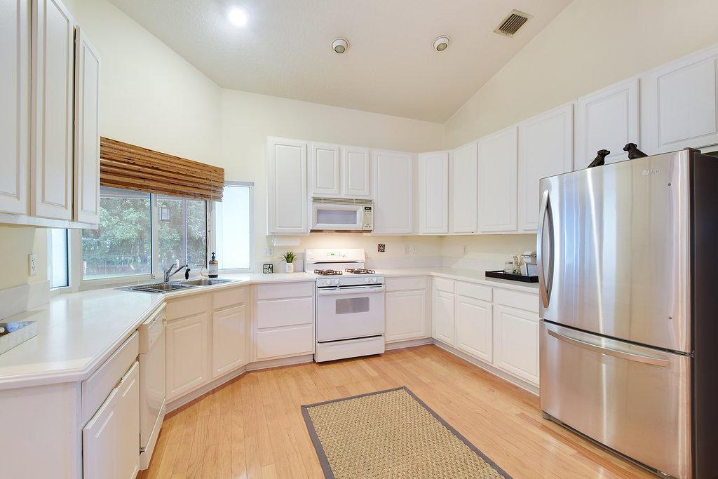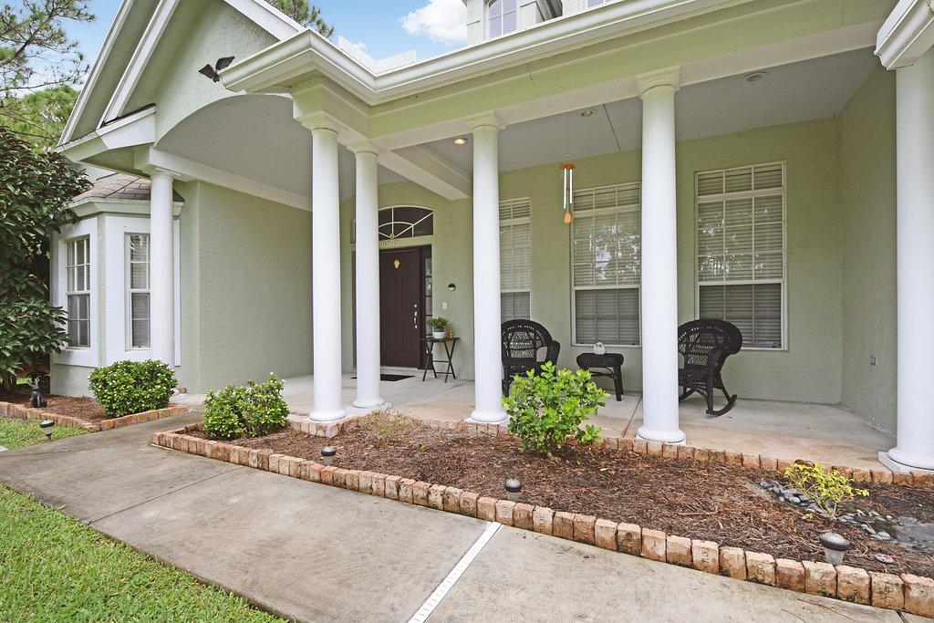 Secluded home on a perfectly manicured 1.3 acre lot. Fully fenced property with separation between the front & back yards. 4 bedroom + a den with desirable open floor plan. High vaulted ceilings and sky lights give a bright and spacious ambiance. Genuine oak wood floors throughout. Enclosed patio with slate tiles offer expansive views of your private green escape. Newer A/C, well for irrigation, and fully equipped with Kinetico water purification and softener system. Excellent home for family & entertainment!