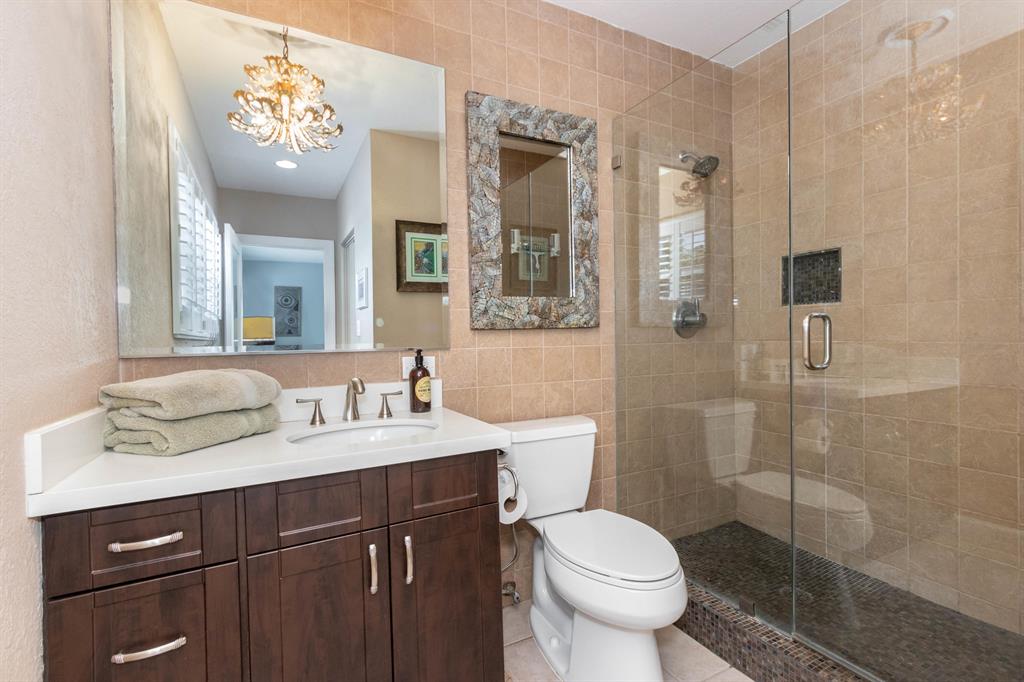 Stunning 3 bedroom 3 bath home in Poinsettia Heights. Completely remodeled kitchen with stainless appliances, white cabinets, granite counter tops. All baths remodeled with granite and glass showers. The main house has wrap around porches and beautiful views of the tropical back yard and freeform pool/hot tub. Huge deck and shed as well. Street is well lit and has curb appeal. This is a must see.