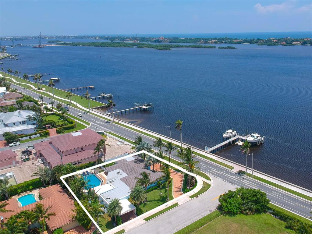 Like new light/bright one story waterfront split floor plan pool home overlooks the intracoastal and Palm Beach Estate homes in the highly desireable SOSO neighborhood. Dock with two boat slips, air conditioned 2 car garage with viking wine cooler, sub zero fridge, traulsen fridge and marble floors! New wolf double ovens, 6 burner gas range with bbq, granite counter tops, custom cabinetry, and sub zero fridge complete this designer grade kitchen. The master is complete with his and her walk in closets, sitting room, and beautiful spa like bath. Each bedroom has en suite baths and walk in closets. Finally, a brand new custom pool with spa! Enjoy Flagler Drive, minutes to the beach, Palm Beach, City Place, Fine dining, downtown and the PBI airport. Great value! Priced to sell.
