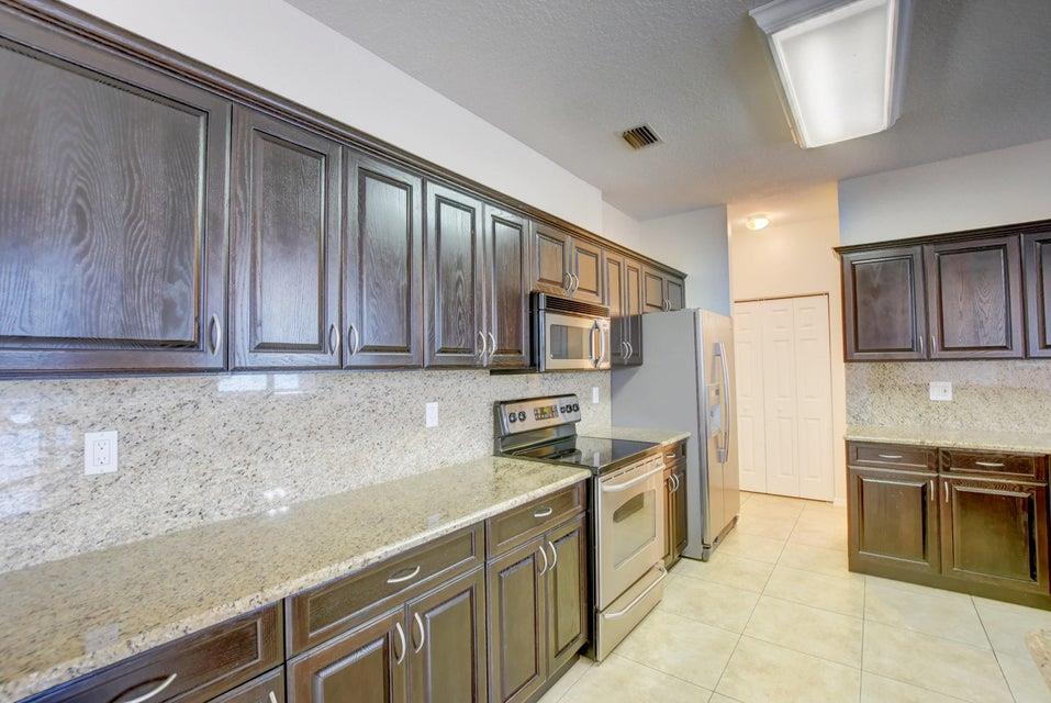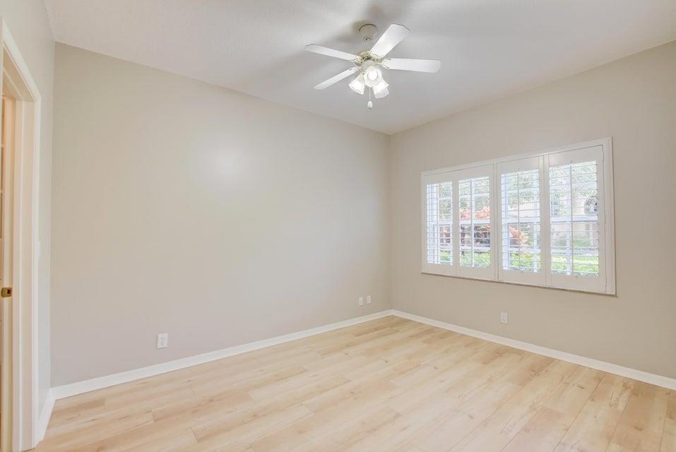 Beautifully renovated 4 bedroom, 2-1/2 bathrooms one-story pool home w breathtaking lake views. House has been freshly painted inside and new wood laminate has been installed in the bedrooms. Kitchen features dark custom cabinets, granite countertops, stainless steel appliances & breakfast bar. Master bathroom has slate tiles and jacuzzi tub, double sinks and separate shower. Master bedroom has custom closet treatments. Home has hurricane shutters. Community amenities include basic cable w HBO & Internet, clubhouse, heated pool, hot tub, sauna & steam room, gym offering free fitness classes, tennis programs at the tennis center, basketball, racquetball, soccer field, and racquetball courts. Residents can enjoy Happy Hour every other Friday at the Gazebo (BYOB). Close to all. A+ Schools.