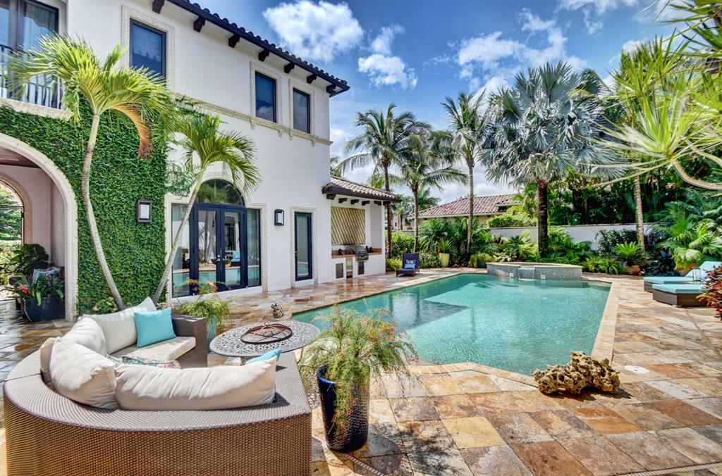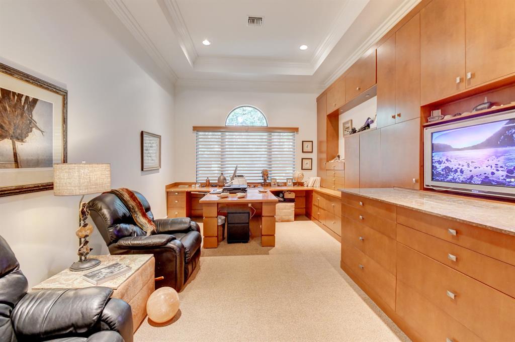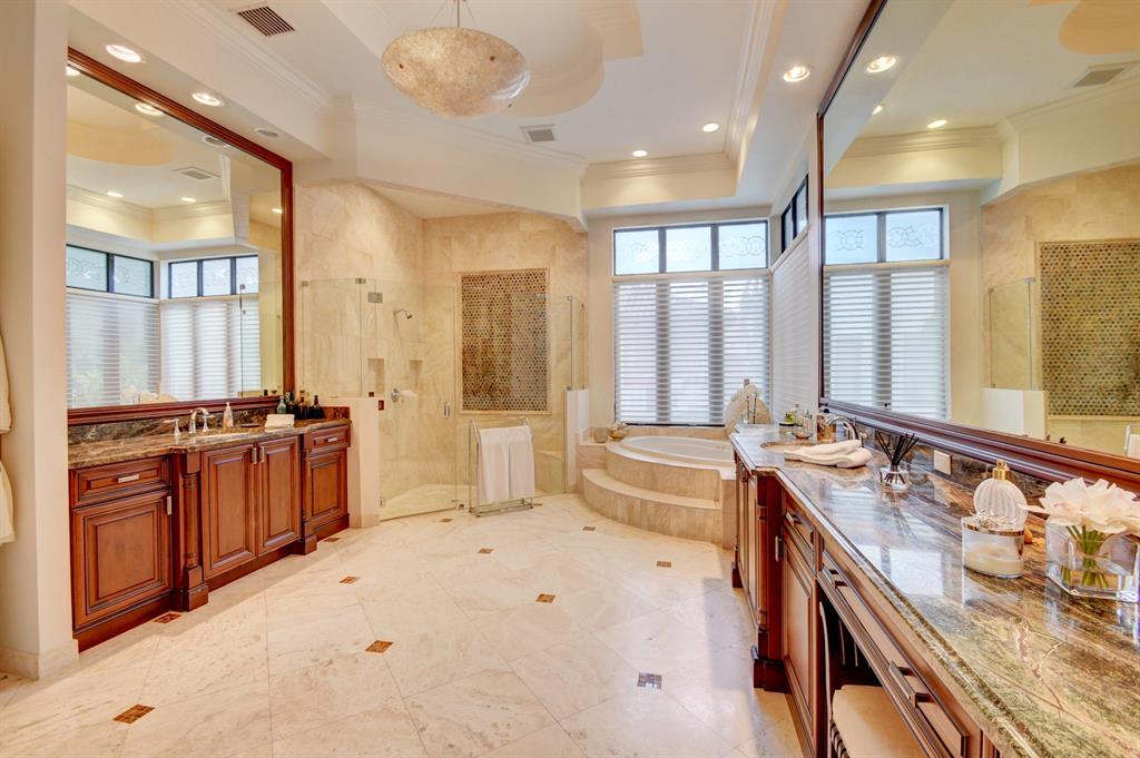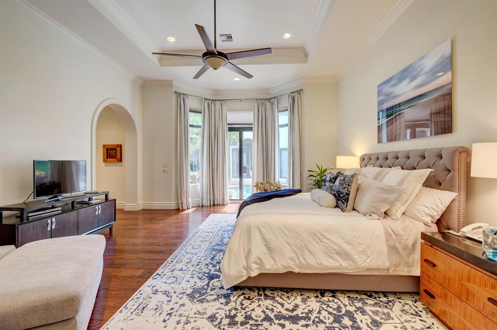 Private, pristine, and designer perfection. Located in the highly sought after Grand Estates, designed by award winning Architect and custom built by Charles-Watt. This 5 bedroom and 5 1/2 bath home is a tropical oasis with indoor/outdoor living prioritized. Lusciously landscaped, pool-centric, full impact windows and doors, transitional appointments including onyx, quartz, fossil, and granite countertops,, marble, porcelain and hardwood flooring, architectural moldings, and filigreed gates. The master suite is located in a private wing with large office nearby, with 3 en-nsuite bedrooms and loft up, and the separte guesthouse w/bedroom, bath and kitchen efficiency. Also featuring a heated saltwater pool and spa, summer kitchen, full house generator, 3 car garage, and a basketball court.