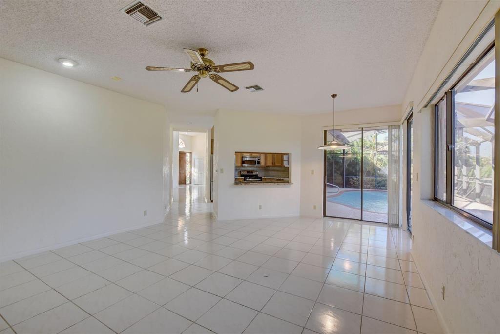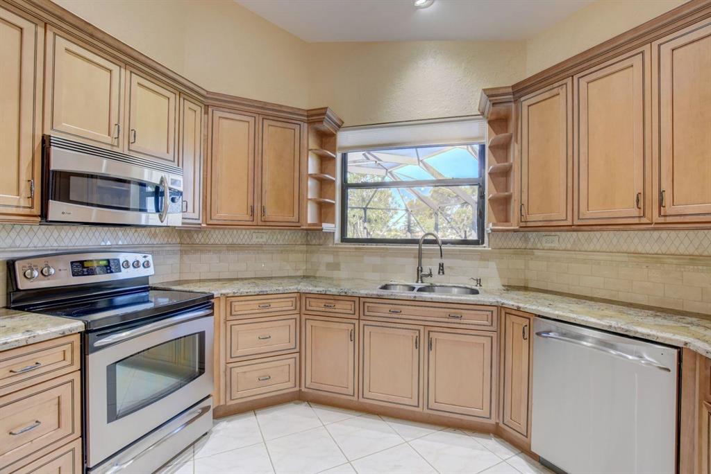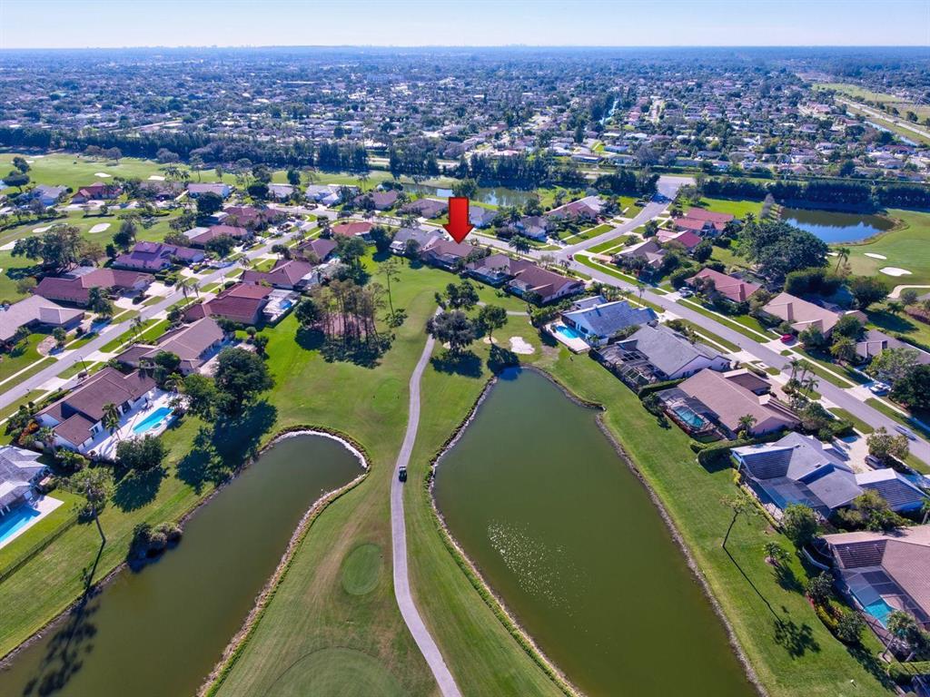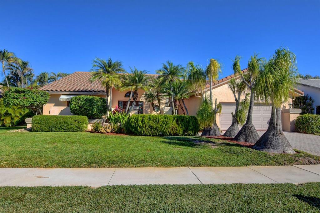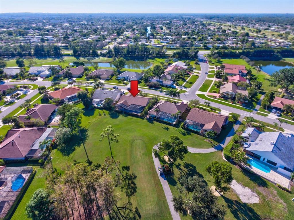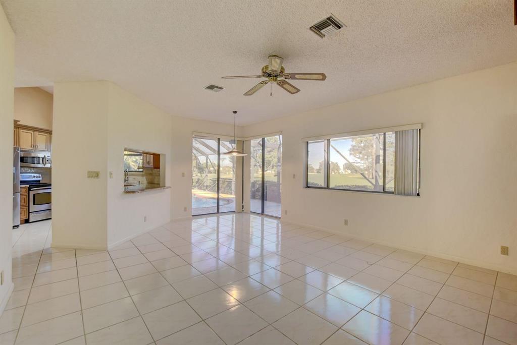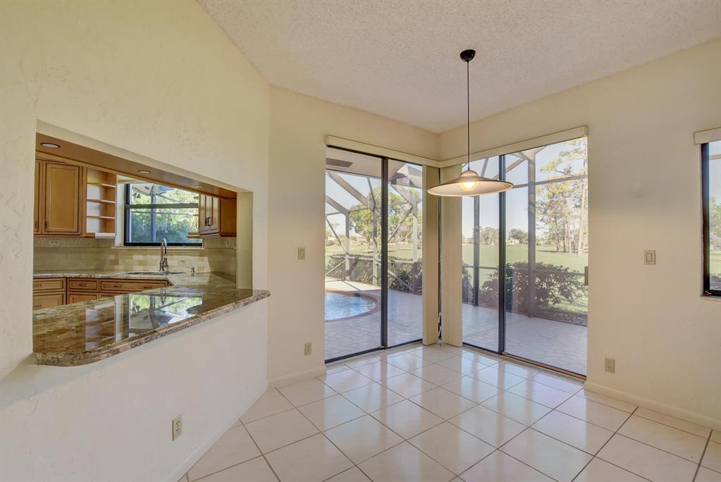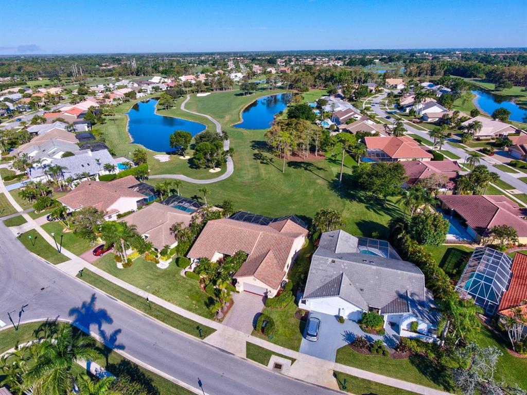 immaculate 3/2.5 bath residence!! serene golf and water views from all main areas of the home.Formal living room + large family room The home's features include a great room with raised ceilings, high windows and sliding glass doors. A newly updated spacious wood kitchen with granite countertops and stainless appliances flows into the large family room.Sliders open the family room to the pool area and terrace. The split-bedroom plan offers privacy to the large master bedroom suite which has high ceilings, his & her walk-in closets and connecting master bath with separate area for toilet and bidet. The screened-in pool has a bonus patio area. Tile floors run throughout the living areas with one wood floor bedroom. Oversized 2 car garage has space for your golf cart as well! plus an office