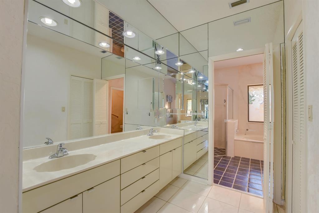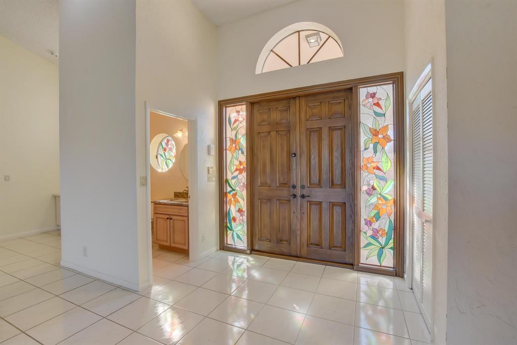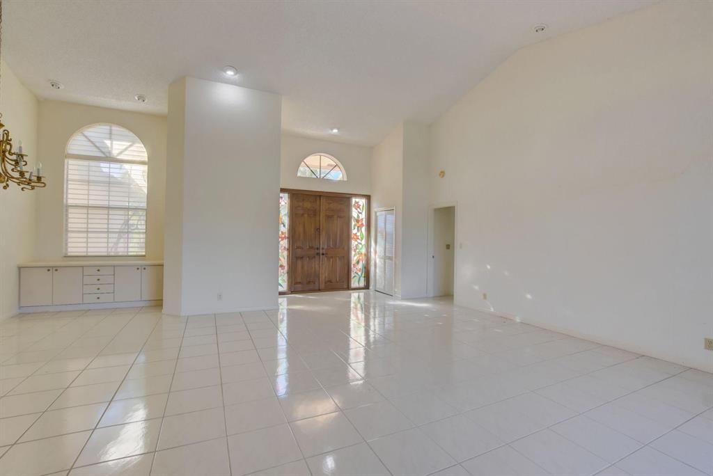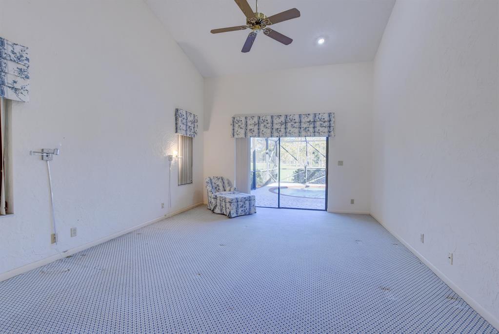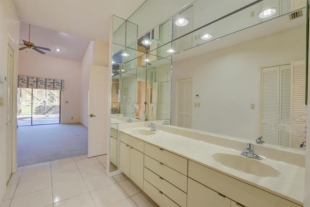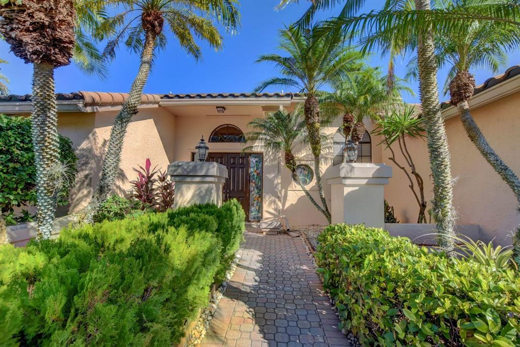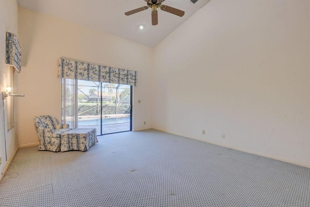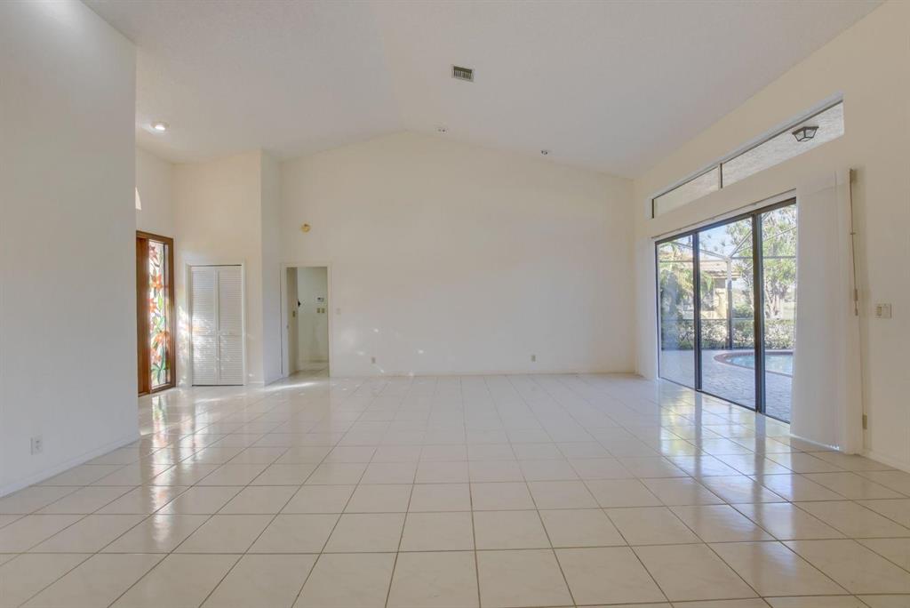 immaculate 3/2.5 bath residence!! serene golf and water views from all main areas of the home.Formal living room + large family room The home's features include a great room with raised ceilings, high windows and sliding glass doors. A newly updated spacious wood kitchen with granite countertops and stainless appliances flows into the large family room.Sliders open the family room to the pool area and terrace. The split-bedroom plan offers privacy to the large master bedroom suite which has high ceilings, his & her walk-in closets and connecting master bath with separate area for toilet and bidet. The screened-in pool has a bonus patio area. Tile floors run throughout the living areas with one wood floor bedroom. Oversized 2 car garage has space for your golf cart as well! plus an office