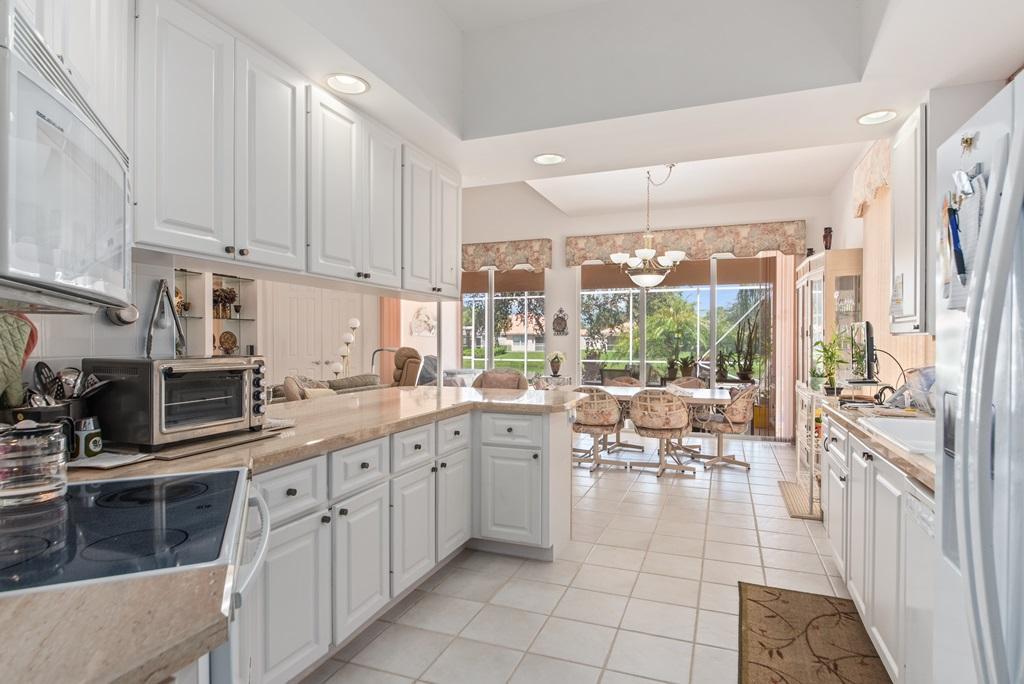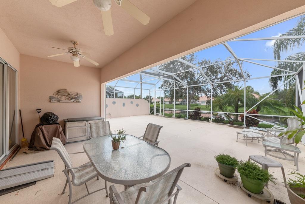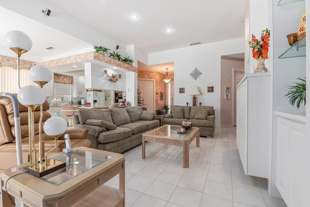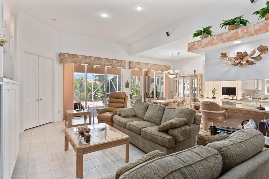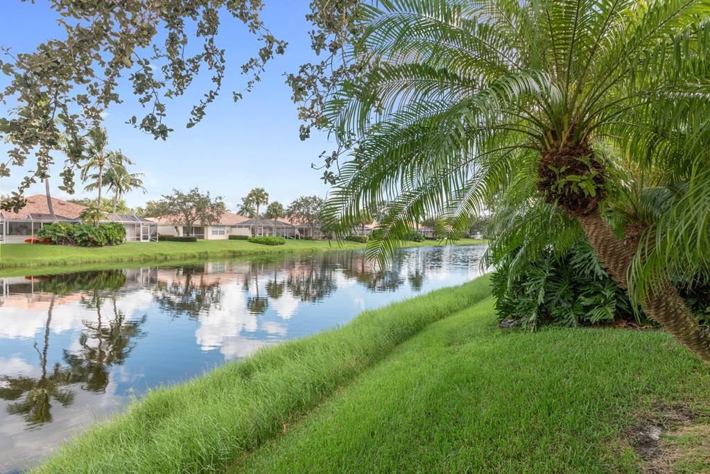 A Lush Entry, with Tropical Plantings & Flowering Shrubs, is Just One Reason that makes This Oakmont a Terrific Opportunity! It's in Riverwalk, a 24 Hour Manned Gated Community located in the Heart of Palm Beach County that is 15-20 minutes to what makes it a Terrific Place to Live to including the Ocean, West Palm Beach & the Airport! There is a Covered Screened Entry that leads to the Tile Foyer that opens to the Tile Great Room with a Full Wall Entertainment Center that has been Upgraded for a Flat Screen TV & The Tile Dining Area with Sliders to a Private Patio! There is also 18 Ft. of Sliding Glass Doors that lead to a 22 Ft. Lanai that opens on a 30 Ft. x 33 Ft. Lakeside Screened Terrace with Great Water Views! The Tile Kitchen, the Hub for Everyday Living or Casual Entertaining