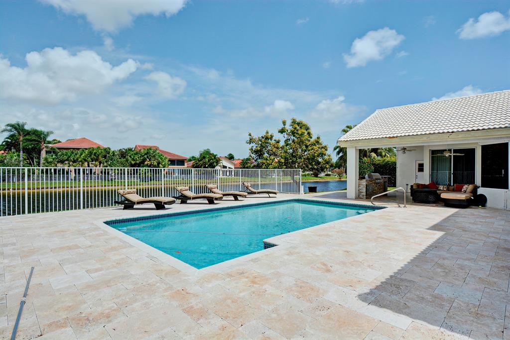 PRICED TO SELL-Recently Renovated Waterfront Home with marble floors, granite, kitchen and baths, wood floors in all the bedrooms, new baths and a spectacular resort styled pool/patio with gorgeous marble decking, Stone Island Bar with LED lighting, watch the sun set over the lake and palms in this tropical paradise. Lychee, star fruit and avocado trees that produce hundreds of very good fruit. No hurricane protection on windows and doors. Roof is original 24yrs.