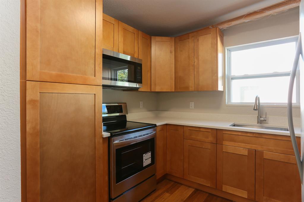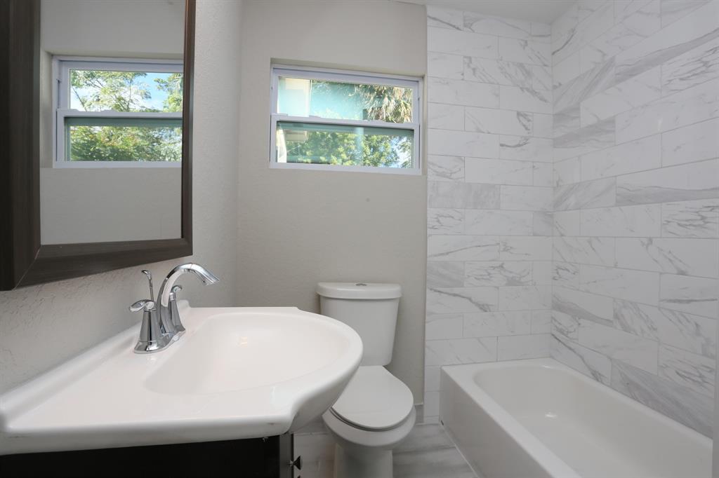 Welcome home to the trendy, new and up and coming neighborhood in West Palm Beach. This mid-century charmer has everything from great curb appeal and BRAND NEW EVERYTHING! The BRAND NEW roof is being installed in the coming two weeks. Brand new bamboo flooring throughout the main living area and bedrooms. Nestled in the corner is a brand new wood kitchen with quartz counter tops and backsplash. Brand new stainless steel appliances along with brand new water heater, A/C and duct work have been installed. Entire house has been outfitted with impact glass. Newly painted interior and exterior. Front porch with a fenced yard and two car driveway. The yard has a shed for storage and brand new sod in front and back have been installed as well. Plenty of room for the kids to play.