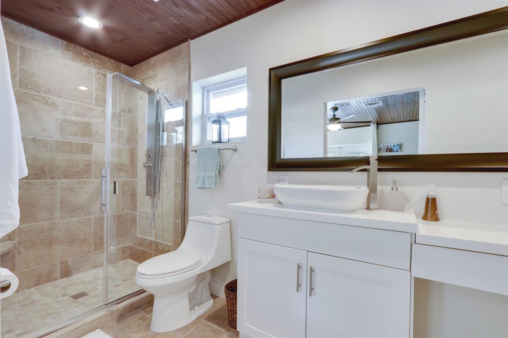 Charming COMPLETELY redone 3 bedroom 2 1/2 bath pool home located in East Boca Raton. This home is situated on an oversized lot in the sought after Tunison Palms/Old Floresta area. Huge private paver driveway leads up to a front porch with tv and sitting area. As you enter through the double glass doors, you are greeted with an amazing key west style, warm beach feel home that would be hard to be duplicated. There are beautiful wood coffered ceilings throughout the main living areas & tung and groove in all the bedrooms. The kitchen has brand new marble counter tops a farm house sink & all appliances less than a year old . All bathrooms have been recently remodeled . The 4 ton AC is less than 2 years old and there is also a new tankless water heater. The backyard is great for entertaining.