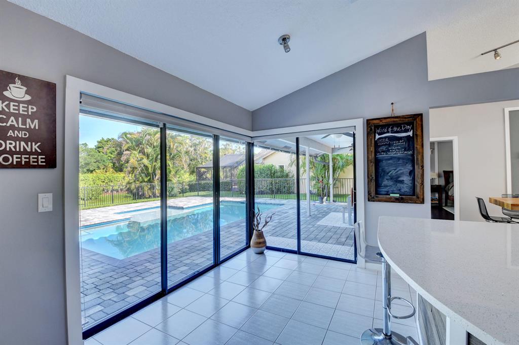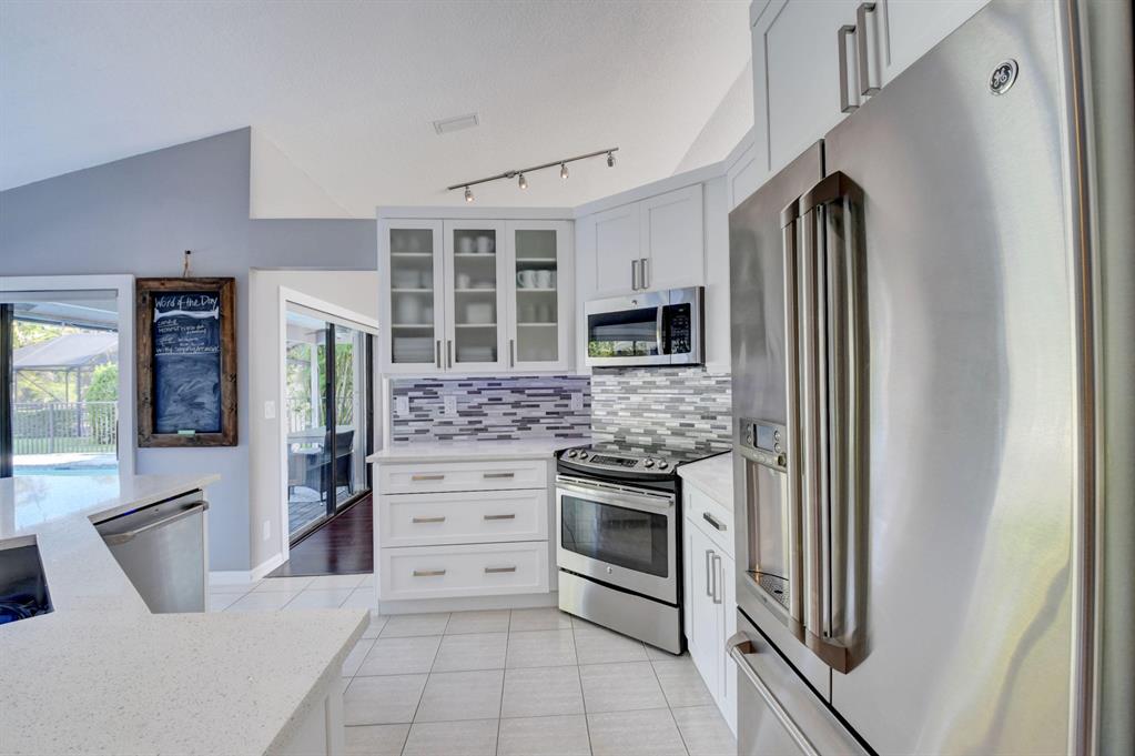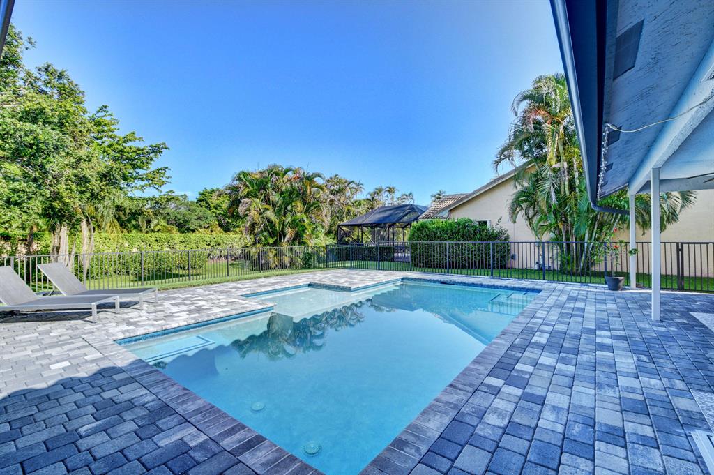Beautiful and fully renovated home on a large private lot in West Boca gated community(non equtiy). New roof and pool, new kitchen and baths. This home has quartz counter tops, white shaker cabinets with new GE Stainless appliances. New washer and dryer, LED lights, pool with beach step and multi colored LED. Custom moldings and wainscoting. AC/Water heater both replaced in 2013. A must see!!