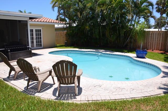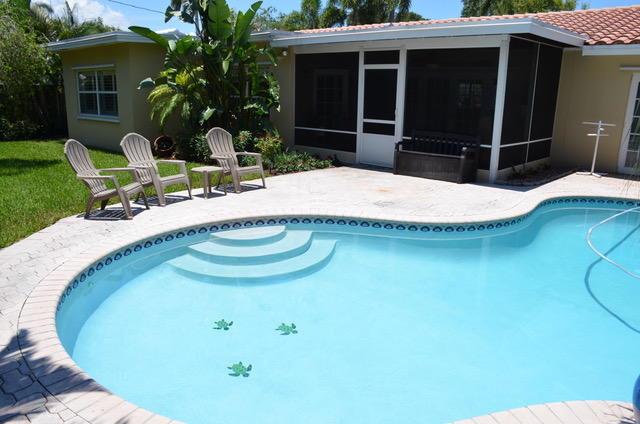 Very open and spacious 3 bedroom 3 bath pool home. Features two master bedrooms, split floor plan, plantation shutters, mexican tile and pergo flooring, lovely breakfast nook surrounded by windows. French doors leading out to the screened in patio. Beautiful pool and private fenced in backyard. Generator that runs the entire house. This home is perfect for families, pets and entertaining. Excellent condition, immaculately maintained and located on one of the best streets in Boca Square.