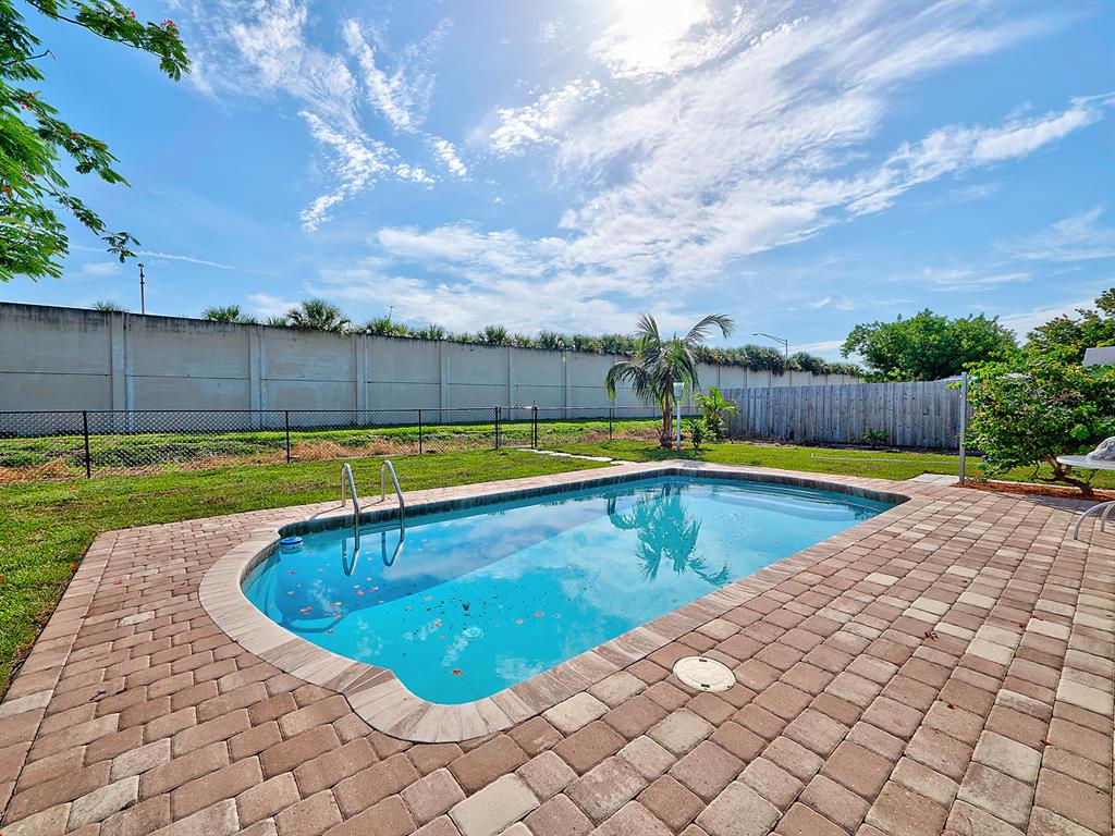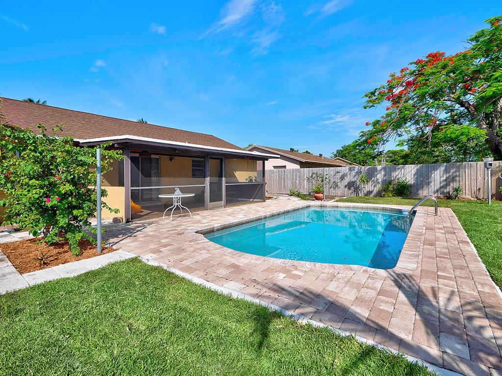 Gorgeous 2 bedroom, 2 bathroom CBS home with a beautiful pool all situated on a spacious lot with an inviting circular driveway. The kitchen was updated in 2007 and has lots of storage and counter space. The sunken living room is perfect for entertaining. The master and guest bedrooms are nicely sized. Relax after work on your big screened patio or jump into the soothing pool to cool off. The roof was replaced in 2008. The AC was replaced in 2013. The pool and fence were constructed in 2015. The property is close to the Palm Beach Outlets, I-95, PBIA, schools, restaurants and all that the West Palm Beach area has to offer.