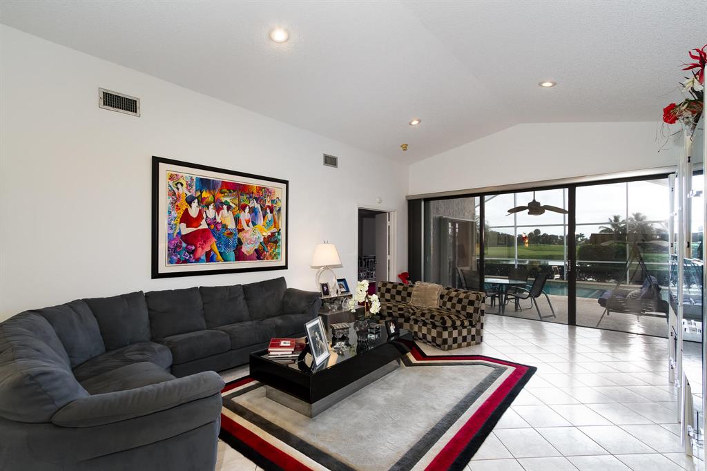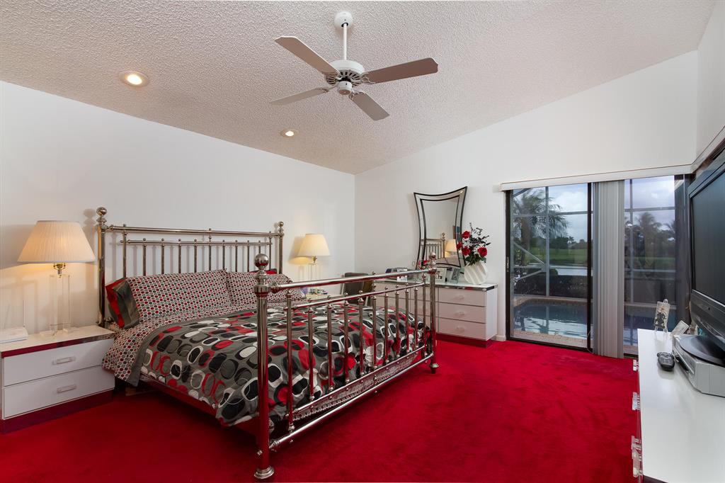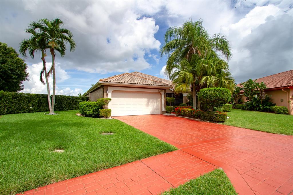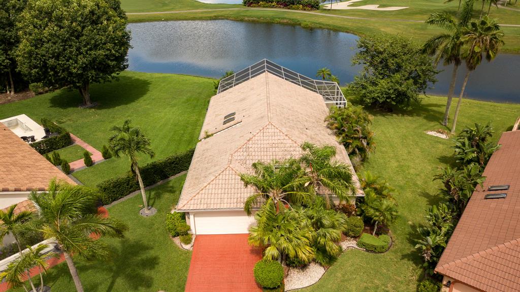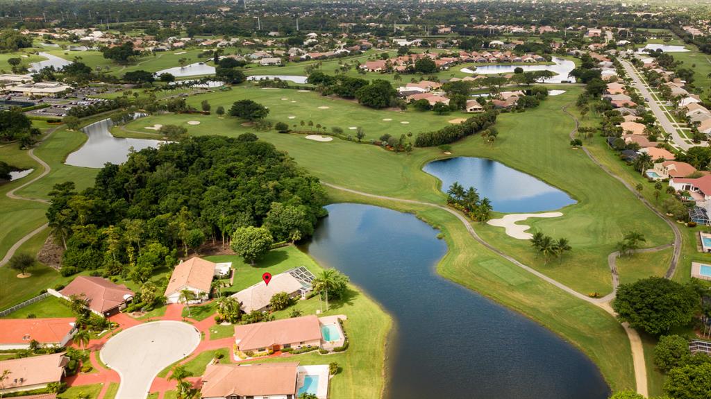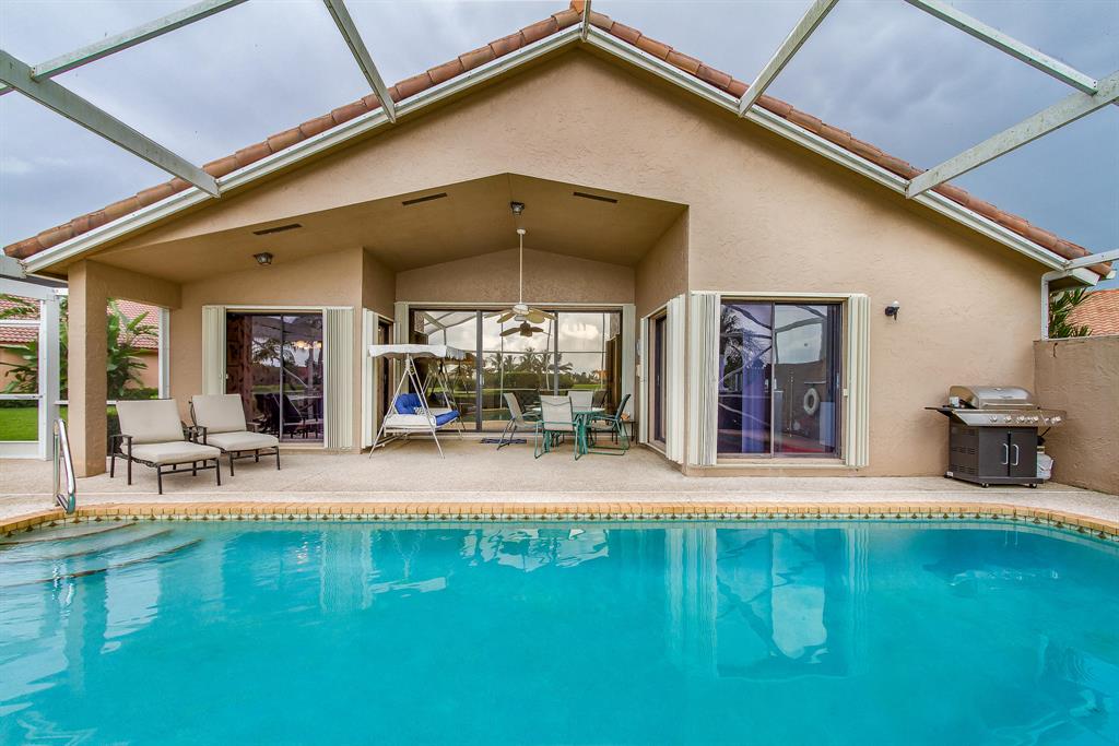 Fantastic lake view from this nearly quarter acre lot in the gated community of Boca Woods Country Club. 2 bedrooms plus den, one story pool home with the front door accessible from the front (versus the side like many of the other homes). Accordion shutters (2007), Roof (2004), AC (2013), screened pool enclosure (2007). Tiled living areas, split floor plan. Community offers 2 golf courses (renovated 2010) and PGA Professional Staff , 8 Har-Tru tennis courts with USPTA Certified Tennis Professional, state of the art fitness center with personal trainers and group classes, executive chef Tom Shields with refurbished clubhouse, heated pool, massage services and lots more! Pets ok - 2 pets, any weight limit. Dates on public remarks items came fr on-line report, pls verify with your inspector