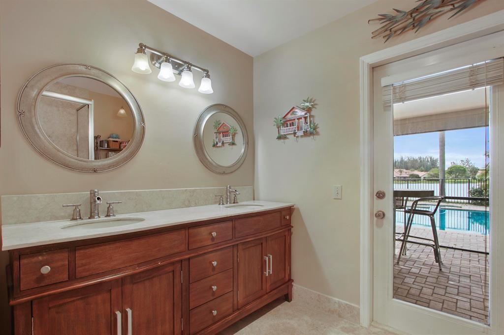 SPACIOUS POOL HOME with lots of room to entertain! Separate family & living rooms, working FIREPLACE, split floor plan, enclosed patio with wet bar, outdoor shower, beautiful pool and spa with lakefront water views, fruit bearing trees, all new paint inside and out, all tile floors, huge laundry room with soaking tub, fenced yard, great schools and an AMAZING VIEW!Master suite includes custom blinds, jacuzzi tub, water views and a big walk in closet! This backyard is one of a kind! A very private oasis that was custom made. Don't miss it.