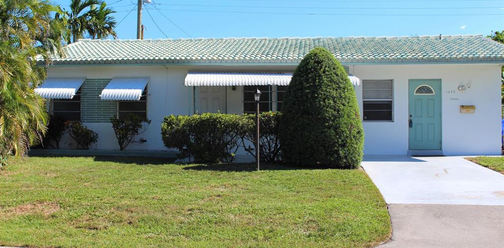 Desirable Cresthaven neighborhood. Prime location one block west of Federal Highway. 2 Bedrooms, 1 bath. Cash buyers only. The carport has been converted to an office with a separate entrance. Large fenced in back yard with a paver patio. S-tile roof. Air conditioner was replaced in 2013. Original electric. Screened-in porch with pull down shutters. No HOA. Close to restaurants, shopping and the beach.
