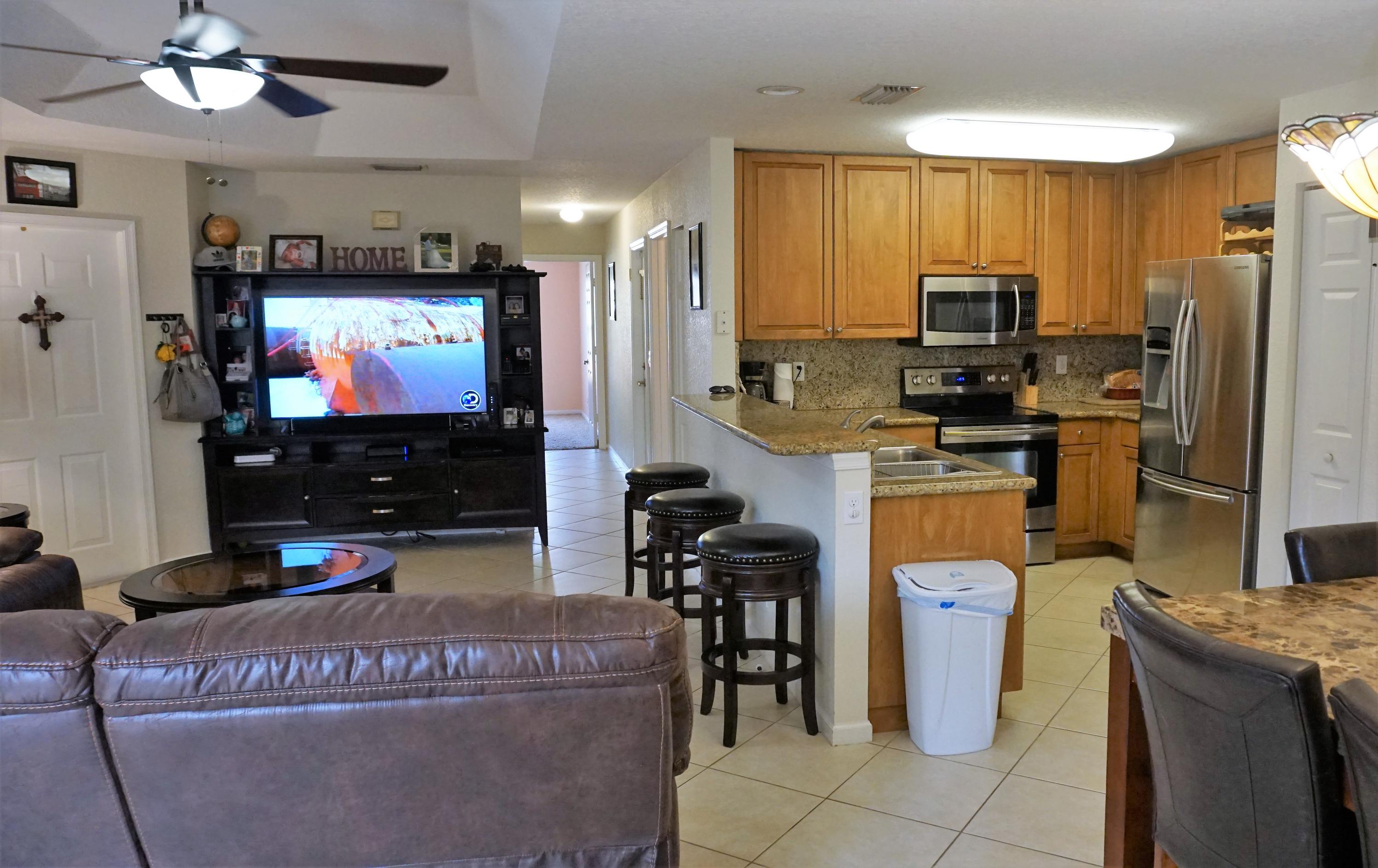 Welcome to your new home! This single story 3 bedroom 2 bath, features a lovely kitchen with 42'' raised panel wood cabinets, granite counter tops with full backsplash. Newer stainless steel appliances. Ceramic tile laid on the diagonal. Inside areas have recently been painted. Tray ceilings in family room and master. Sliding doors in master give plenty of natural light and lead to outside patio. Liberty Bay amenities include 24 hour manned and gated entrance, with a Zero/Beach entry pool, splash pad, playground, tennis courts and fitness center. Great location close to airport, shopping, entertainment, and beaches