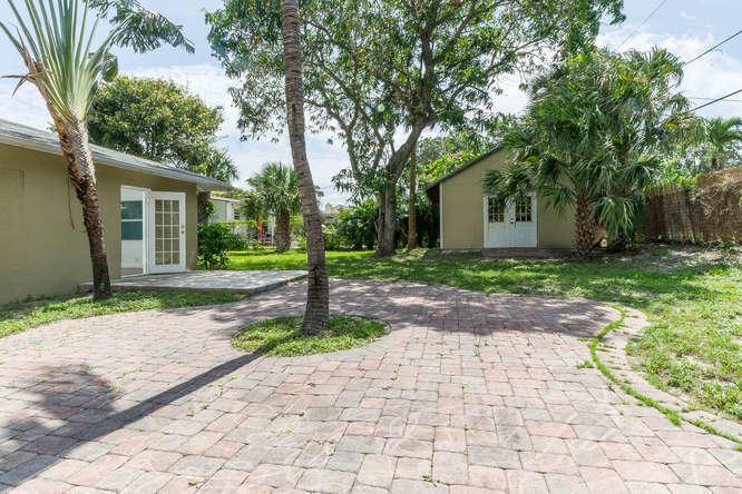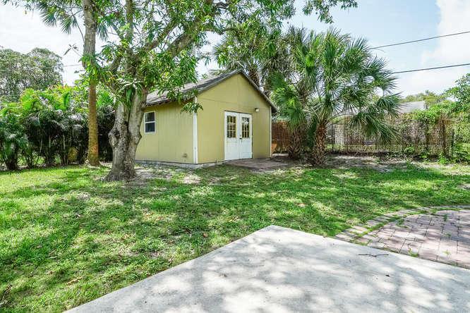 LOCATION, LOCATION, LOCATION Updated 3 Bed, 2 Bath CBS Home in Pineapple Park with stand alone Shed with electric. CBS construction on a Triple Lot with Central AC, Tankless Water Heater. Master bath with shower, Guest bath with tub, Fully Fenced backyard with extended Paved Patio and plenty of room for a pool. Minutes to PBIA, I-95, City Place, Intracoastal, Atlantic Ocean and Palm Beach Atlantic University. Updated kitchen and bathrooms. A large shed with electric in backyard is perfect for an office, workspace, etc. The house has seen many improvements since it was originally built in 1937. Underground electric, an extended brick paved patio, updated plumbing, electrical, and roof. Information and Room sizes are should be verified. ***Zoned for Palm Beach Public***