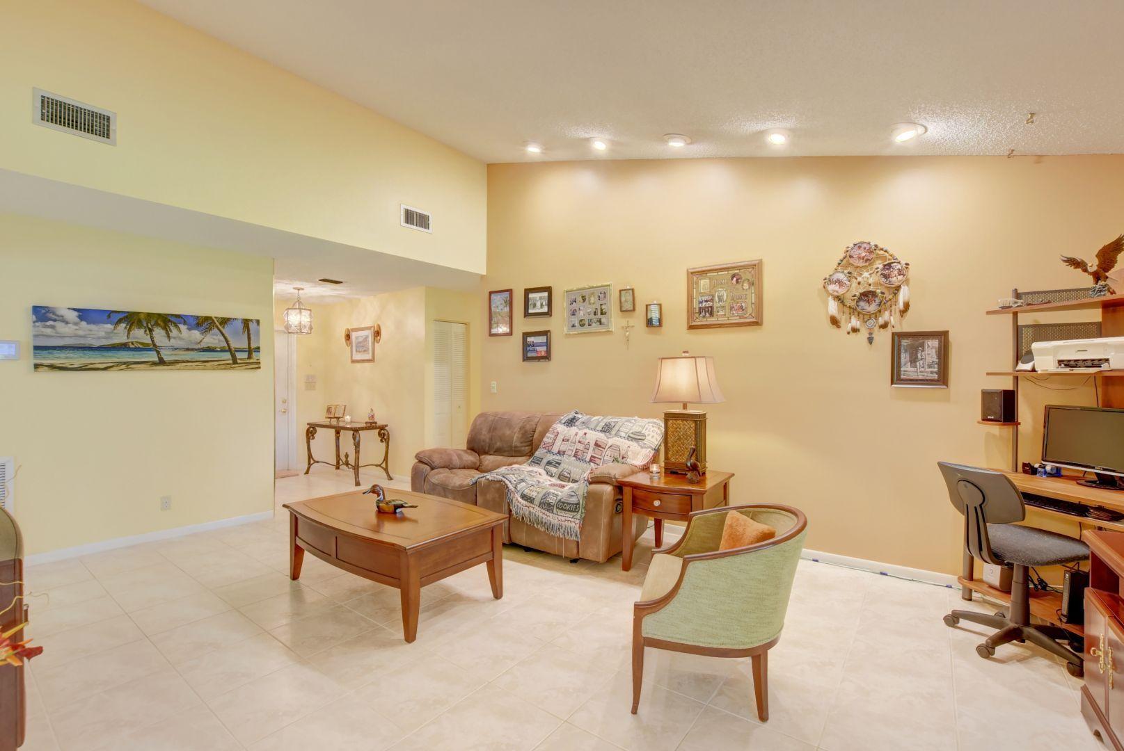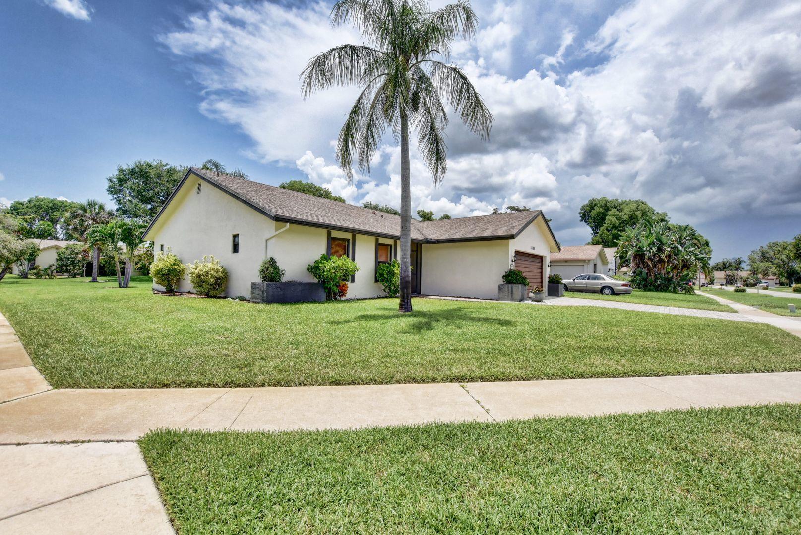 Price Just Reduced. Pets are allowed. Beautiful updated one story two bedroom two bath home in desirable Neighborhood on a corner lot. Close to shopping and restaurants. Kitchen has been updated with Stainless Steel appliances with wine cooler and Granite counter tops . Custom Blinds with Hurricane Windows and Walk in closets in each bedroom.Upgraded Paver Driveway, Clubhouse with pool and Tennis court. 55+ Community. Information is deemed to be reliable, but is not guaranteed. Television mounting brackets do not convey.